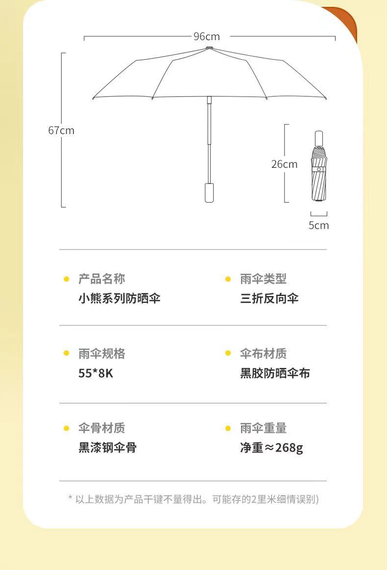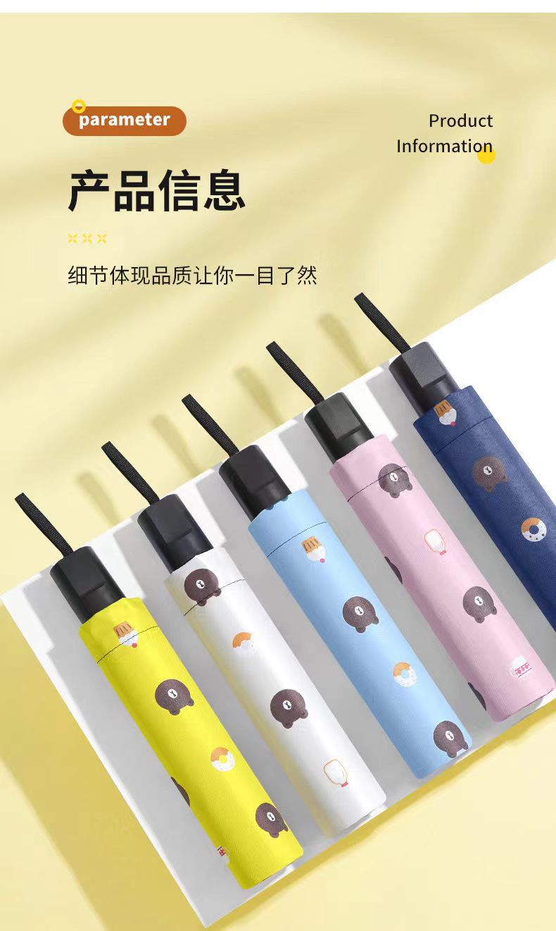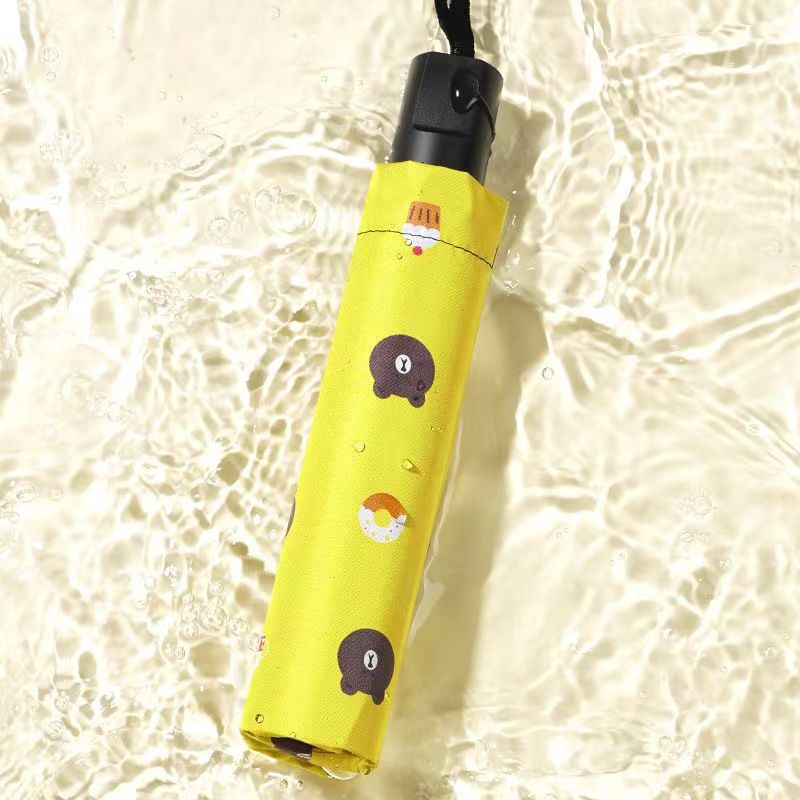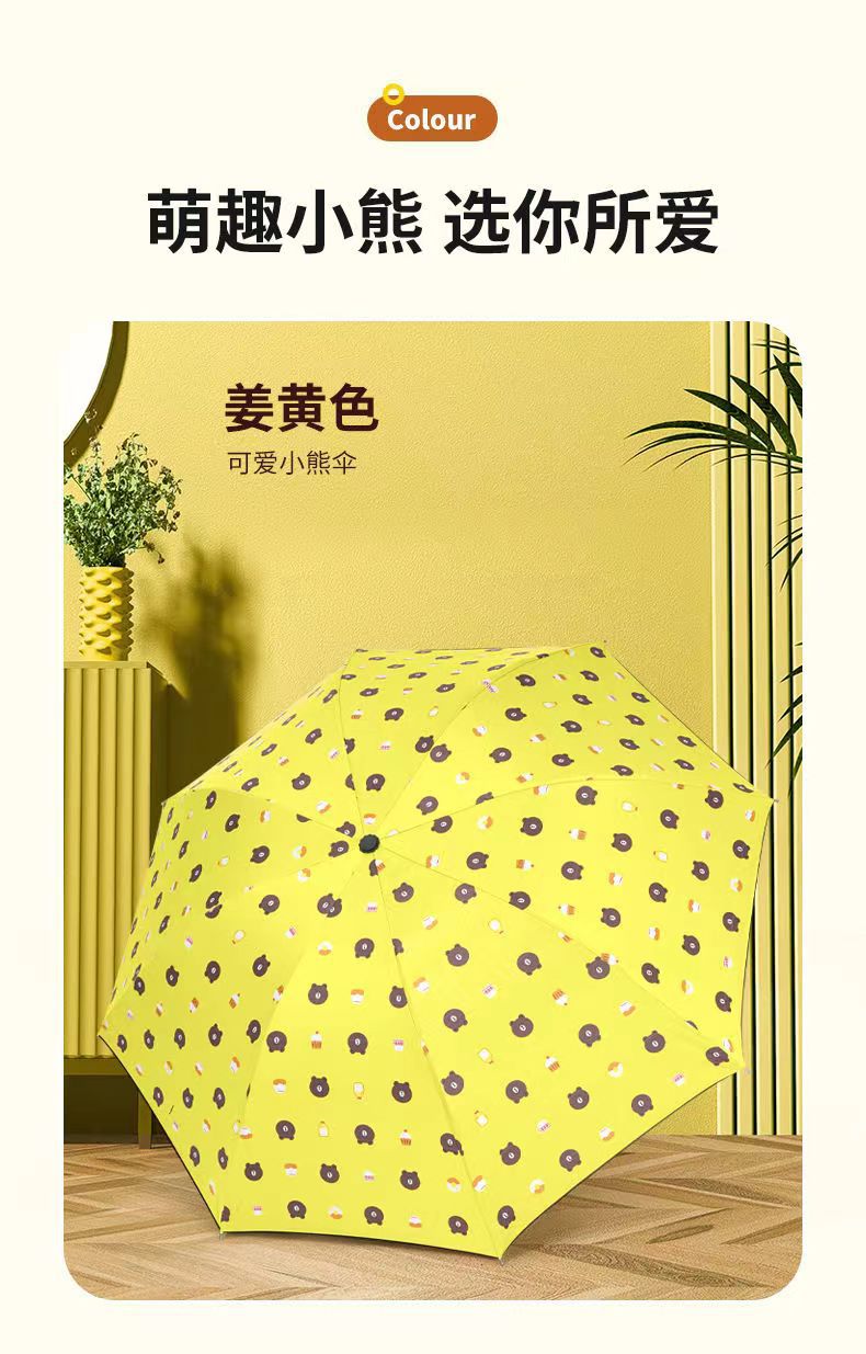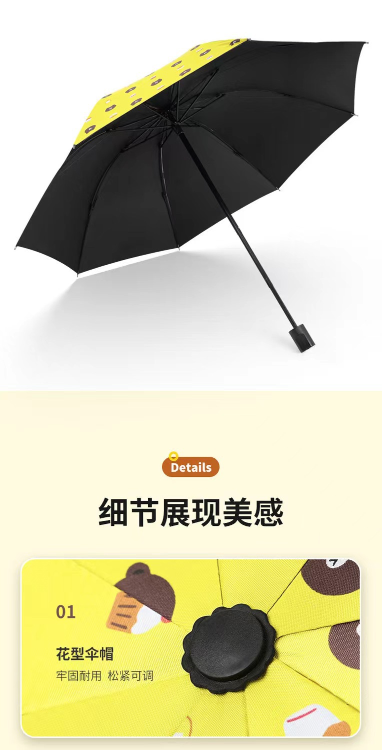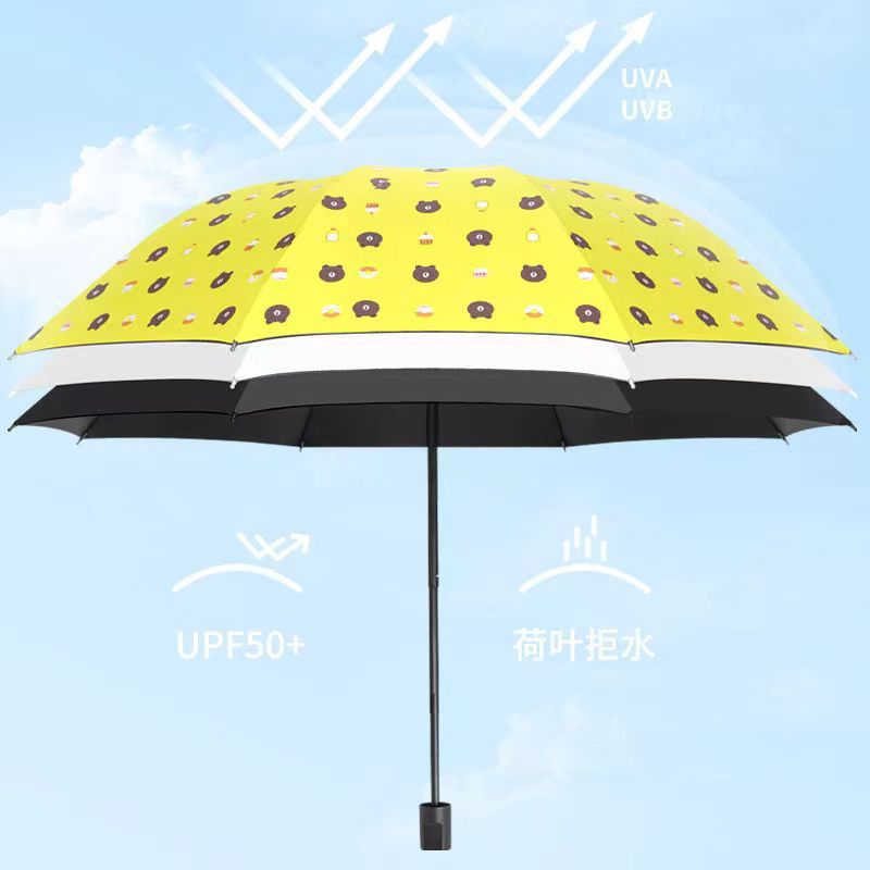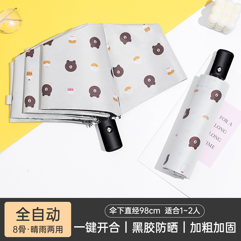 완전 자동 곰 우산 블랙 고무 차양 방지 우산 자외선 차단 햇빛과 비 이중 목적 접는 우산 3 배 태양 우산
