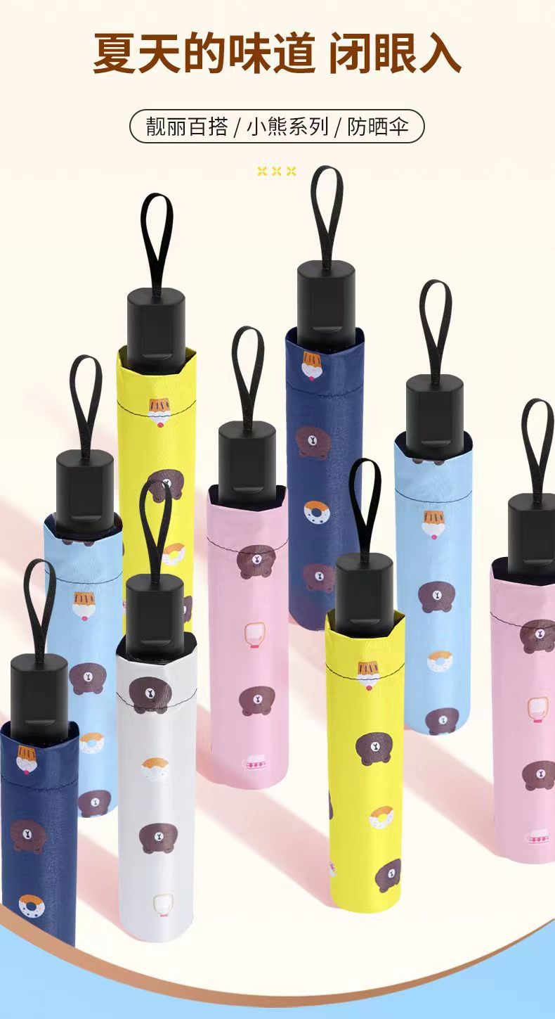 완전 자동 곰 우산 블랙 고무 차양 방지 우산 자외선 차단 햇빛과 비 이중 목적 접는 우산 3 배 태양 우산스토어 가기