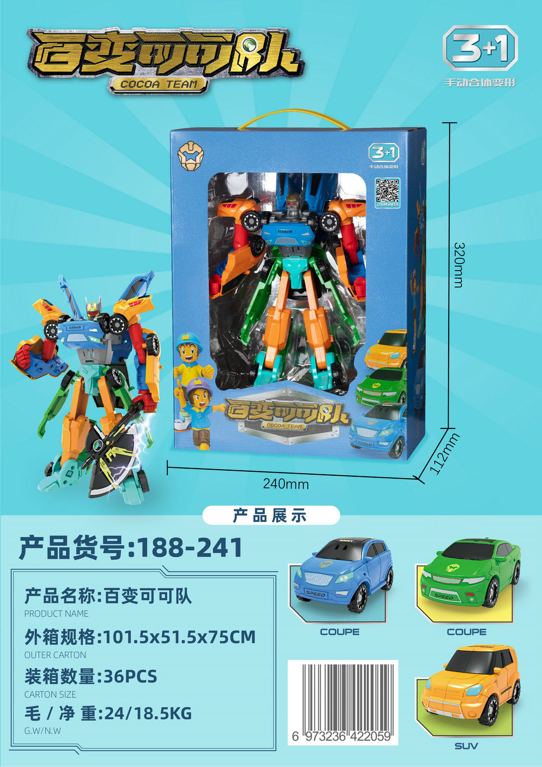 3-in-1 변형 자동차 로봇 188-241 시뮬레이션 놀이 집 퍼즐 소년 킹콩 어린이 장난감 도매스토어 가기