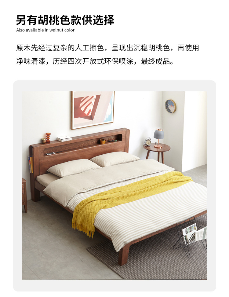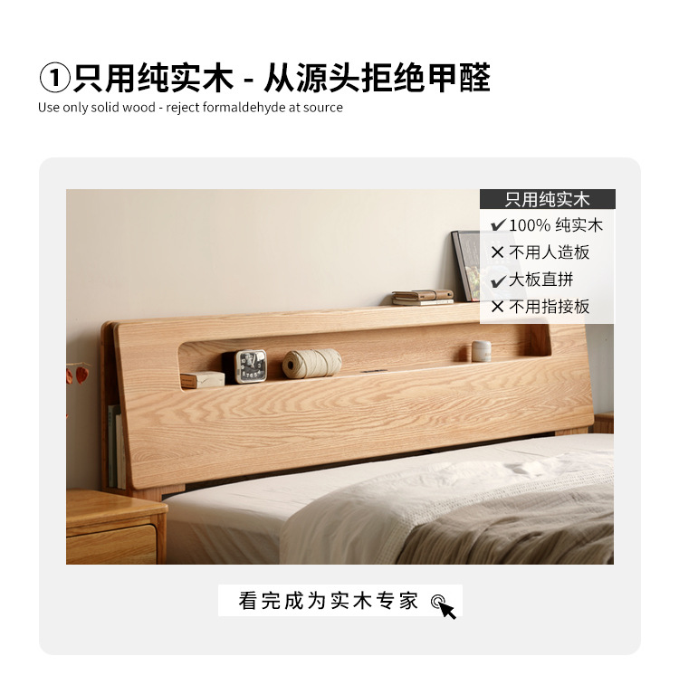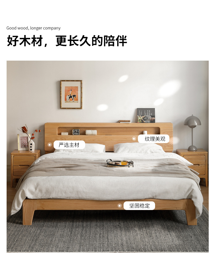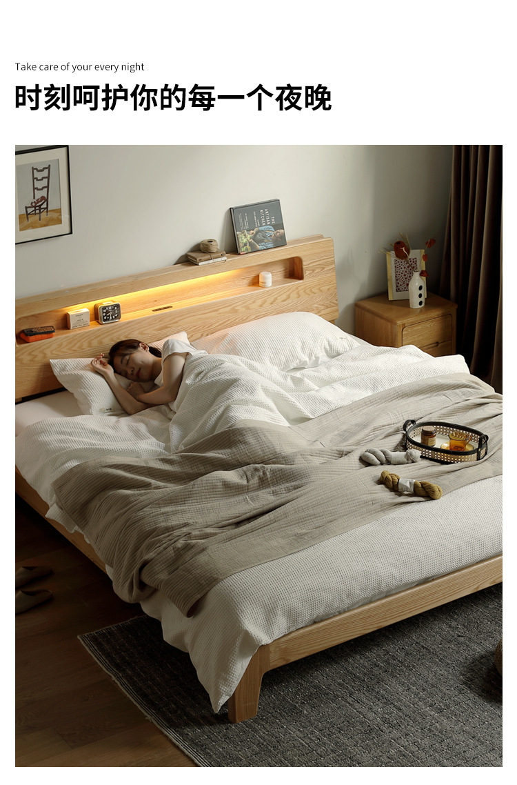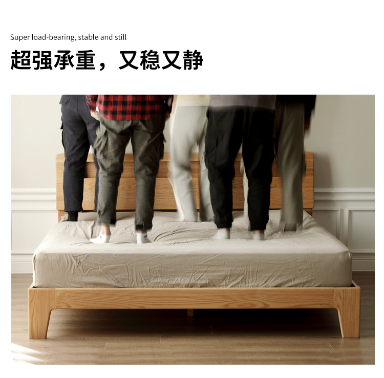 북유럽 단단한 나무 빛나는 침대 현대 간단한 침실 침대 프레임 1.5 m 싱글 침대 1.8 m 마스터 침실 오크 더블 침대스토어 가기