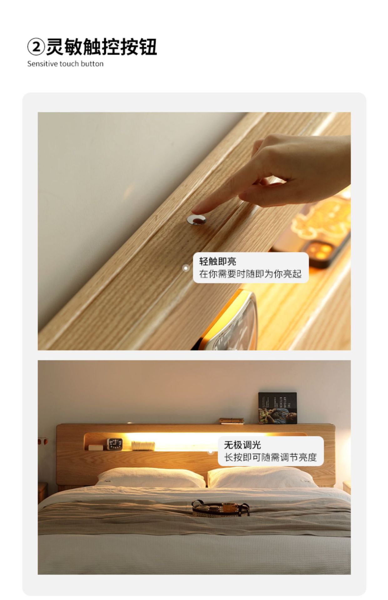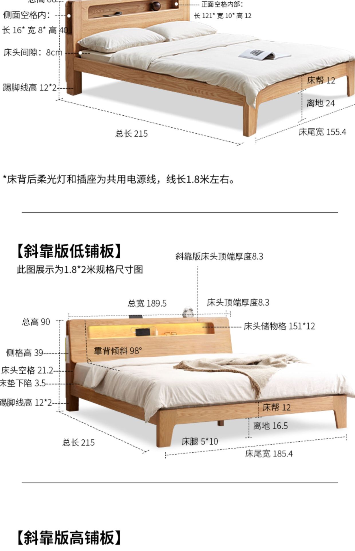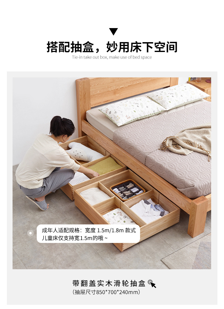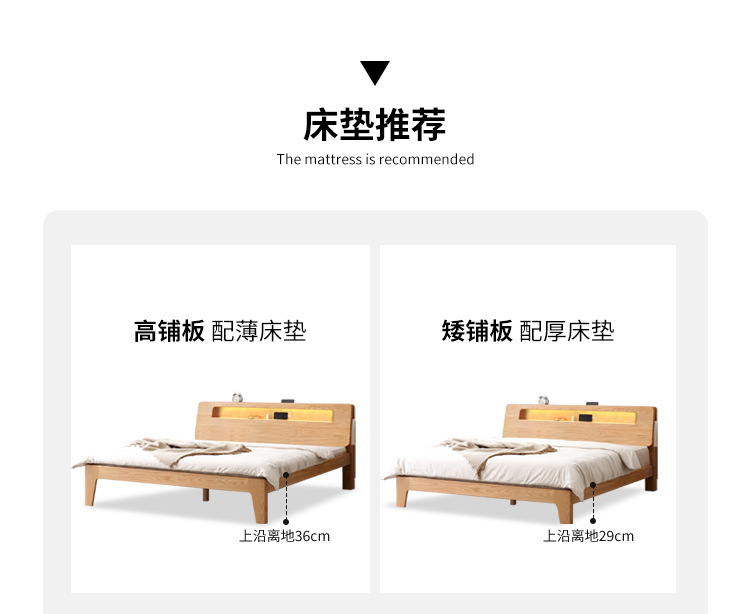 북유럽 단단한 나무 빛나는 침대 현대 간단한 침실 침대 프레임 1.5 m 싱글 침대 1.8 m 마스터 침실 오크 더블 침대스토어 가기
