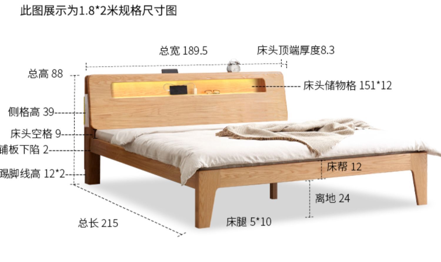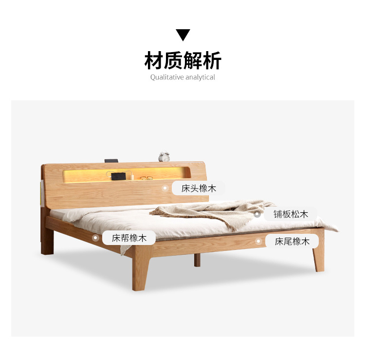 북유럽 단단한 나무 빛나는 침대 현대 간단한 침실 침대 프레임 1.5 m 싱글 침대 1.8 m 마스터 침실 오크 더블 침대
