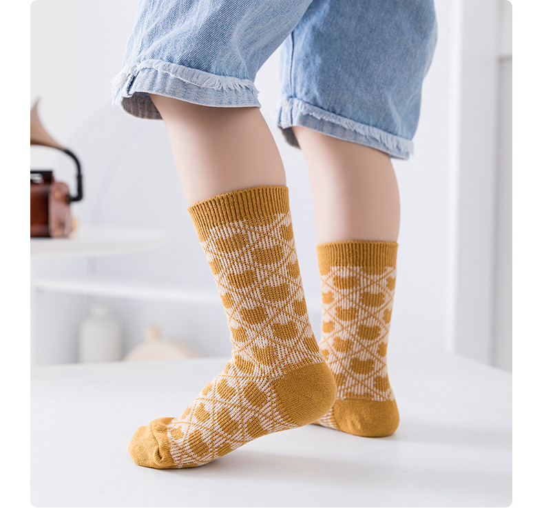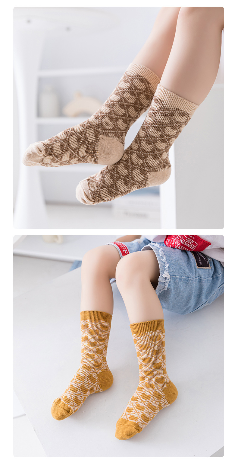 격자 무늬 곰 어린이 양말 봄과 가을 면 남아 얇은 남아 아기 중형 및 대형 어린이 긴 양말