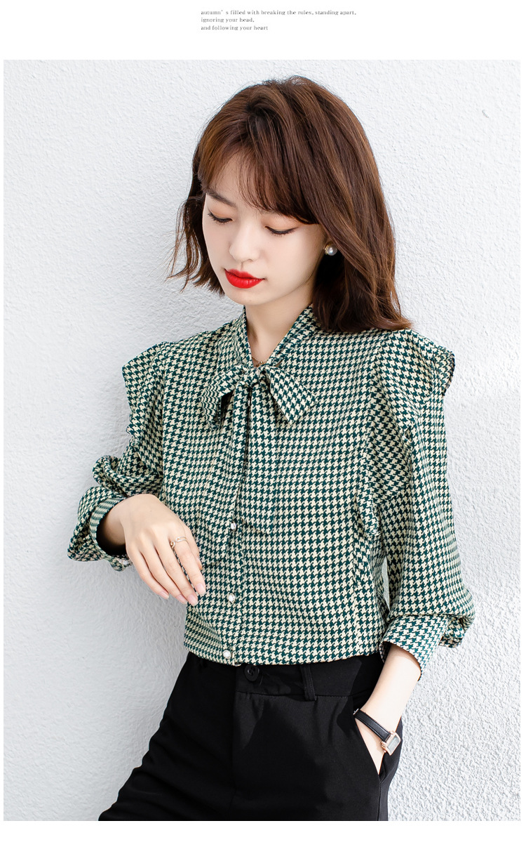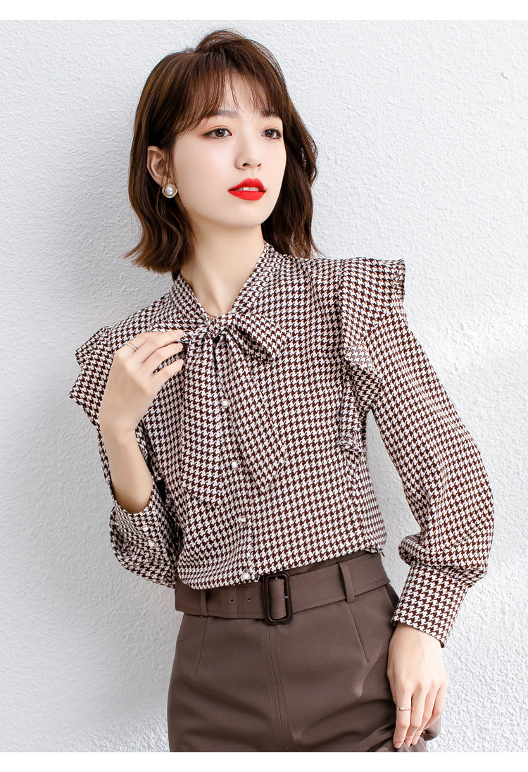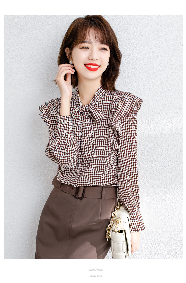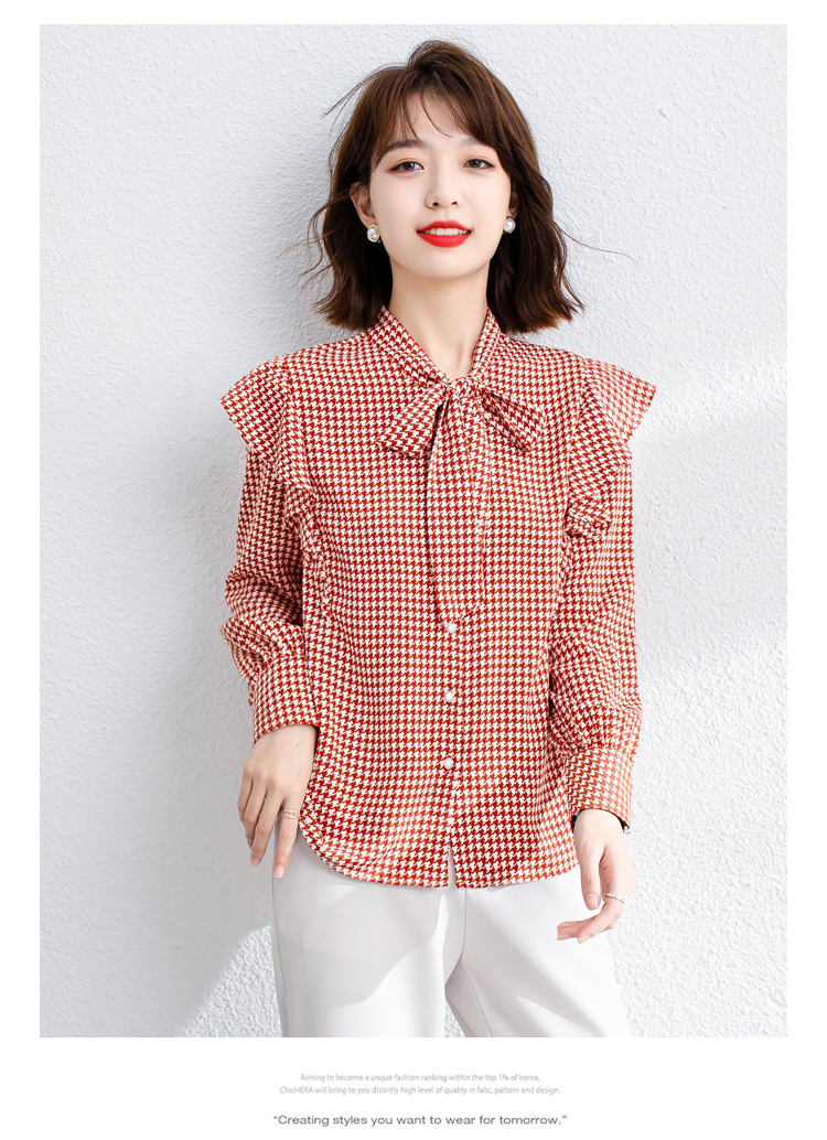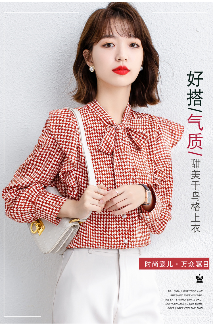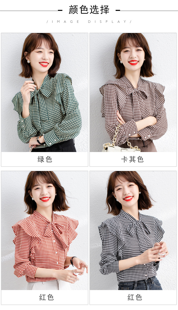 Houndstooth 셔츠 여성용 디자인 센스 틈새 봄 의류 2023 새로운 보우 셔츠 여성 패션 모든 매치 탑스토어 가기