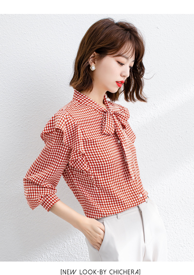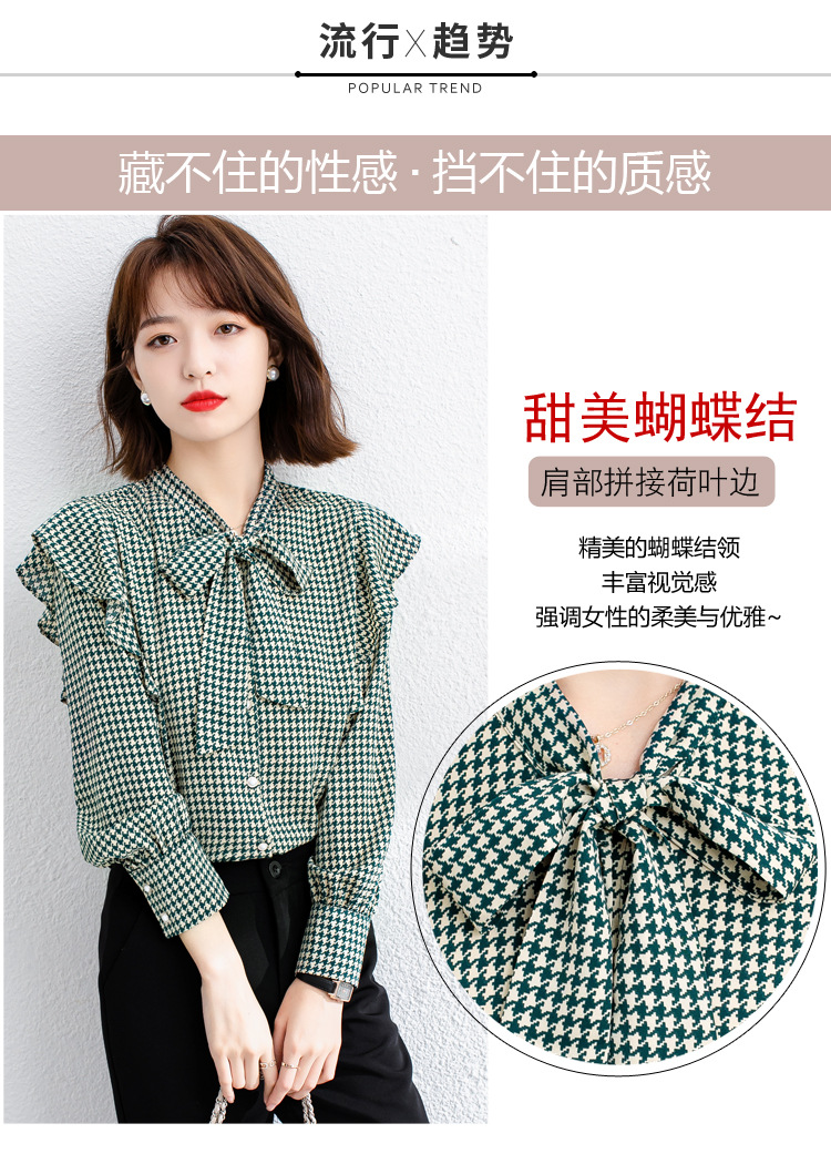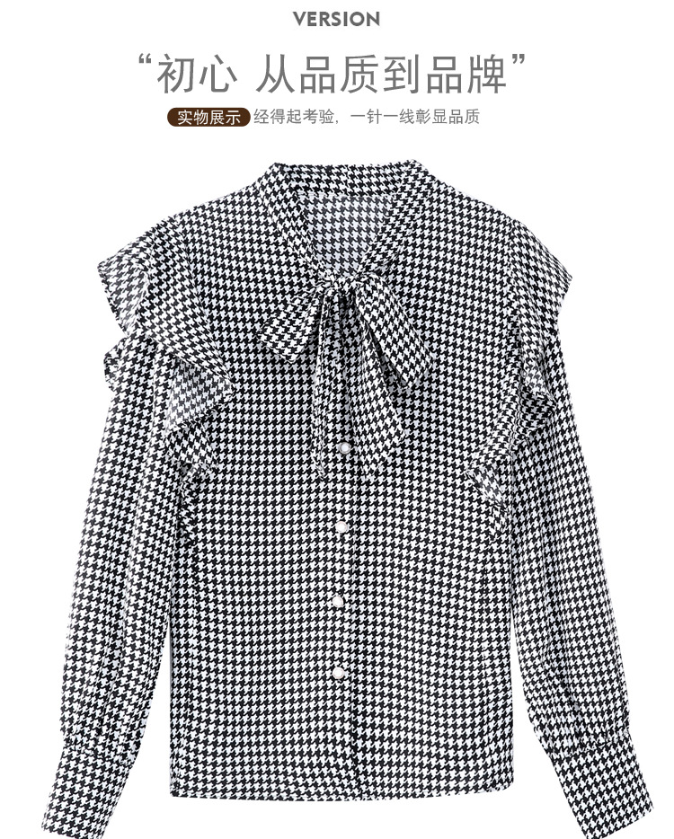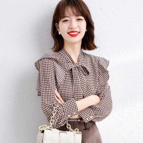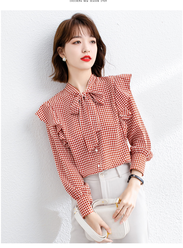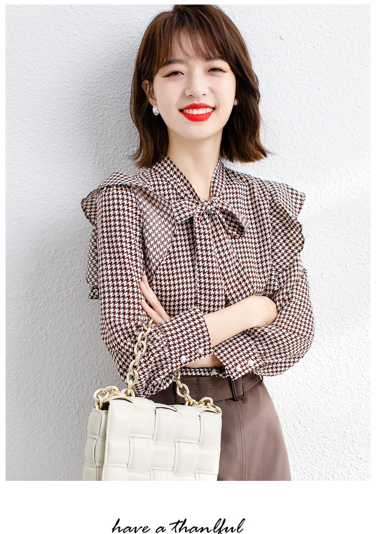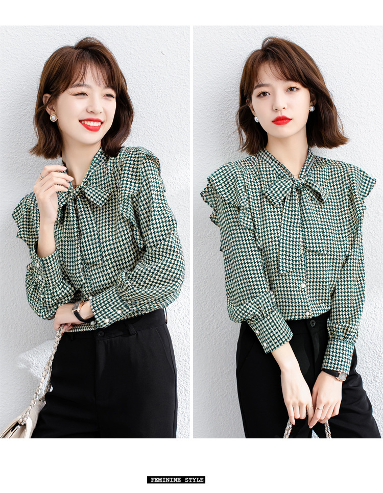 Houndstooth 셔츠 여성용 디자인 센스 틈새 봄 의류 2023 새로운 보우 셔츠 여성 패션 모든 매치 탑스토어 가기
