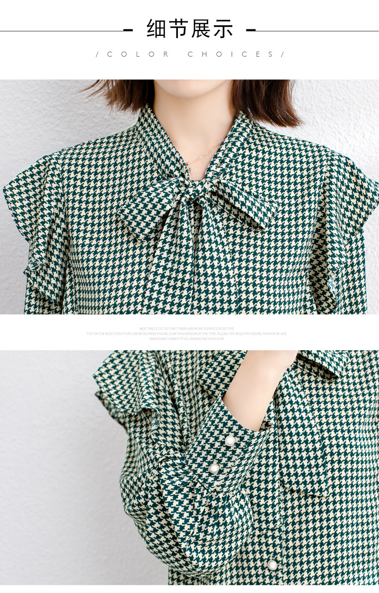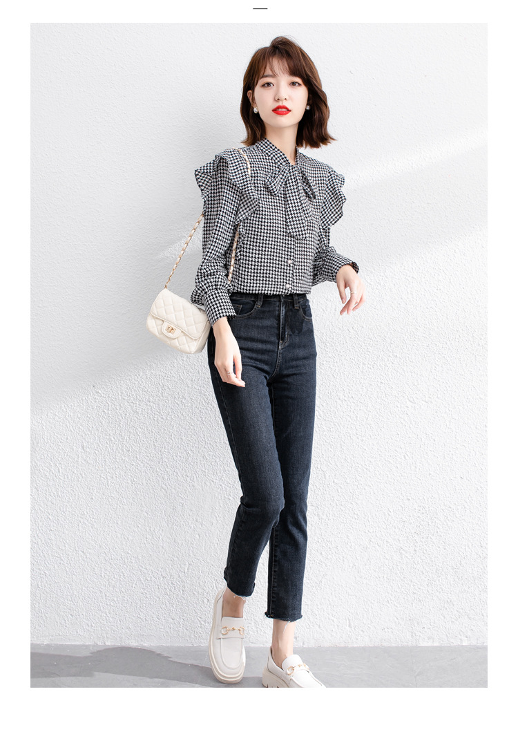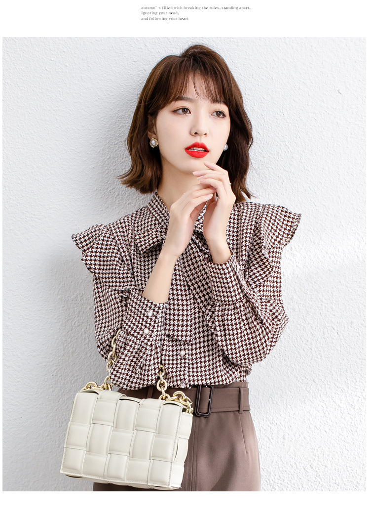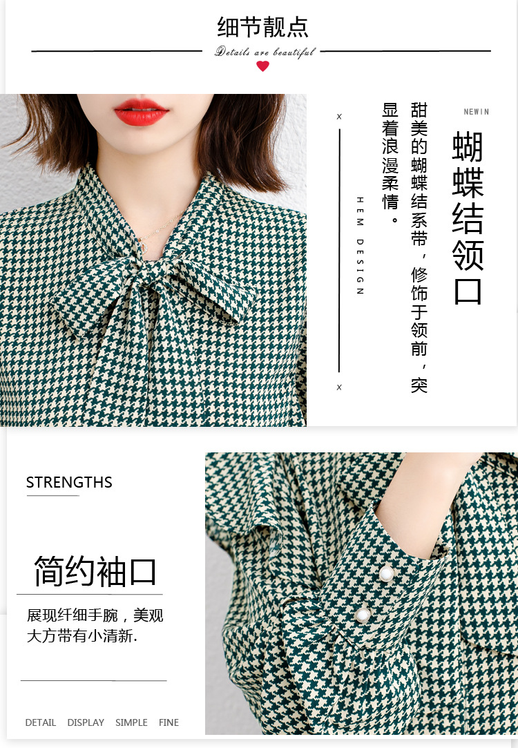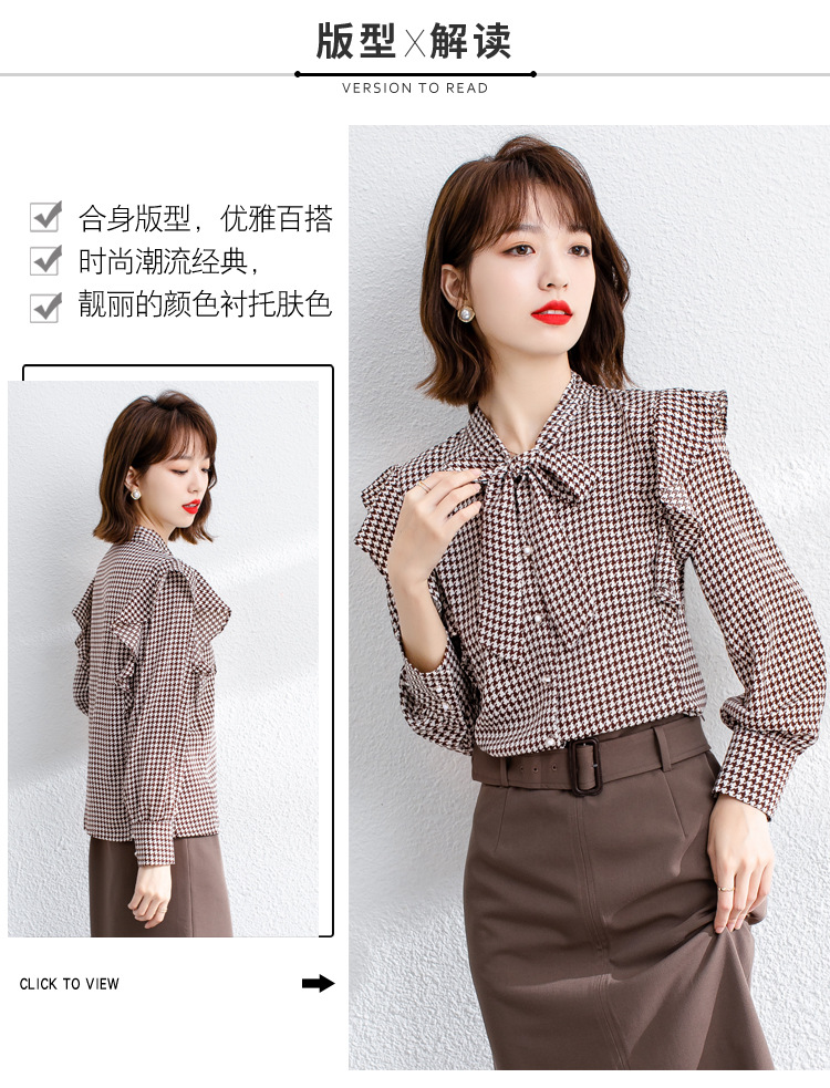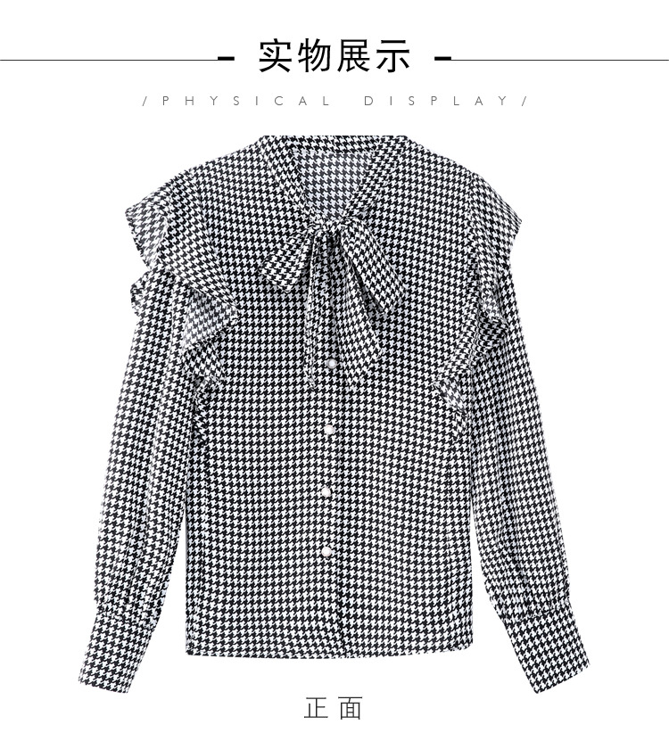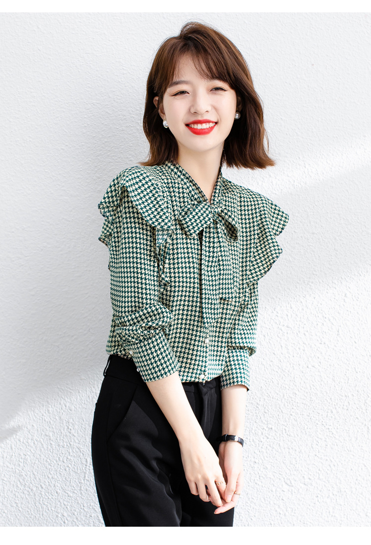 Houndstooth 셔츠 여성용 디자인 센스 틈새 봄 의류 2023 새로운 보우 셔츠 여성 패션 모든 매치 탑스토어 가기
