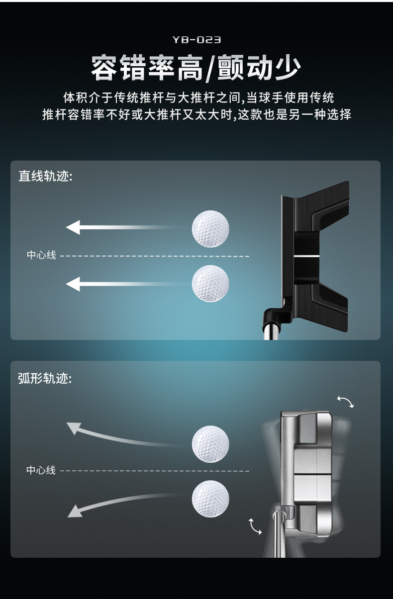 容错率高/颤动少,体积介于传统推杆与大推杆之间,当球手使用传统推杆容错率不好或大推杆又太大时,这款也是另一种选择 |