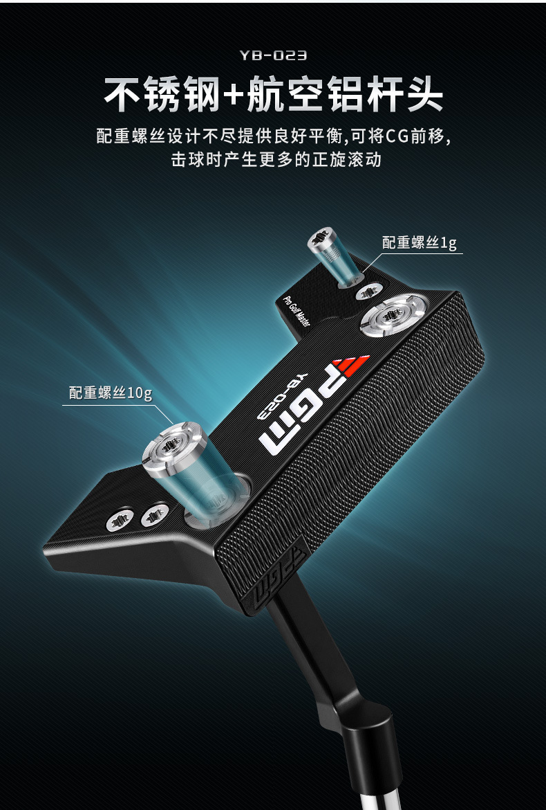 不锈钢+航空铝杆头,配重螺丝设计不尽提供良好平衡,可将CG前移击球时产生更多的正旋滚动 |