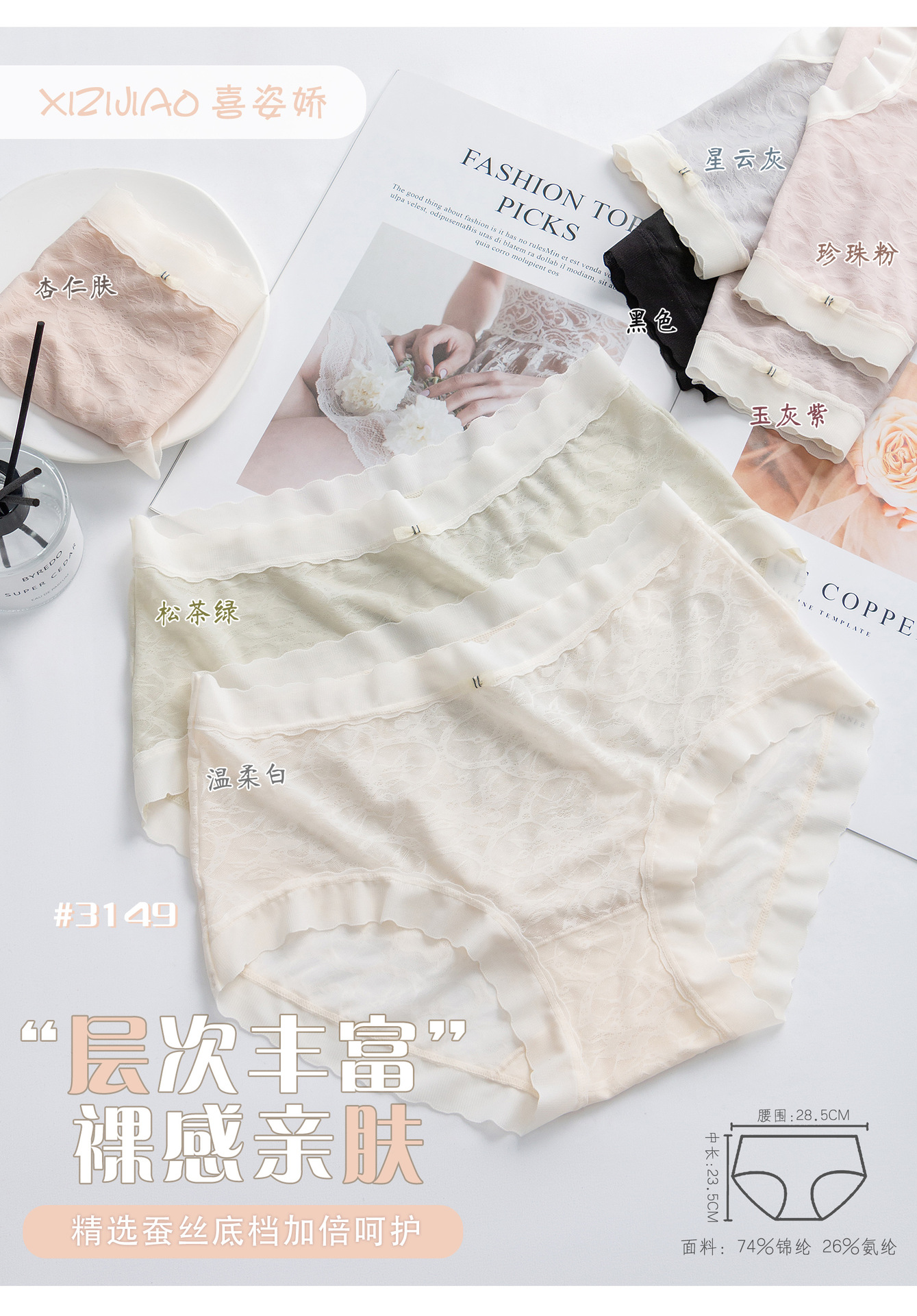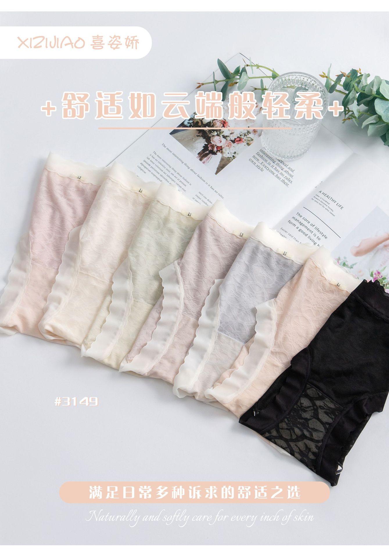 Xizijiao 3149 가방 엉덩이 속건 메이크업 꽃 실크 새로운 여자 속옷 부드러운 왁스 누드 반투명 브리프