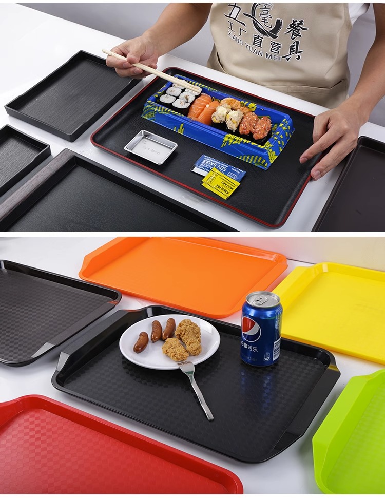 플라스틱 트레이 직사각형 레스토랑 레스토랑 패스트 푸드 미끄럼 방지 서빙 트레이 버거 샵을위한 특별 상업용 디너 플레이트스토어 가기