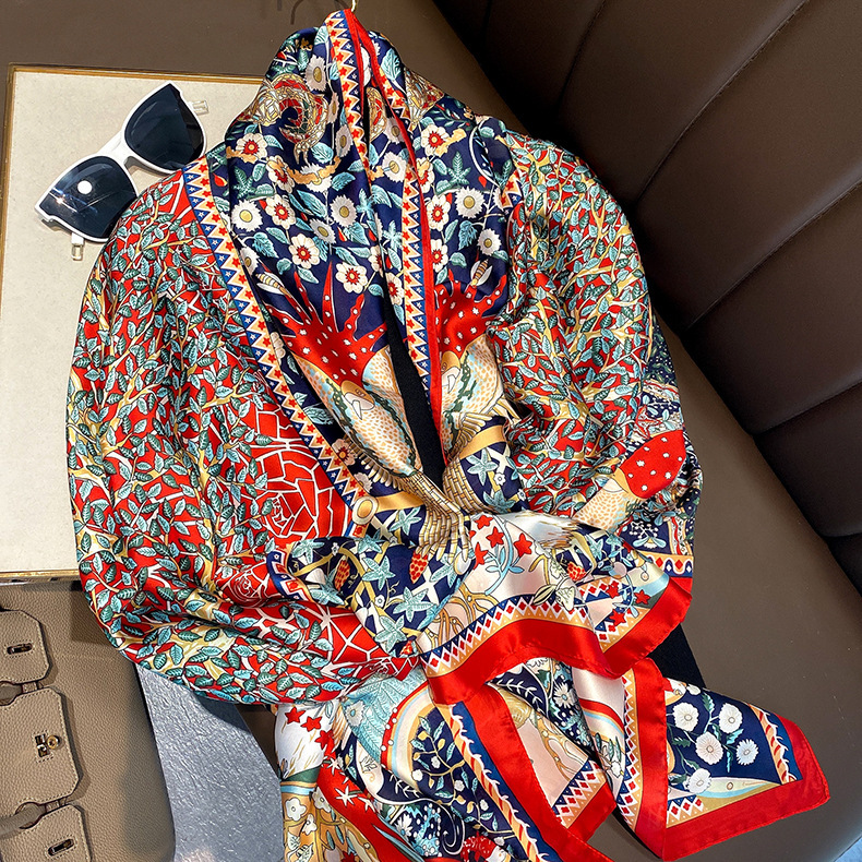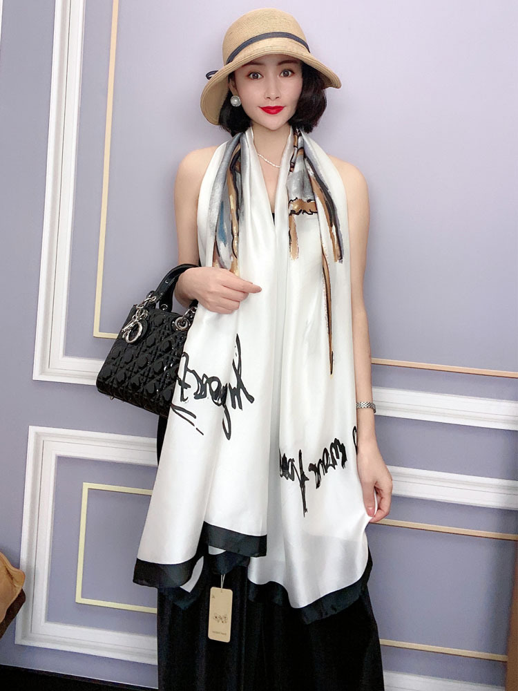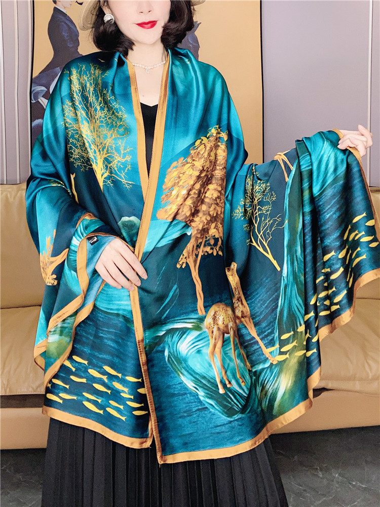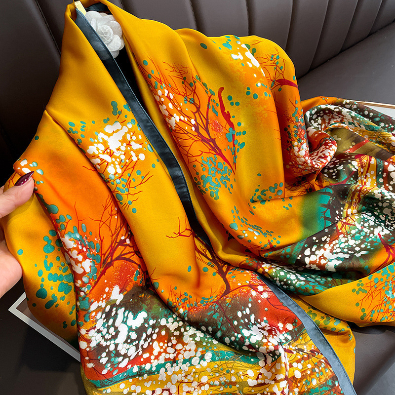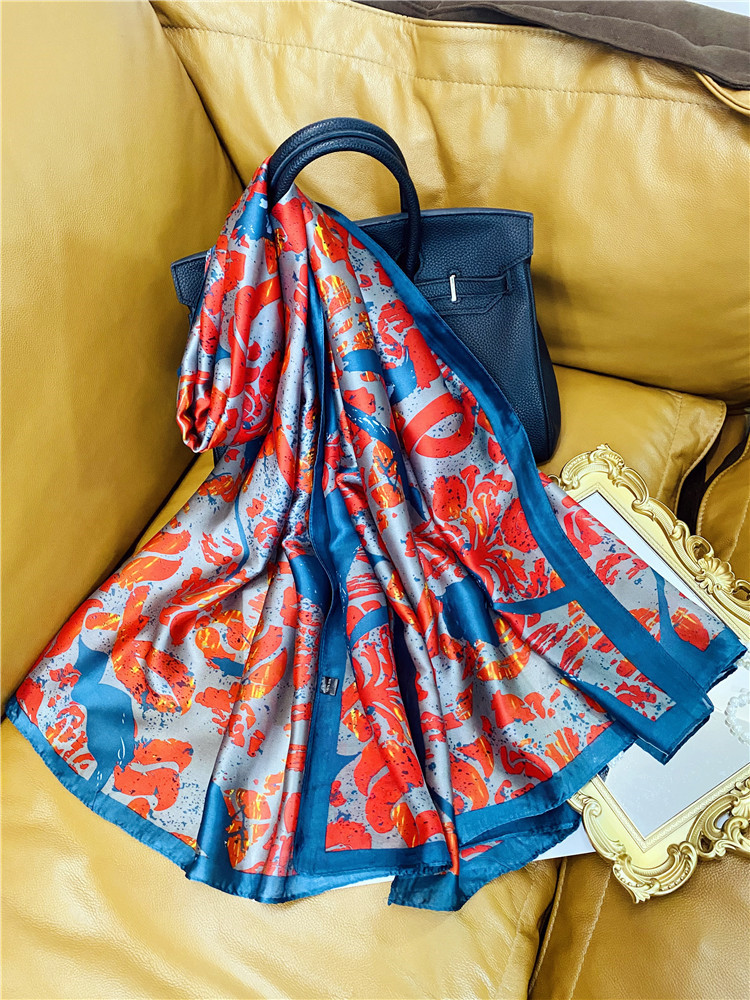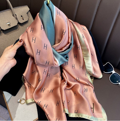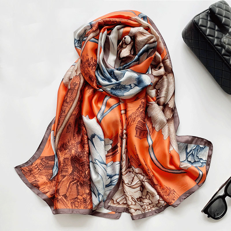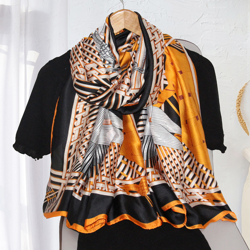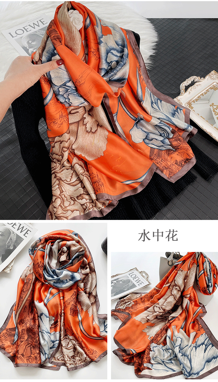 항저우 실크 롱 유럽과 미국 스타일의 사계절 자외선 차단제 실크 스카프 여성용 아우터 숄 따뜻한 이중 목적 실크 스카프 세트스토어 가기