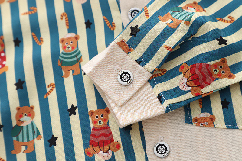 어린이 캐주얼 긴팔 셔츠 남아 스트라이프 셔츠 투피스 세트 소년 캐주얼 세트 봄과 가을 어린이 스타일스토어 가기