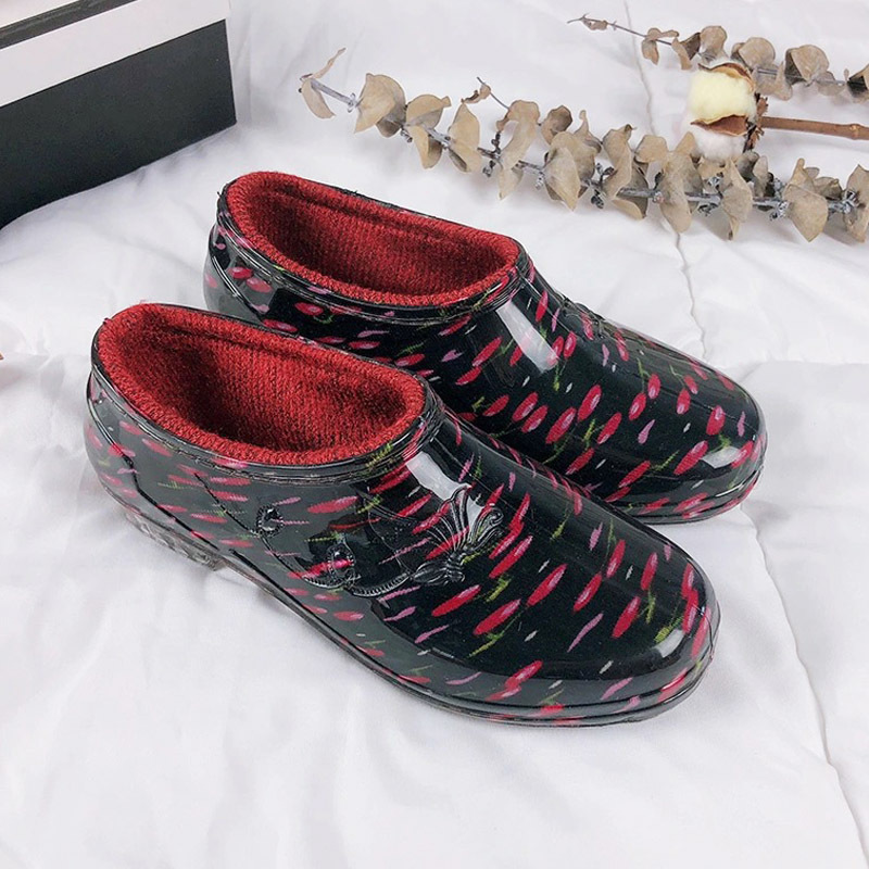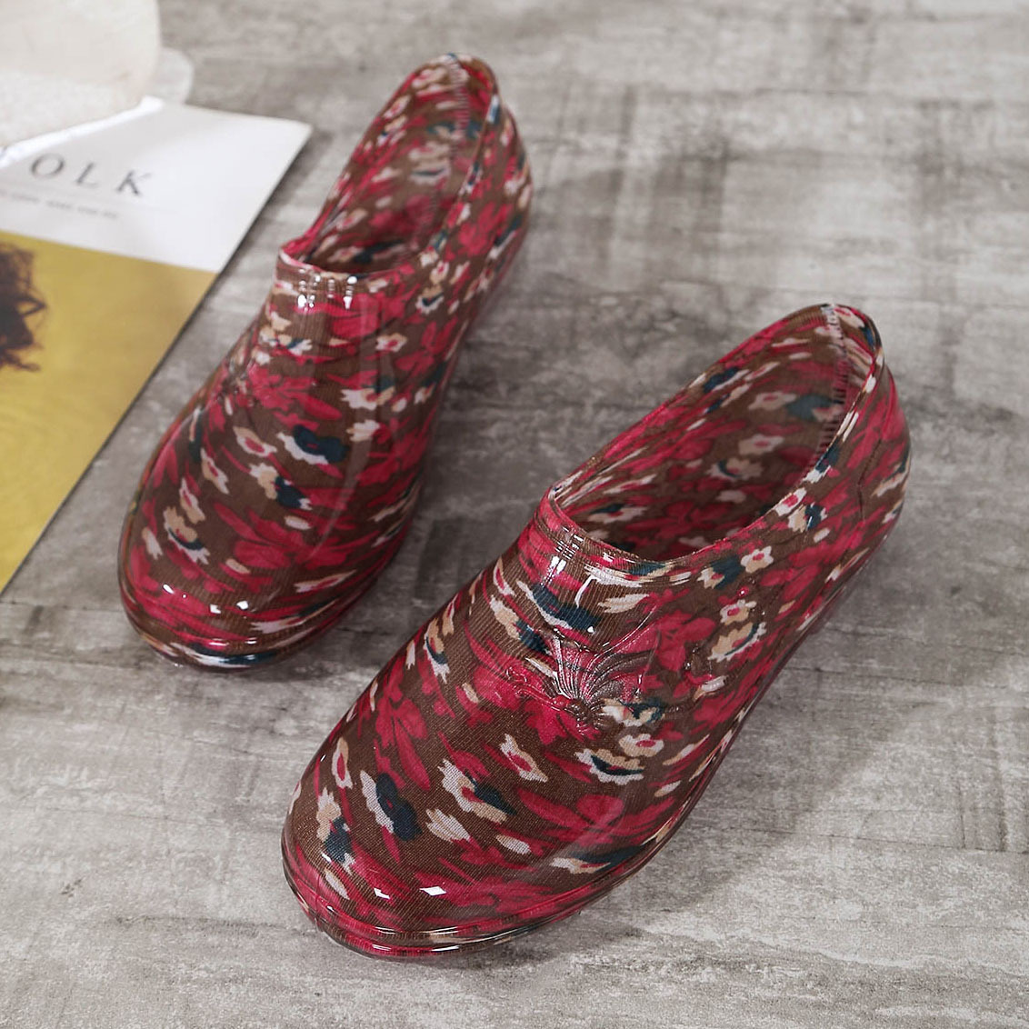 새로운 로우 탑 레인 슈즈 여성 여름 패션 성인 미끄럼 방지 방수 신발 얕은 입 작업 주방 여성 고무 신발 오버 슈즈 조수스토어 가기