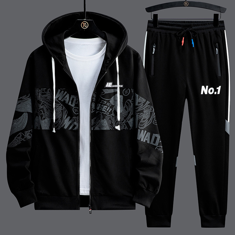 2024 봄 캐주얼 스포츠 세트 남자의 느슨한 카디건 후드 스웨터 재킷 투피스 세트