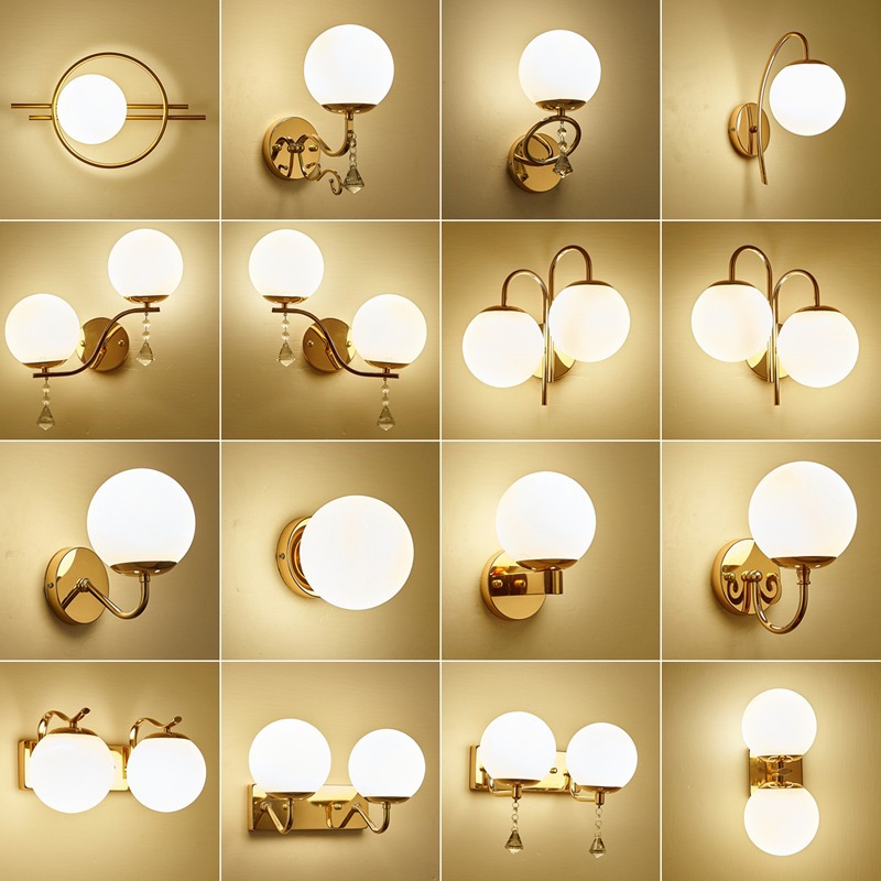 벽 램프 침실 침대 옆 램프 현대 간단한 거실 연구 황금 북유럽 조명 럭셔리 안티 모기 밀봉 벽 램프스토어 가기