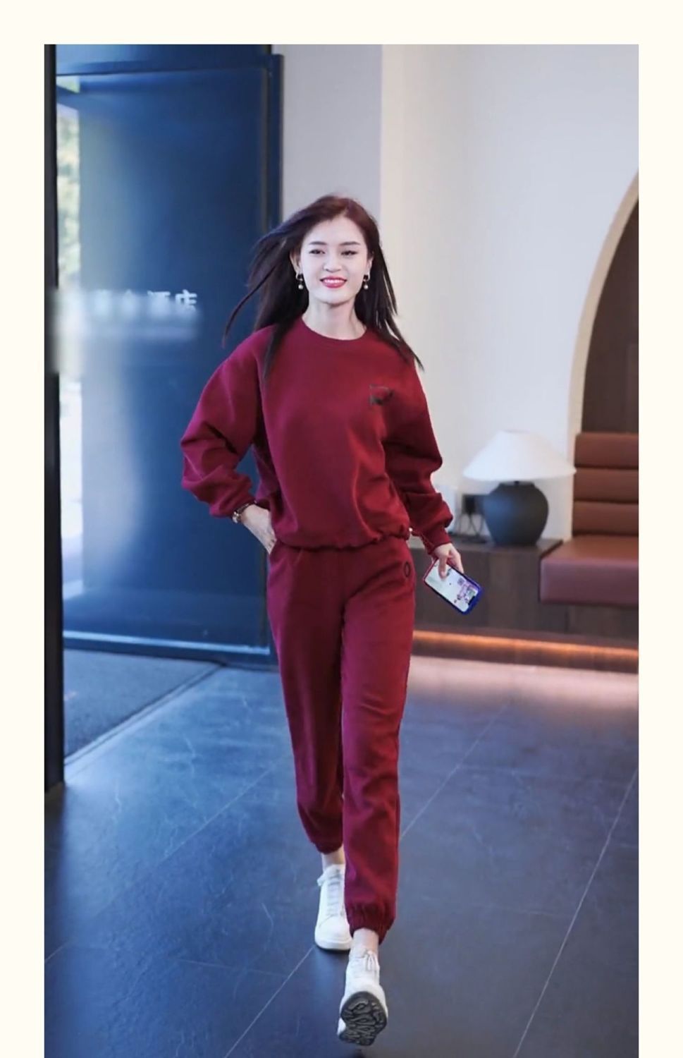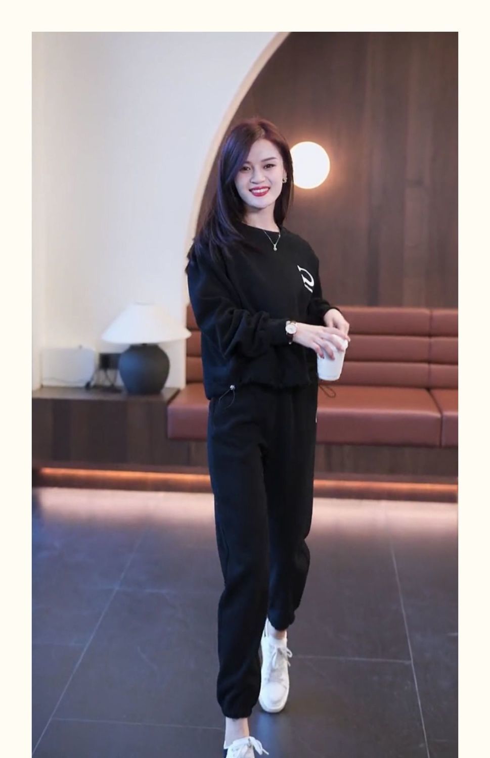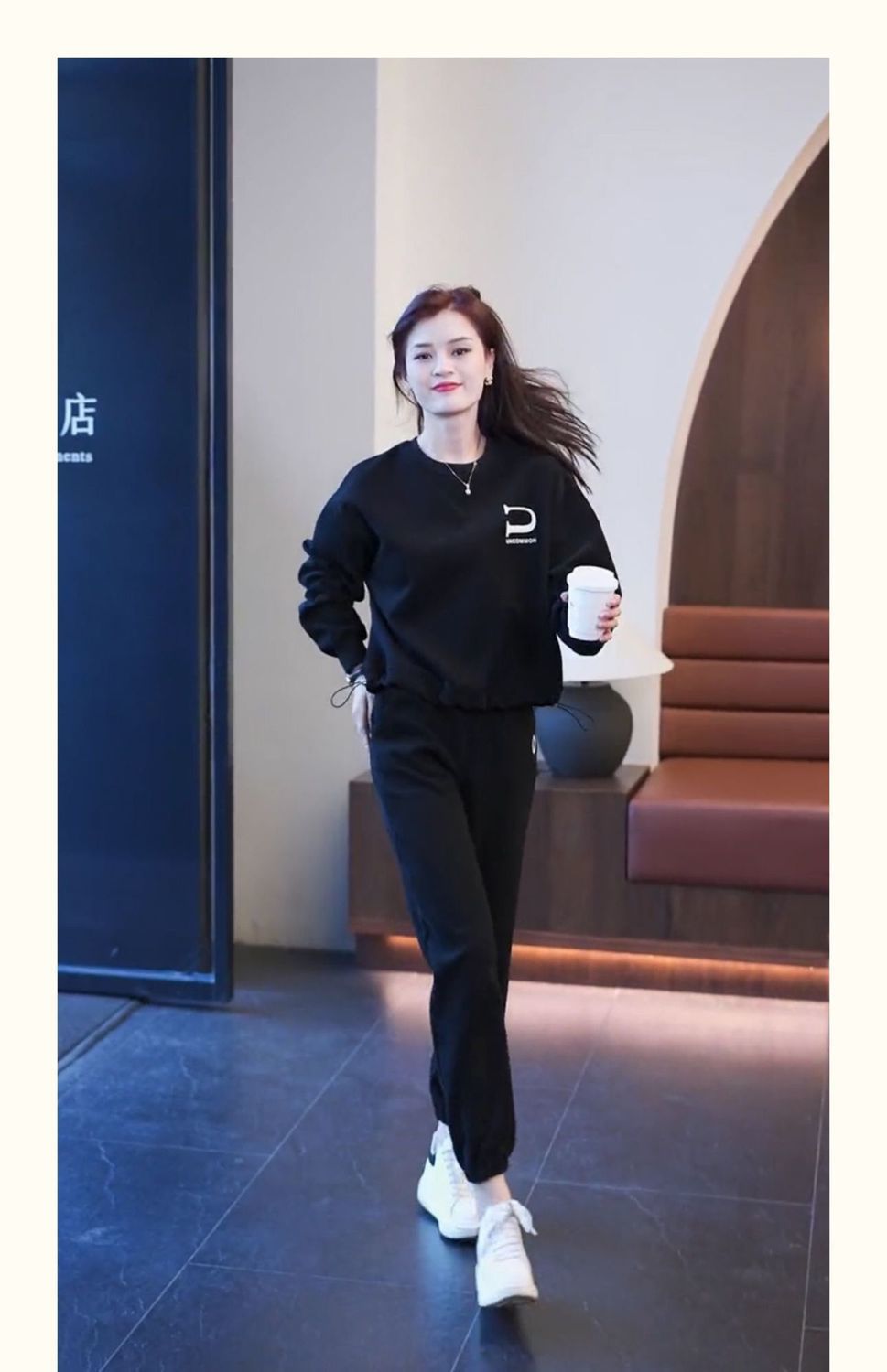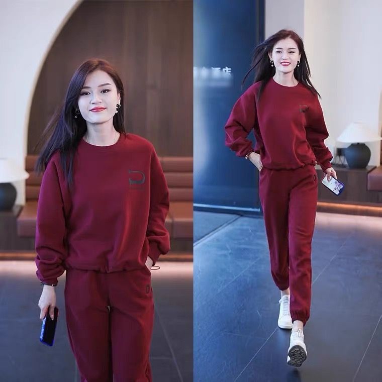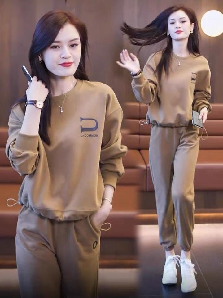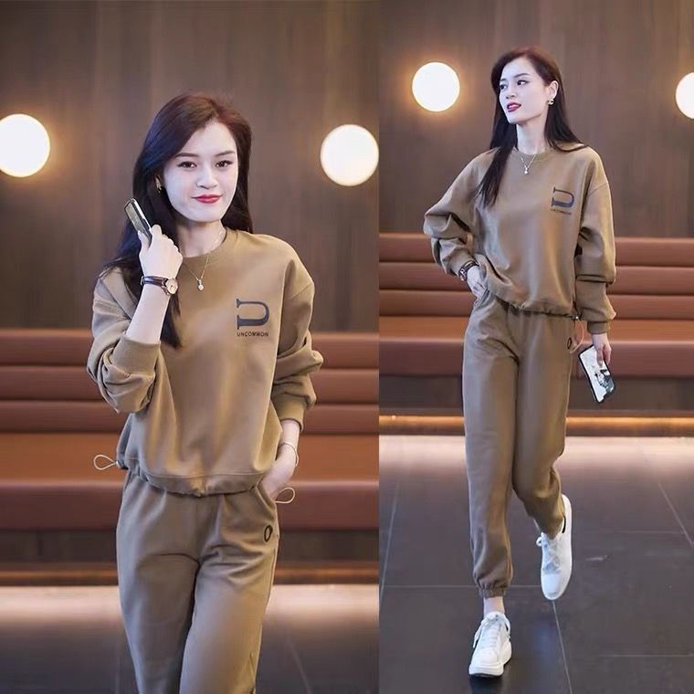 외국인 스타일 연령 감소 스포츠 세트 여성의 2023 봄과 가을 한국 패션 느슨한 살 커버 크루넥 플러스 사이즈 스웨터 투피스 세트스토어 가기