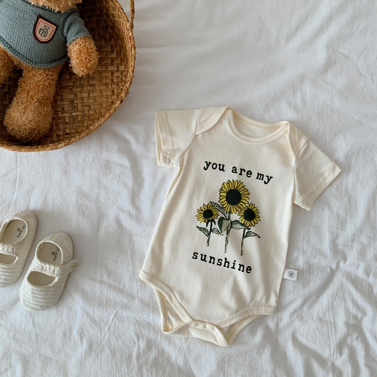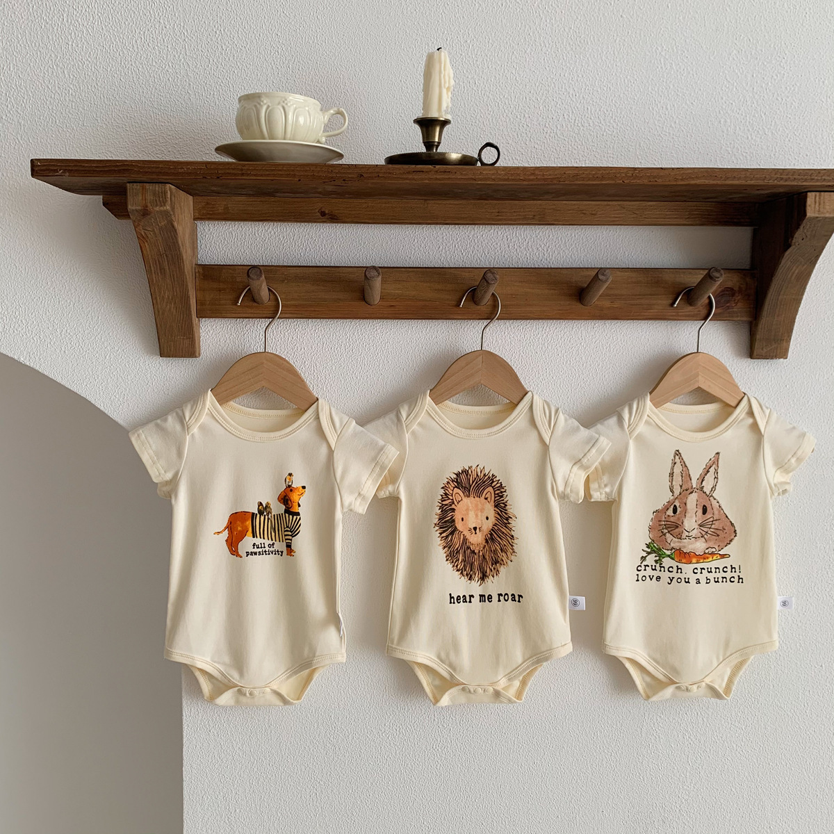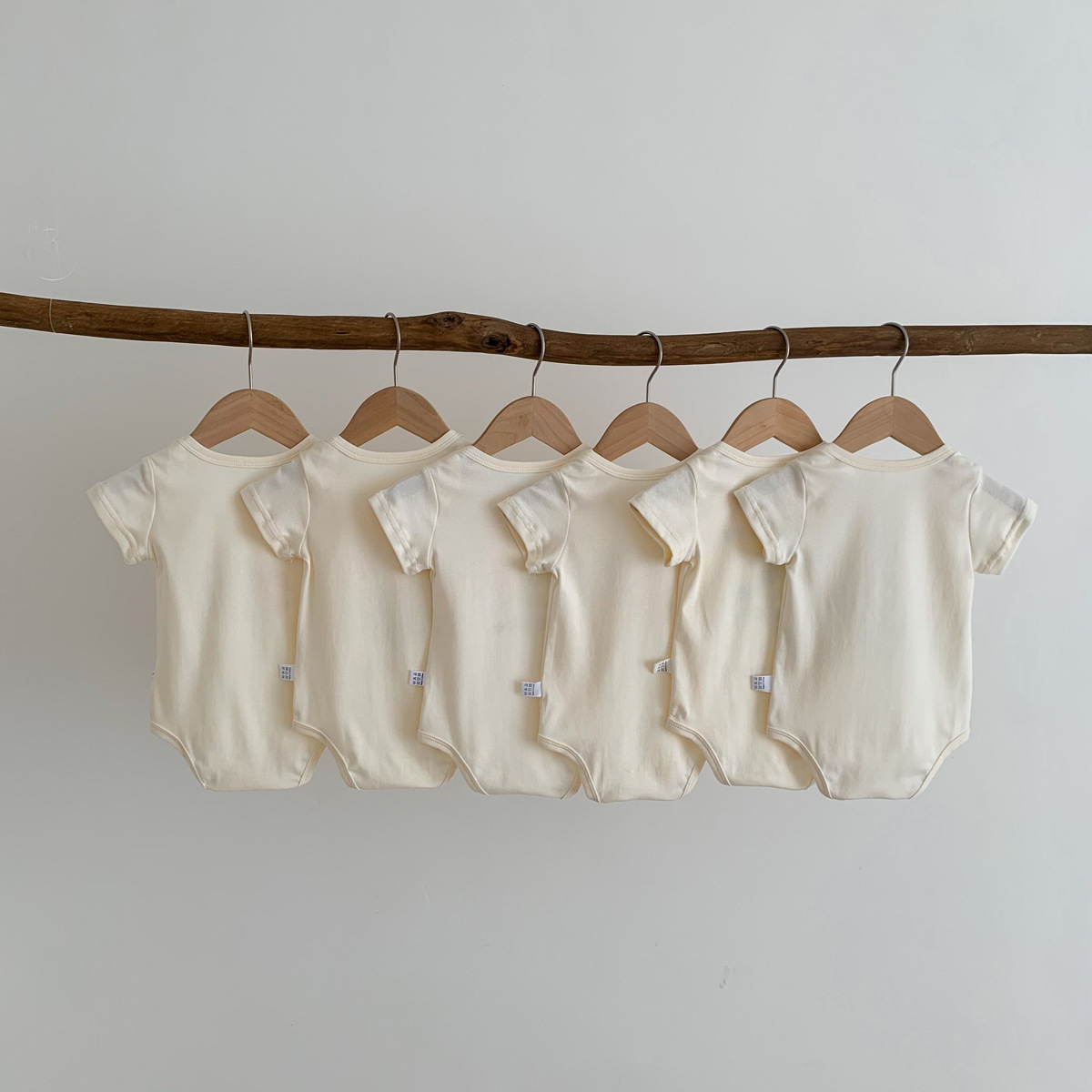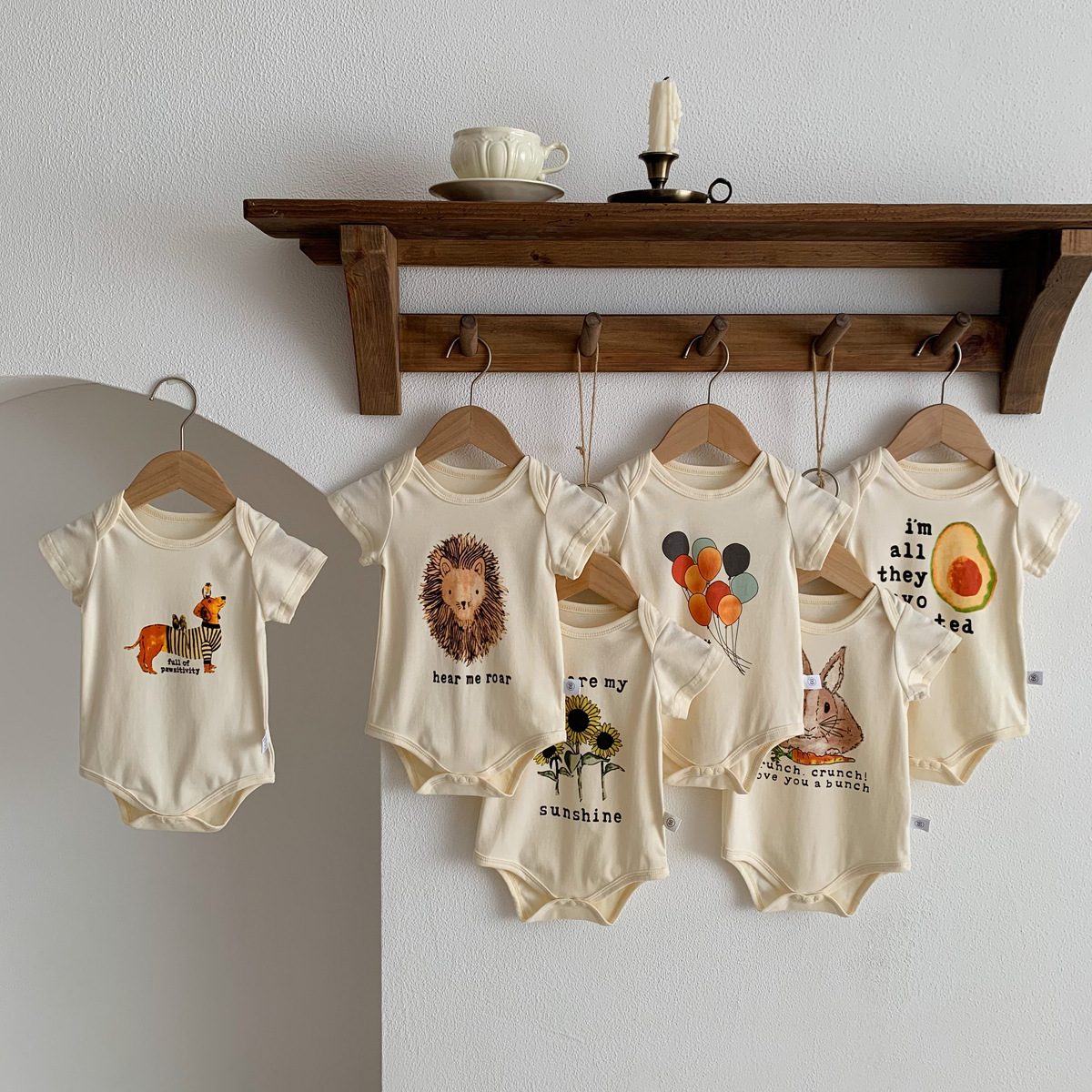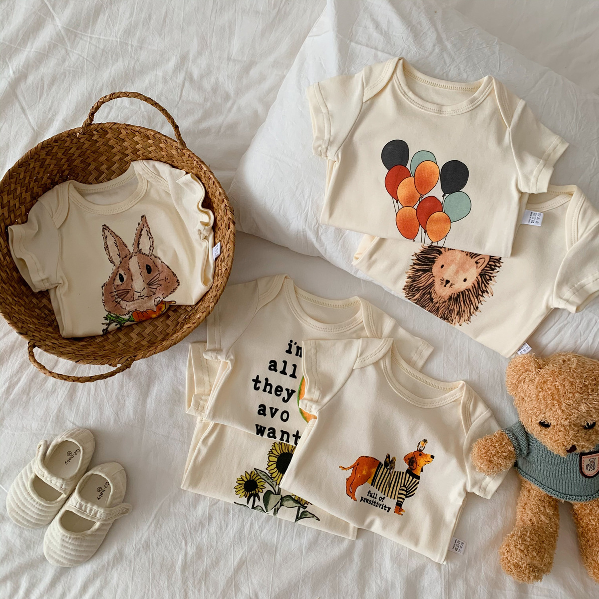 여름 유아와 어린 아이들을위한 북유럽 스타일 아기 반팔 등산 세트 얇은 남성과 여성의 아기 가방 방귀 점프 슈트