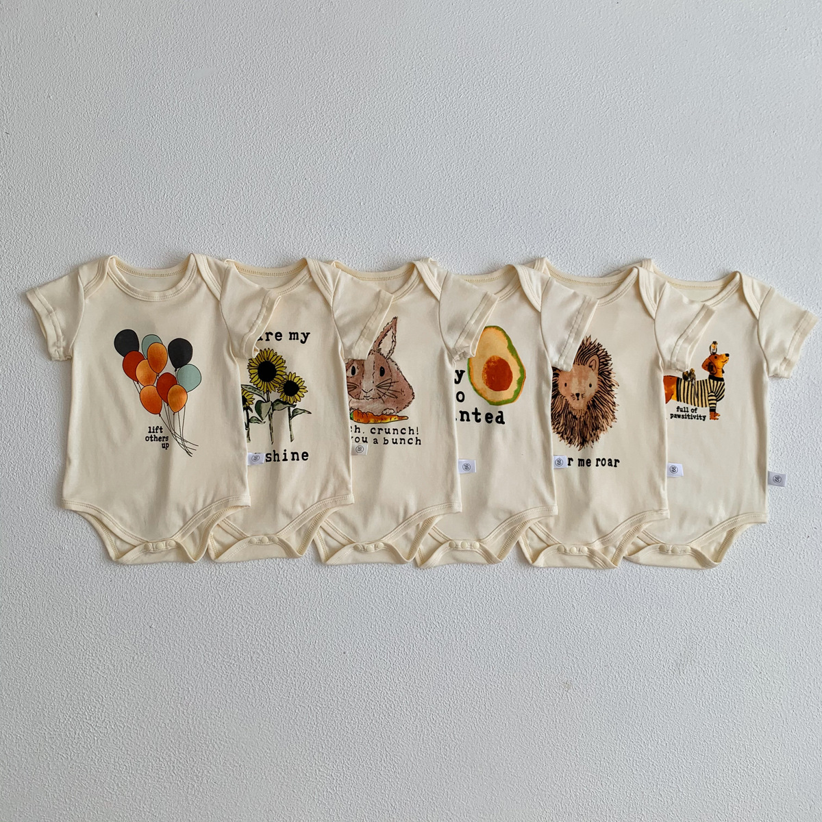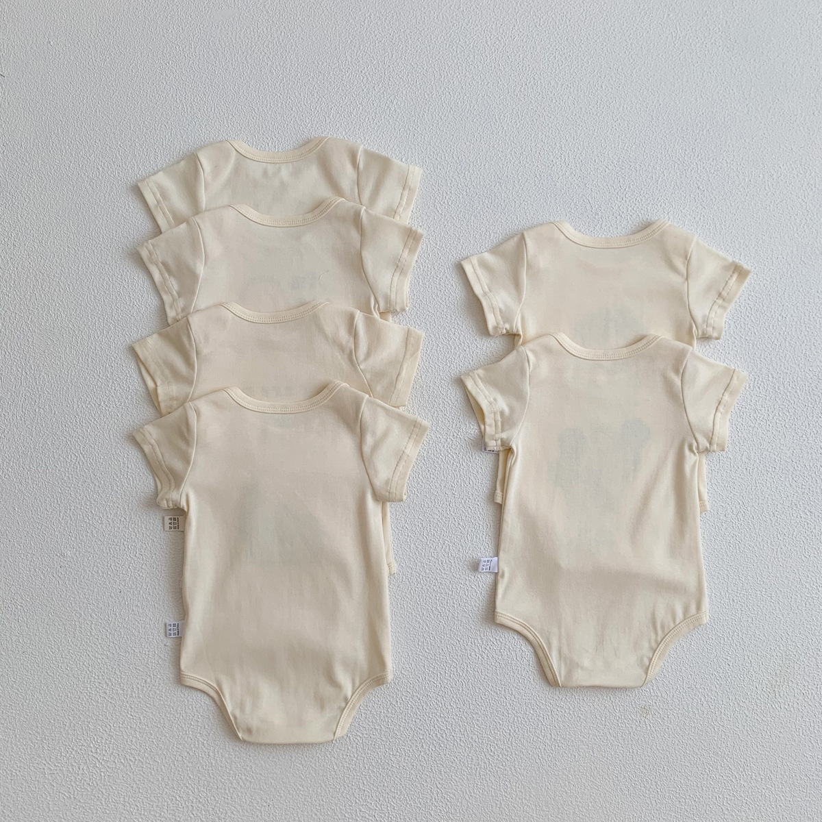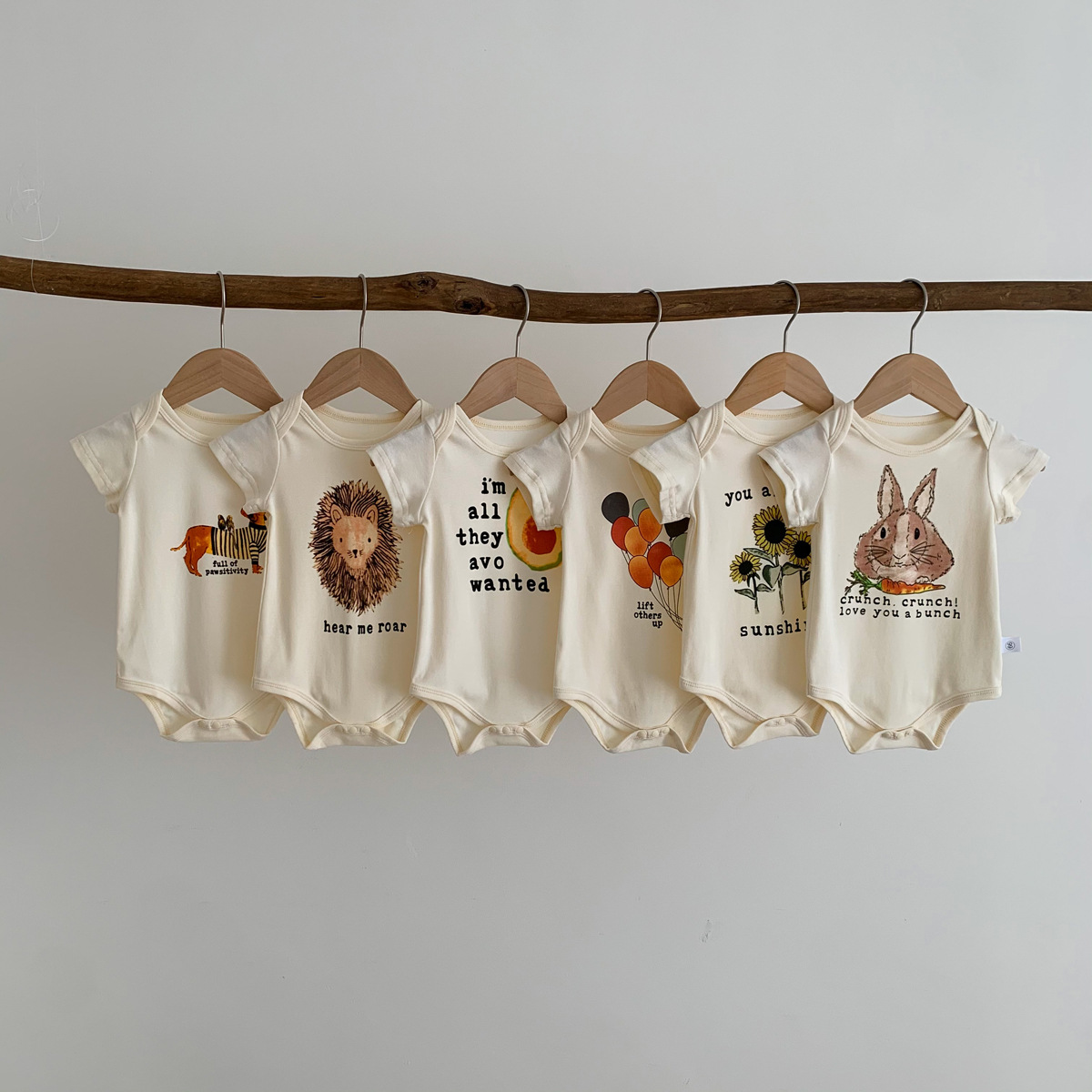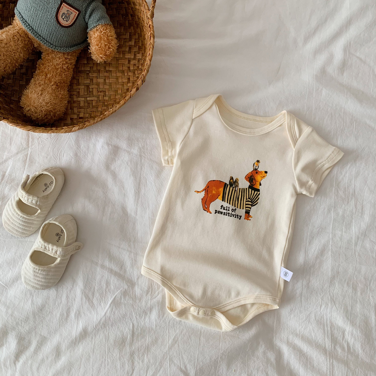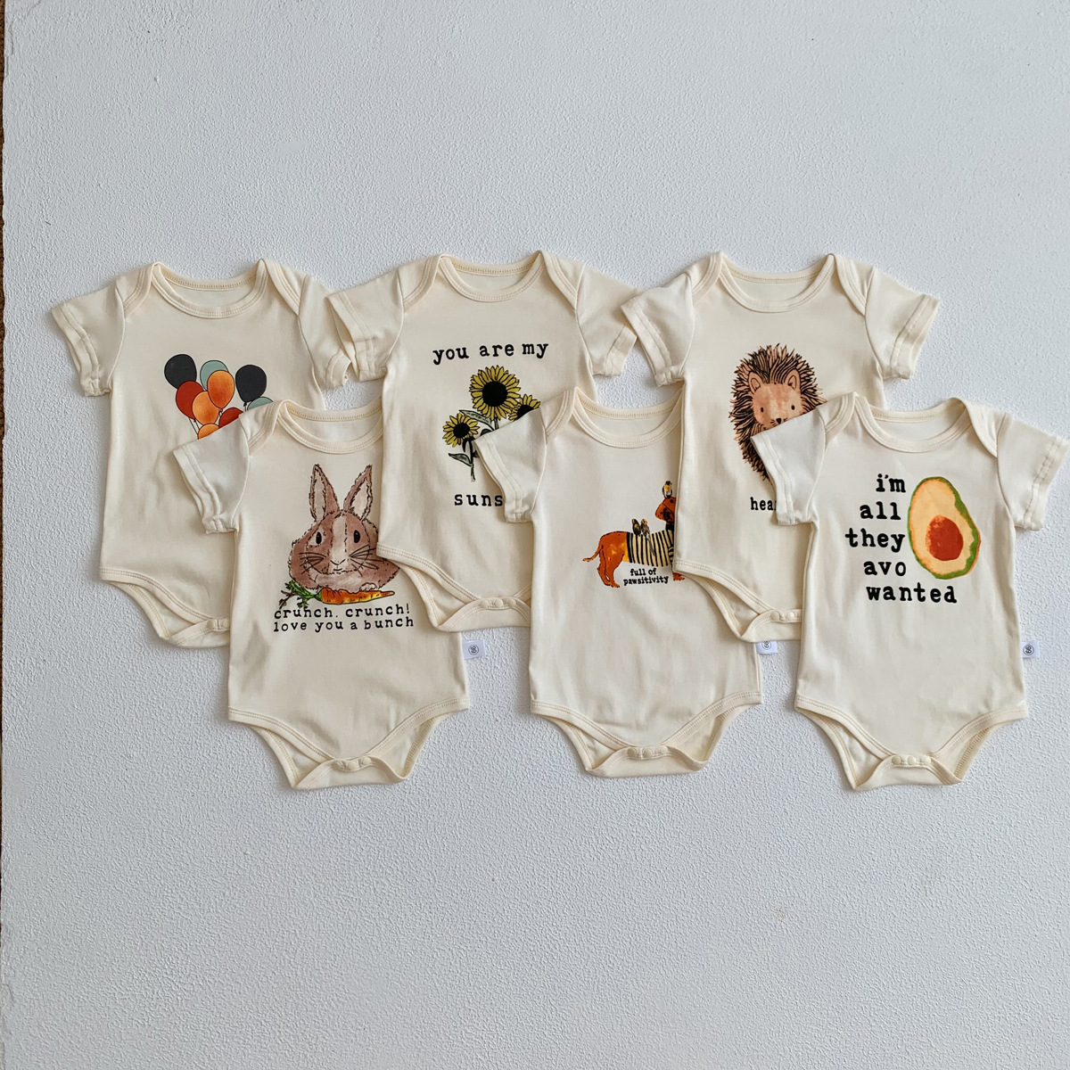 여름 유아와 어린 아이들을위한 북유럽 스타일 아기 반팔 등산 세트 얇은 남성과 여성의 아기 가방 방귀 점프 슈트