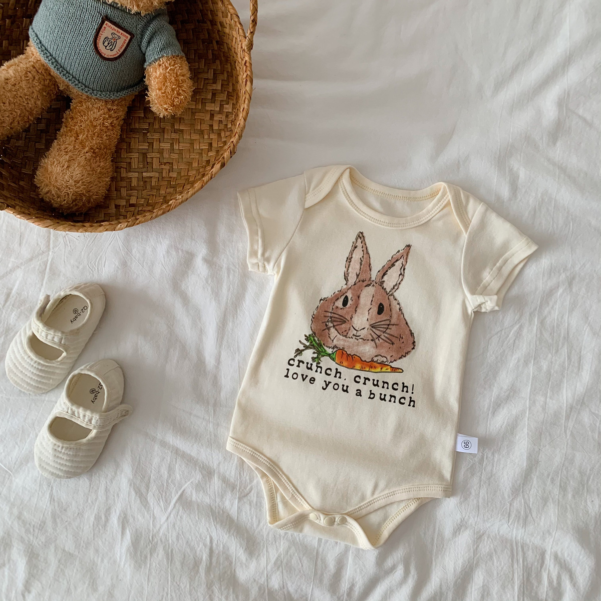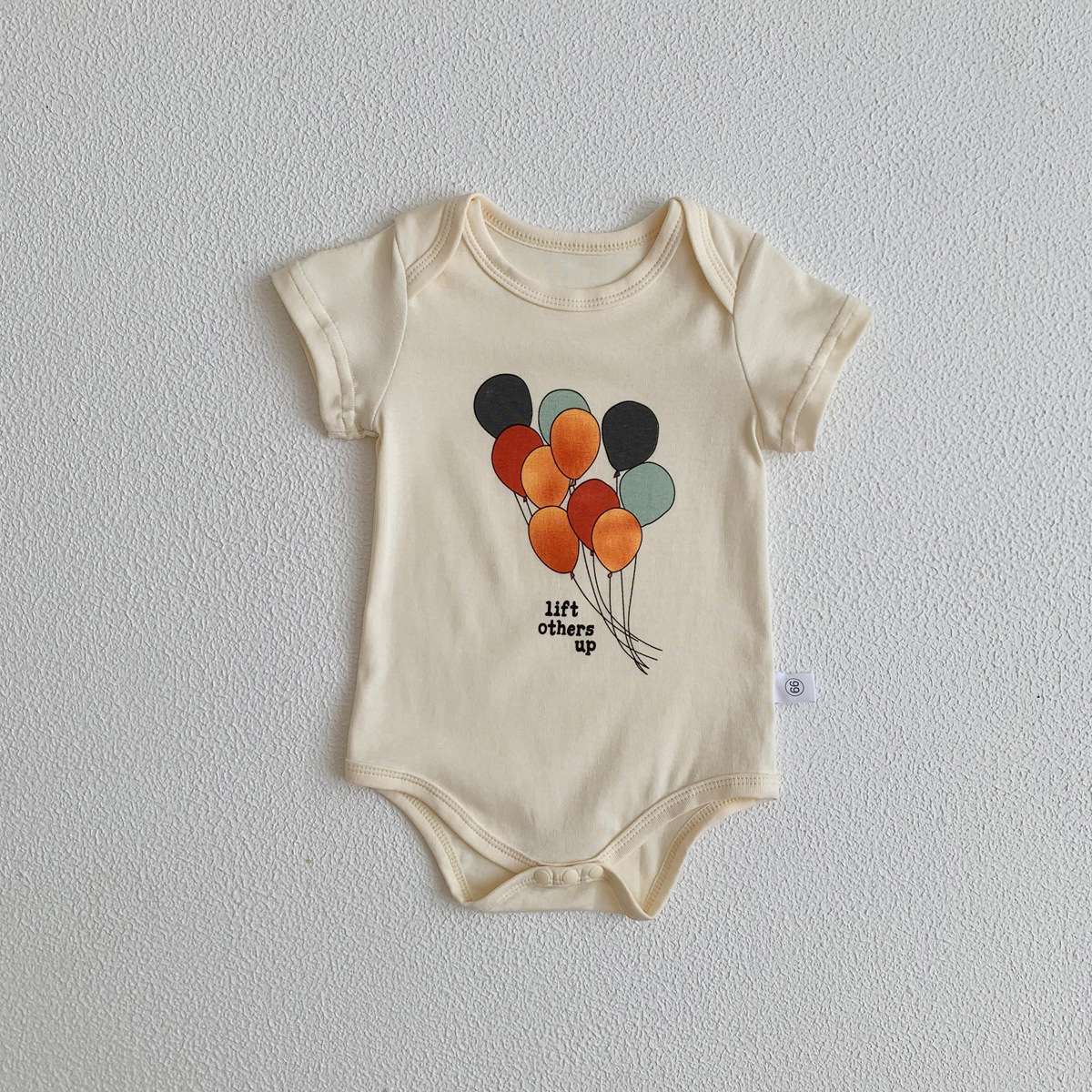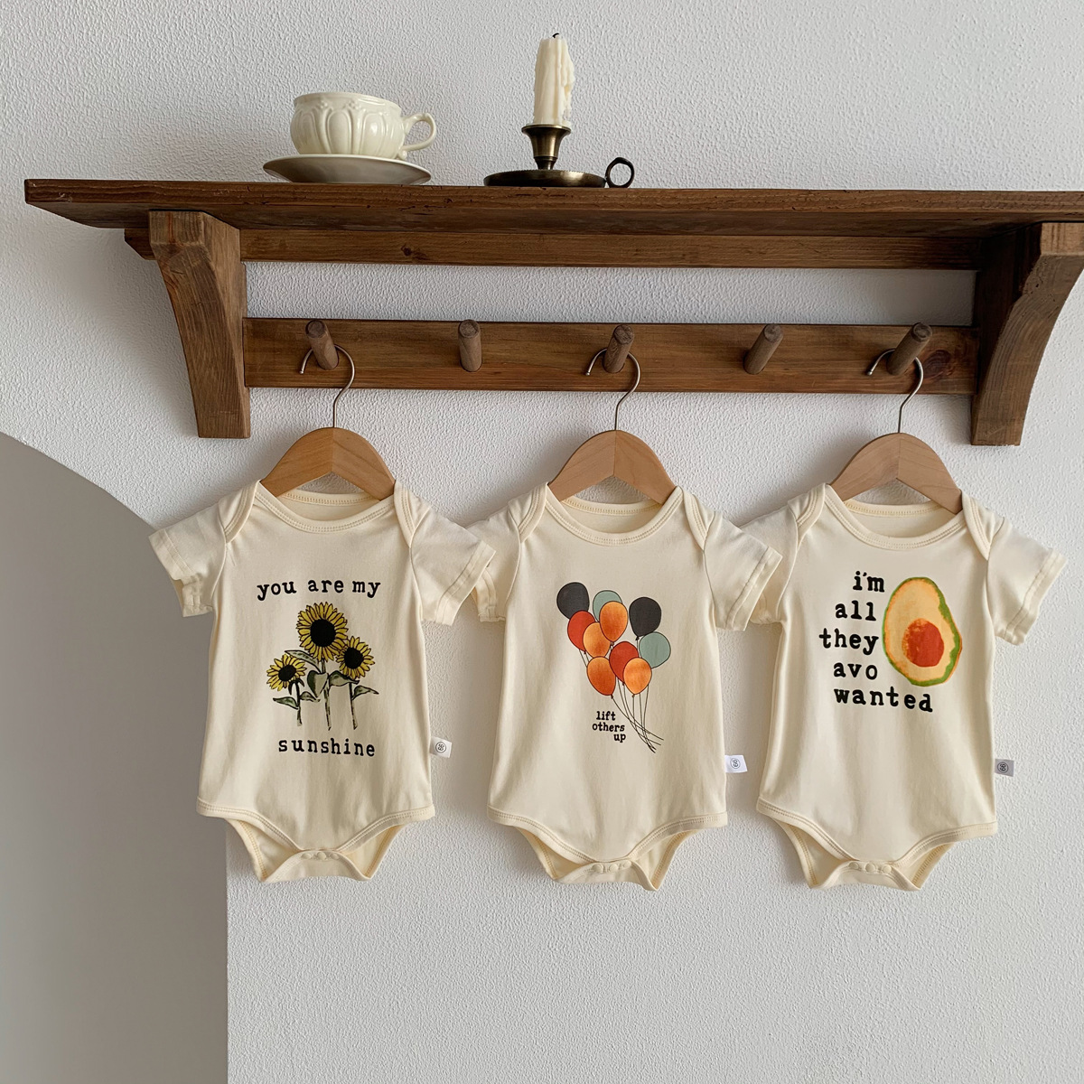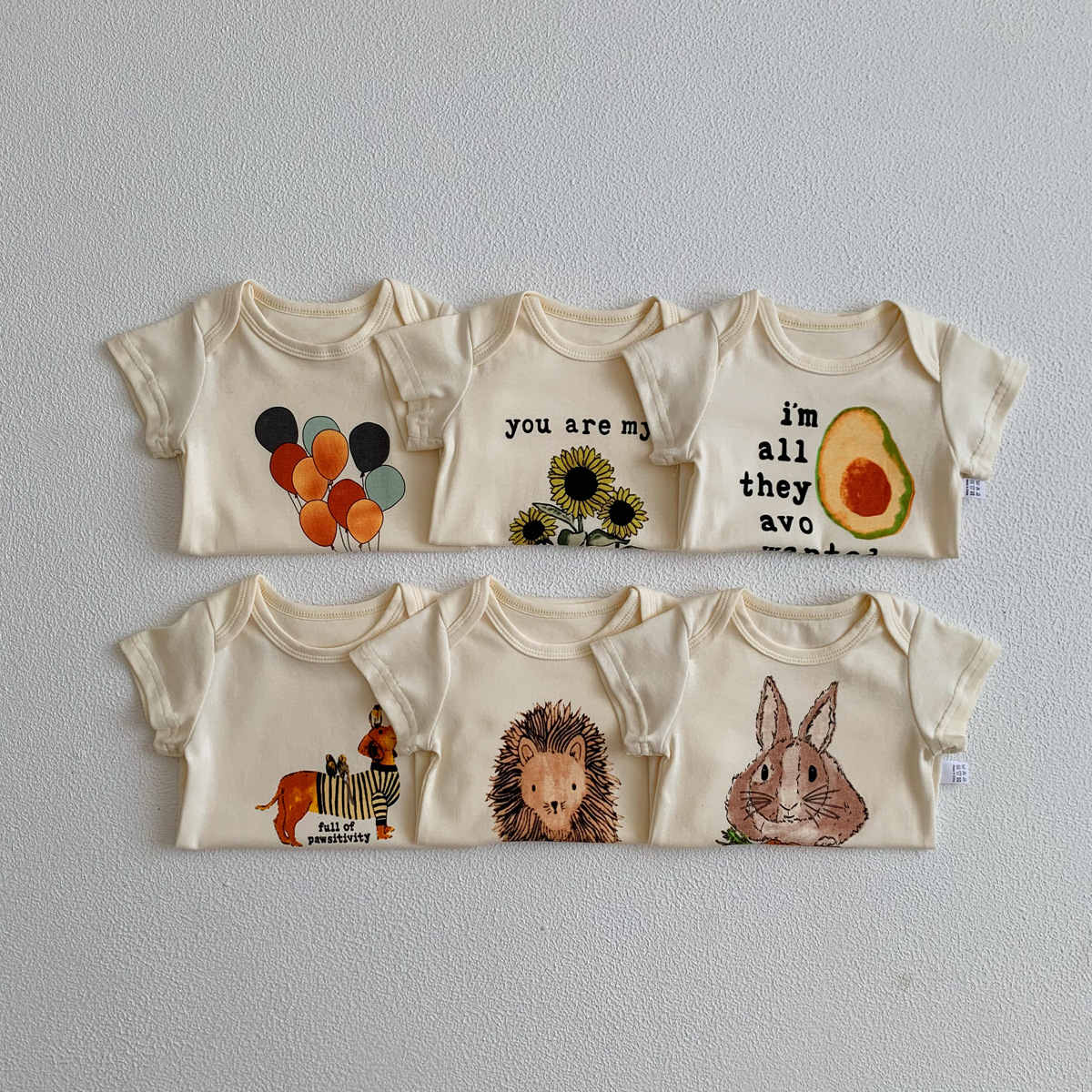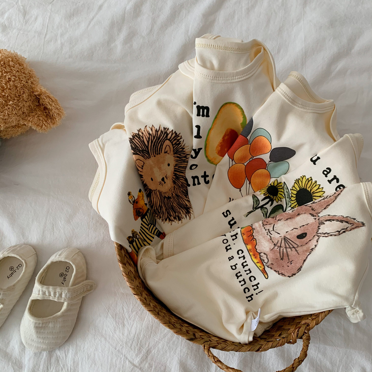 여름 유아와 어린 아이들을위한 북유럽 스타일 아기 반팔 등산 세트 얇은 남성과 여성의 아기 가방 방귀 점프 슈트