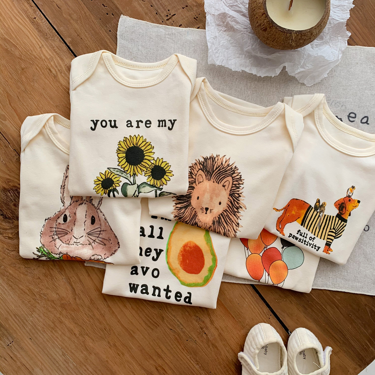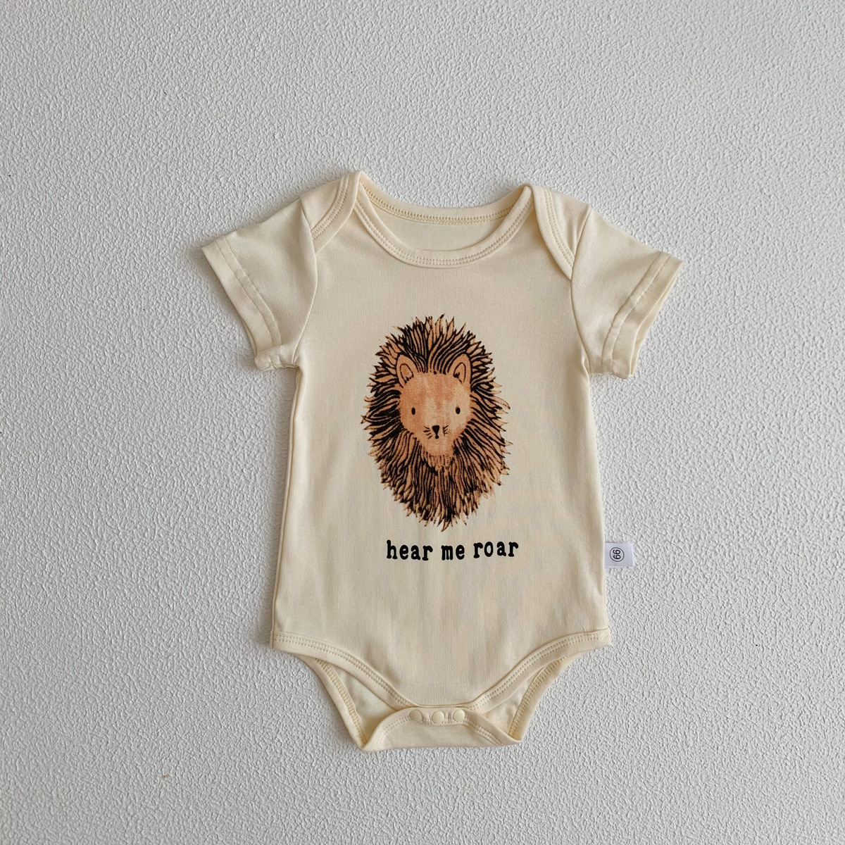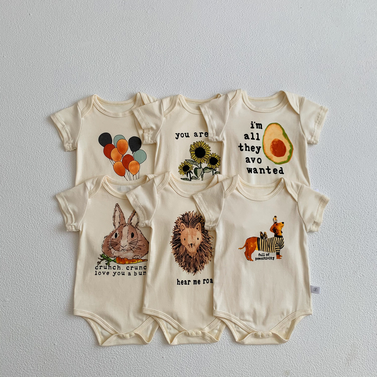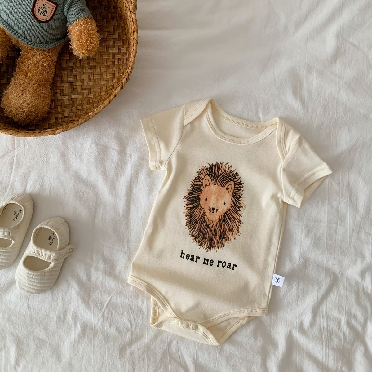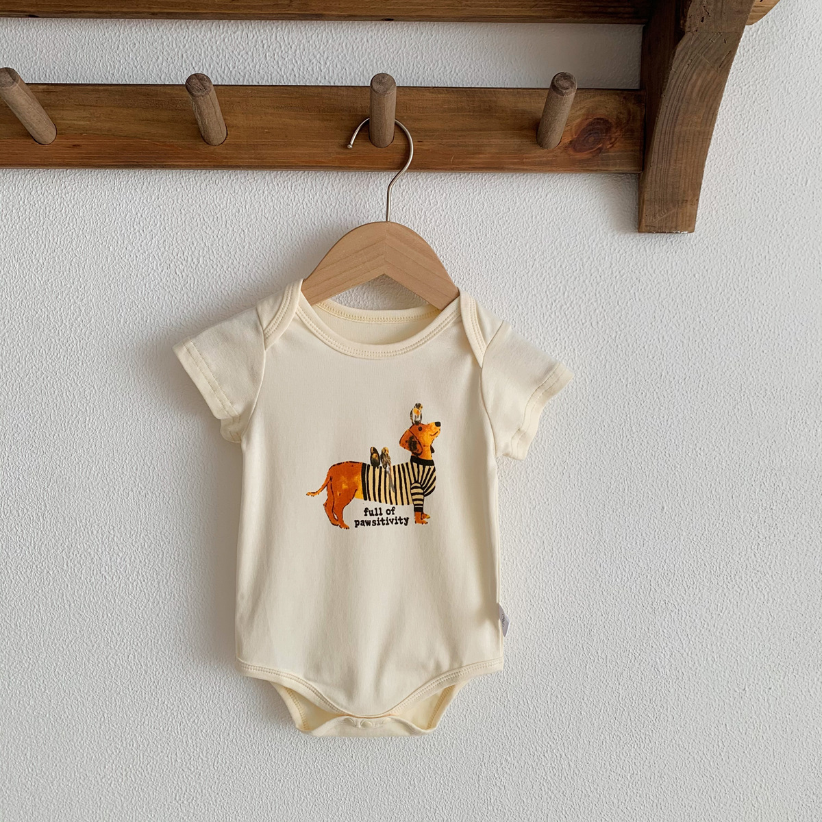 여름 유아와 어린 아이들을위한 북유럽 스타일 아기 반팔 등산 세트 얇은 남성과 여성의 아기 가방 방귀 점프 슈트