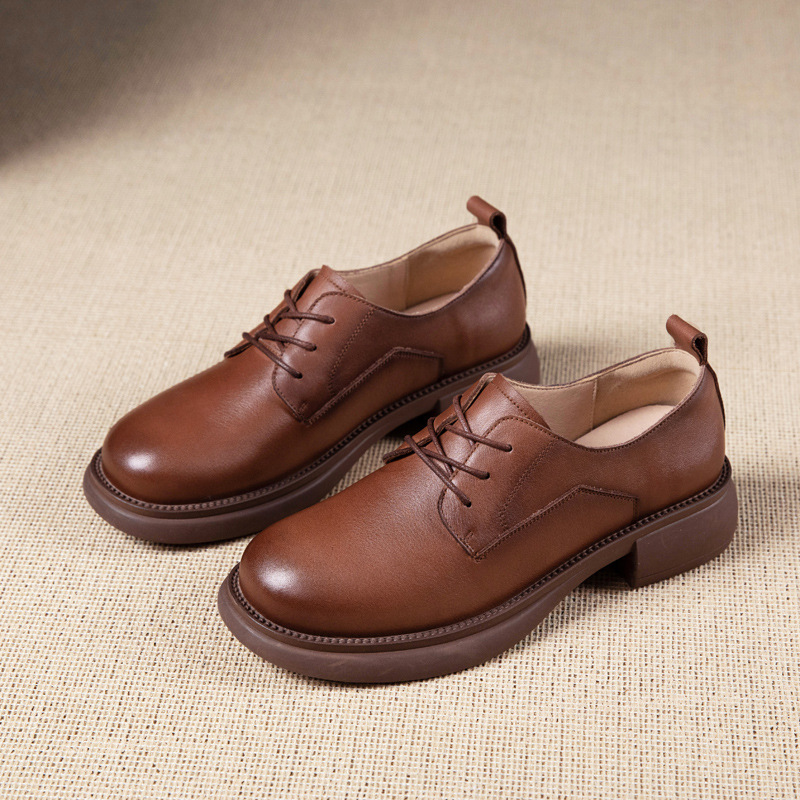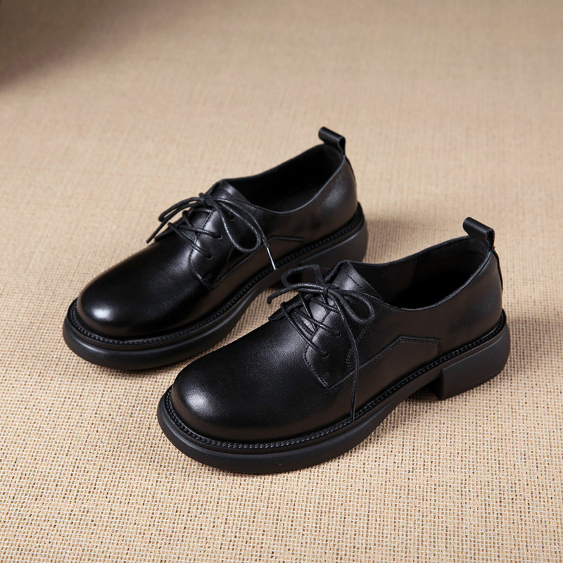 여성용 첫 번째 층 소가죽 로퍼, 봄과 가을 신상 캐주얼 레트로 스타일 레이스업 영국풍 작업용 여성용 가죽 신발스토어 가기