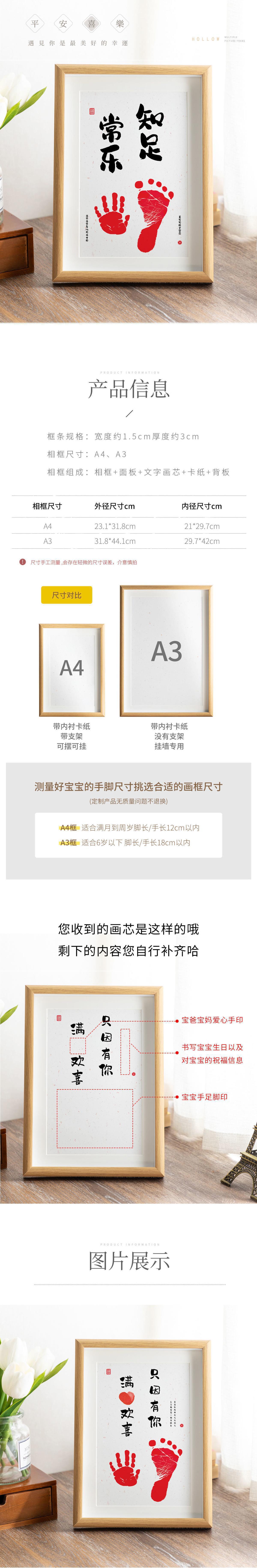 A4 아기 손발자국 100일 기념 액자. 어린이 손발자국 기념 액자 벽걸이 장식 액자스토어 가기