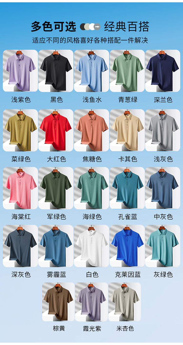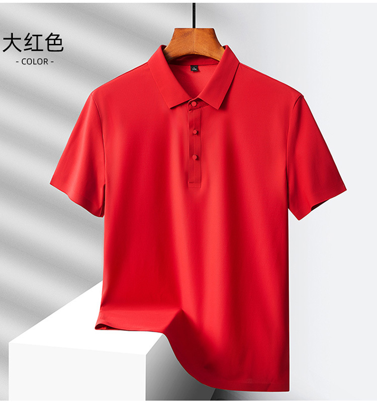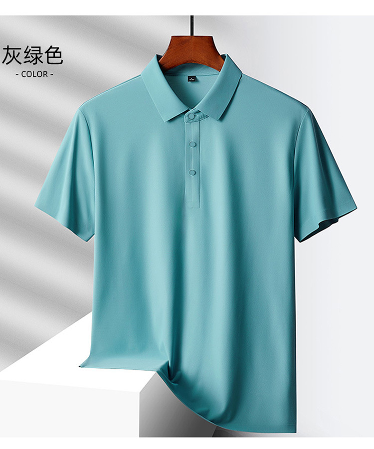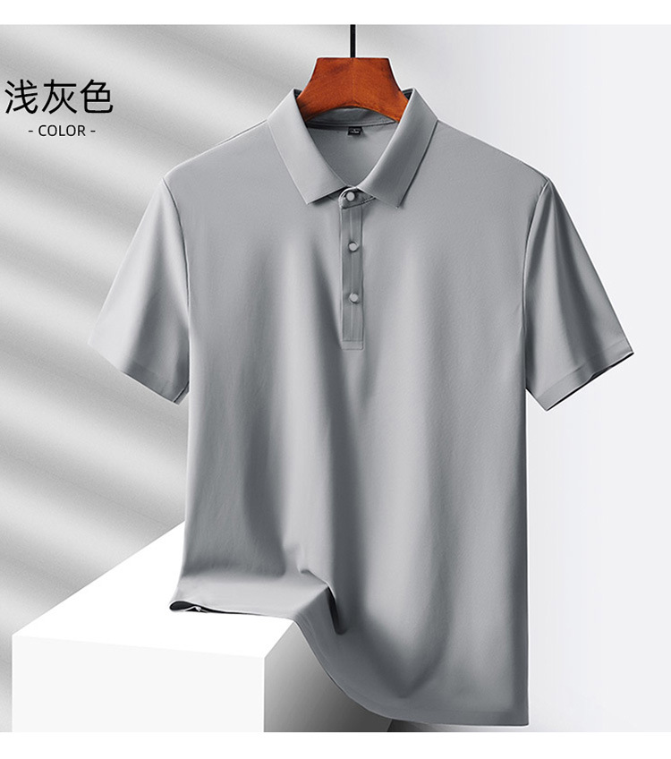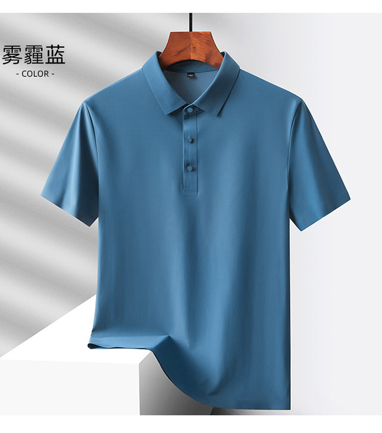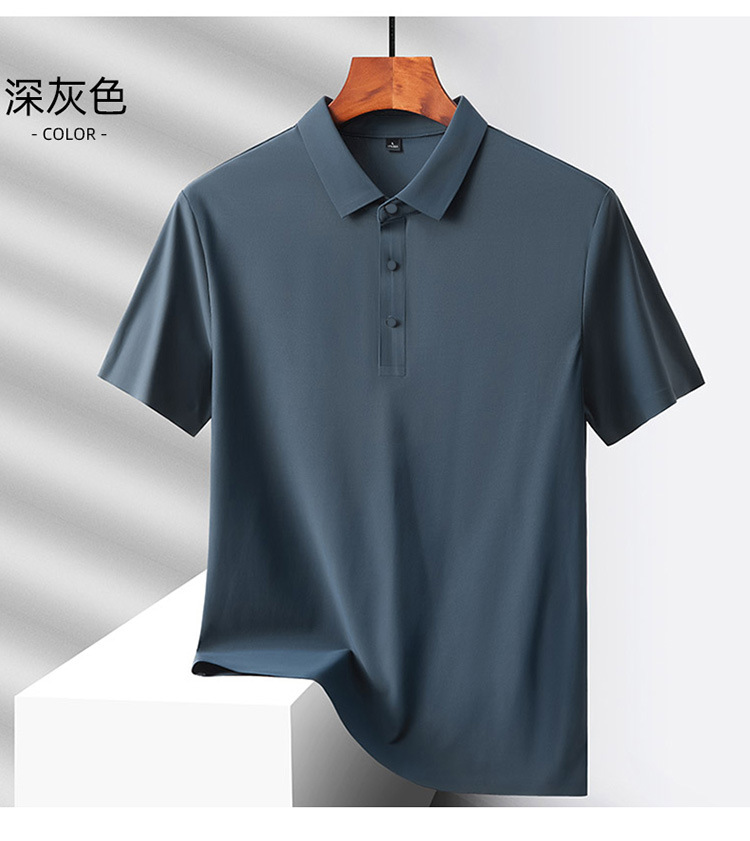 여름 비즈니스 캐주얼 남성용 아이스 실크 원활한 폴로 셔츠 남성용 탄성 비 다림질 얇은 옷깃 짧은 소매 맞춤형 LO