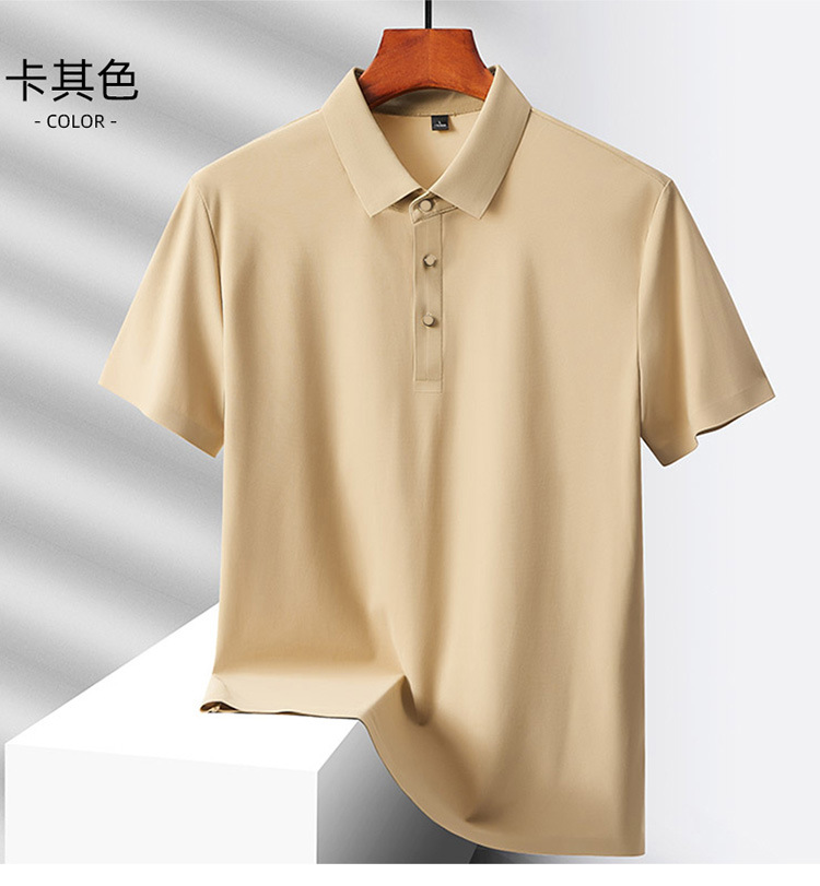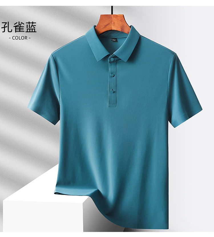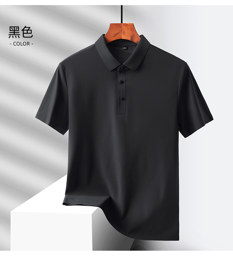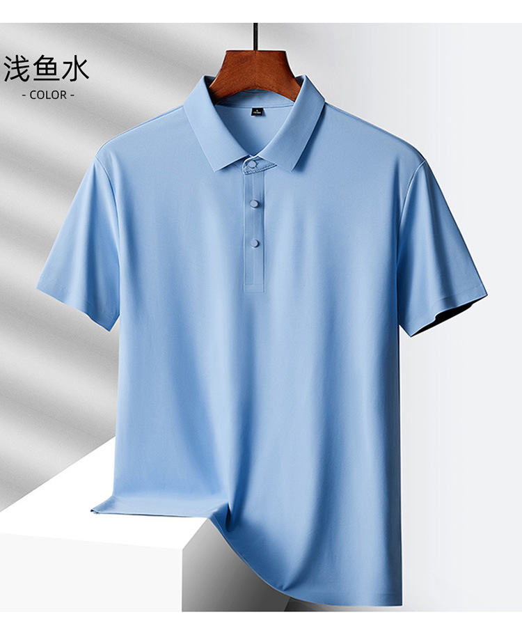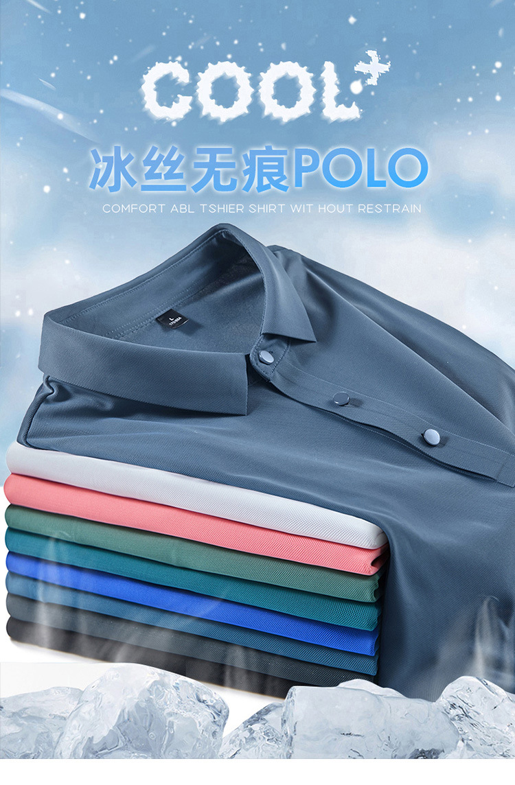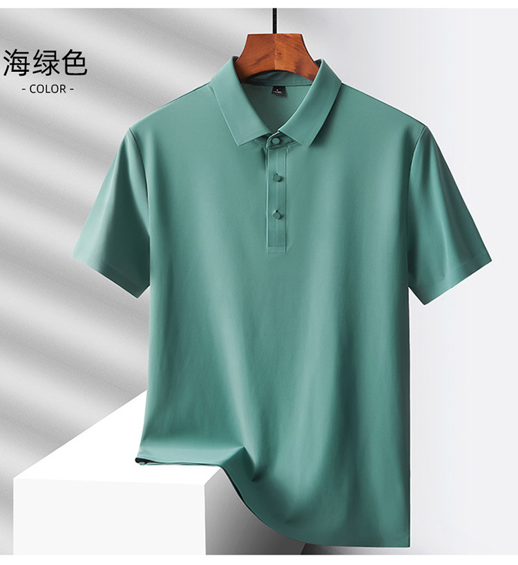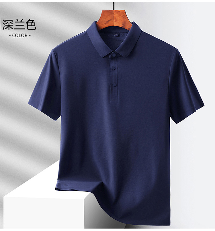 여름 비즈니스 캐주얼 남성용 아이스 실크 원활한 폴로 셔츠 남성용 탄성 비 다림질 얇은 옷깃 짧은 소매 맞춤형 LO스토어 가기