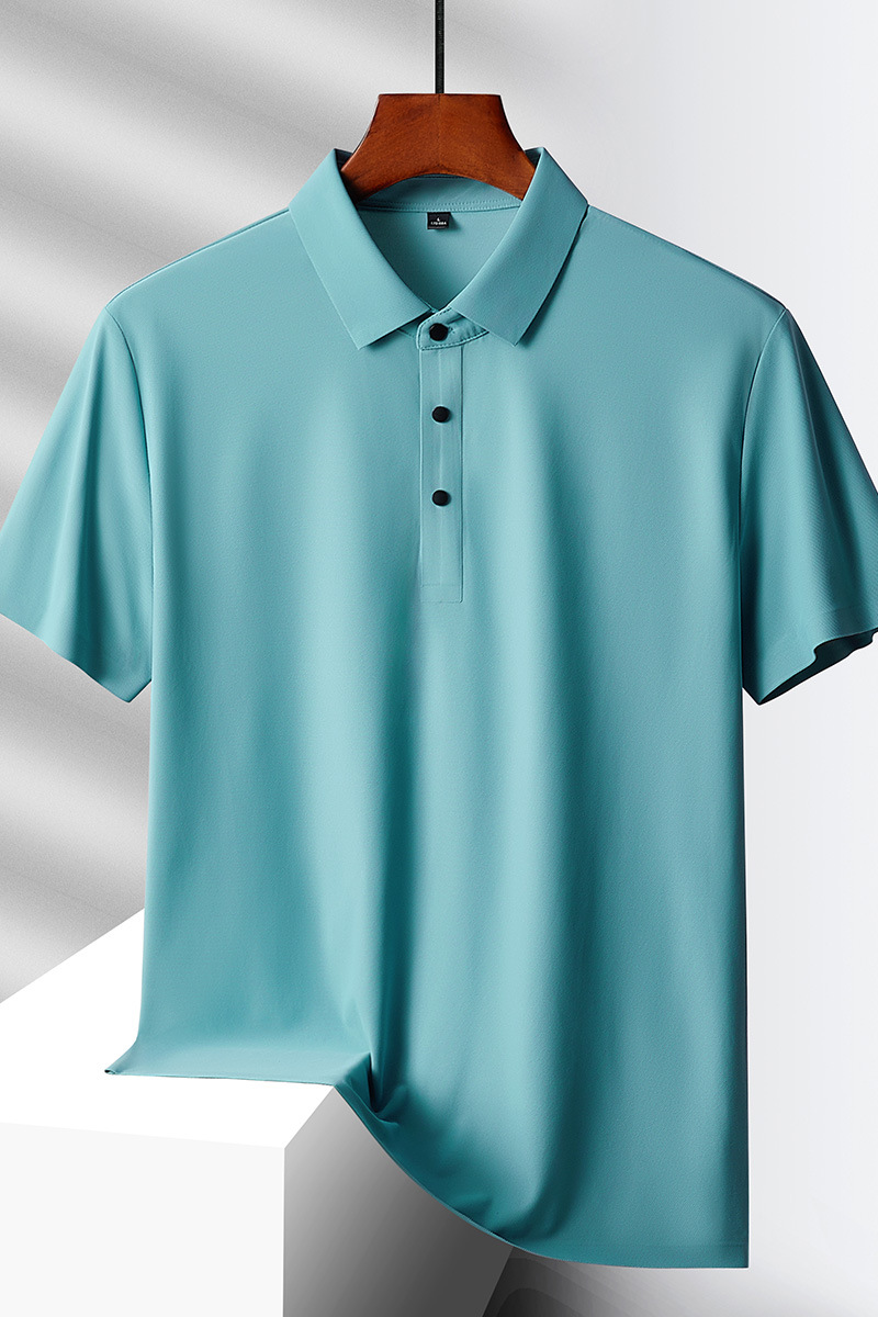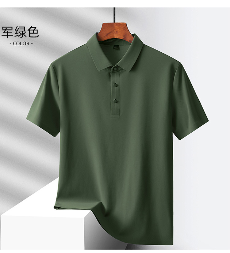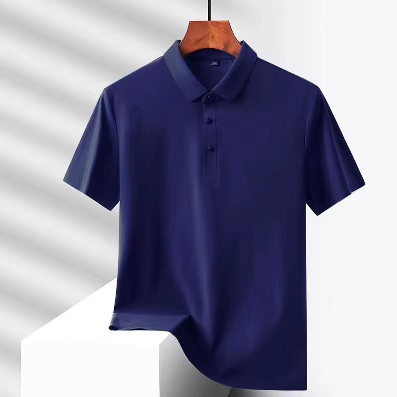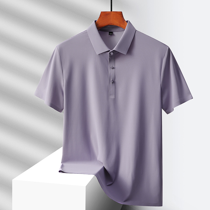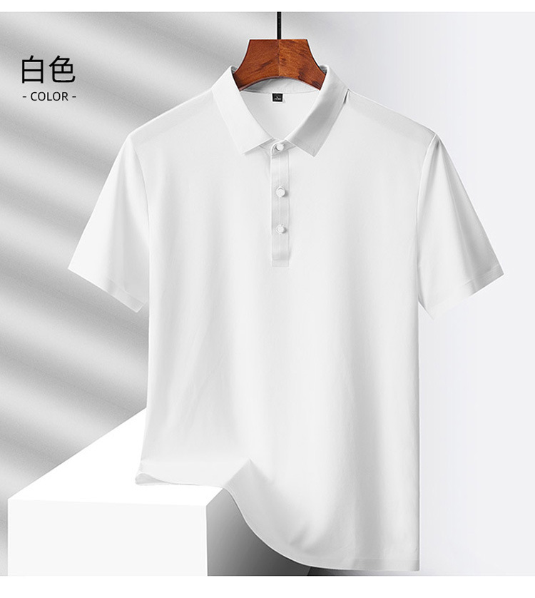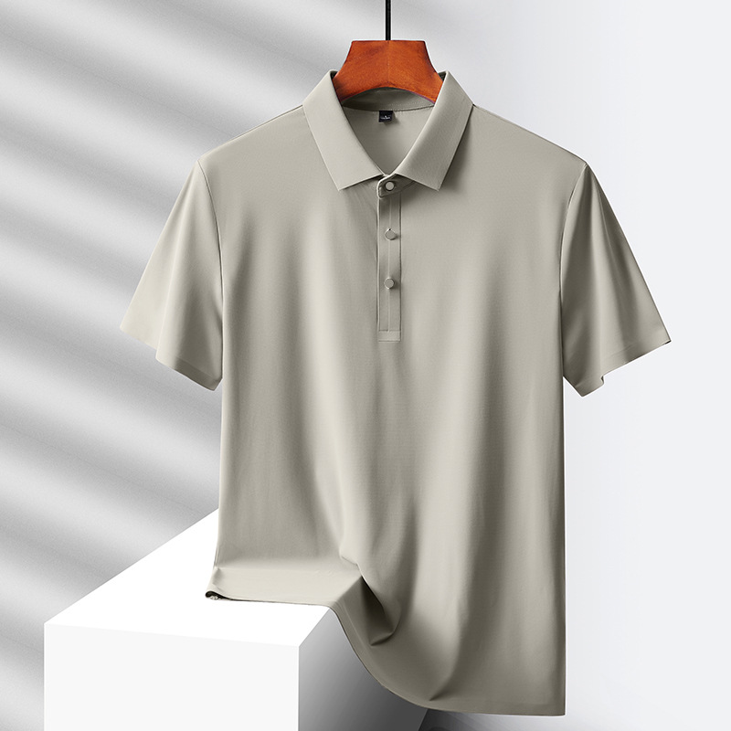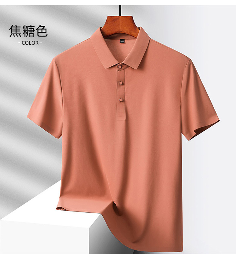 여름 비즈니스 캐주얼 남성용 아이스 실크 원활한 폴로 셔츠 남성용 탄성 비 다림질 얇은 옷깃 짧은 소매 맞춤형 LO스토어 가기