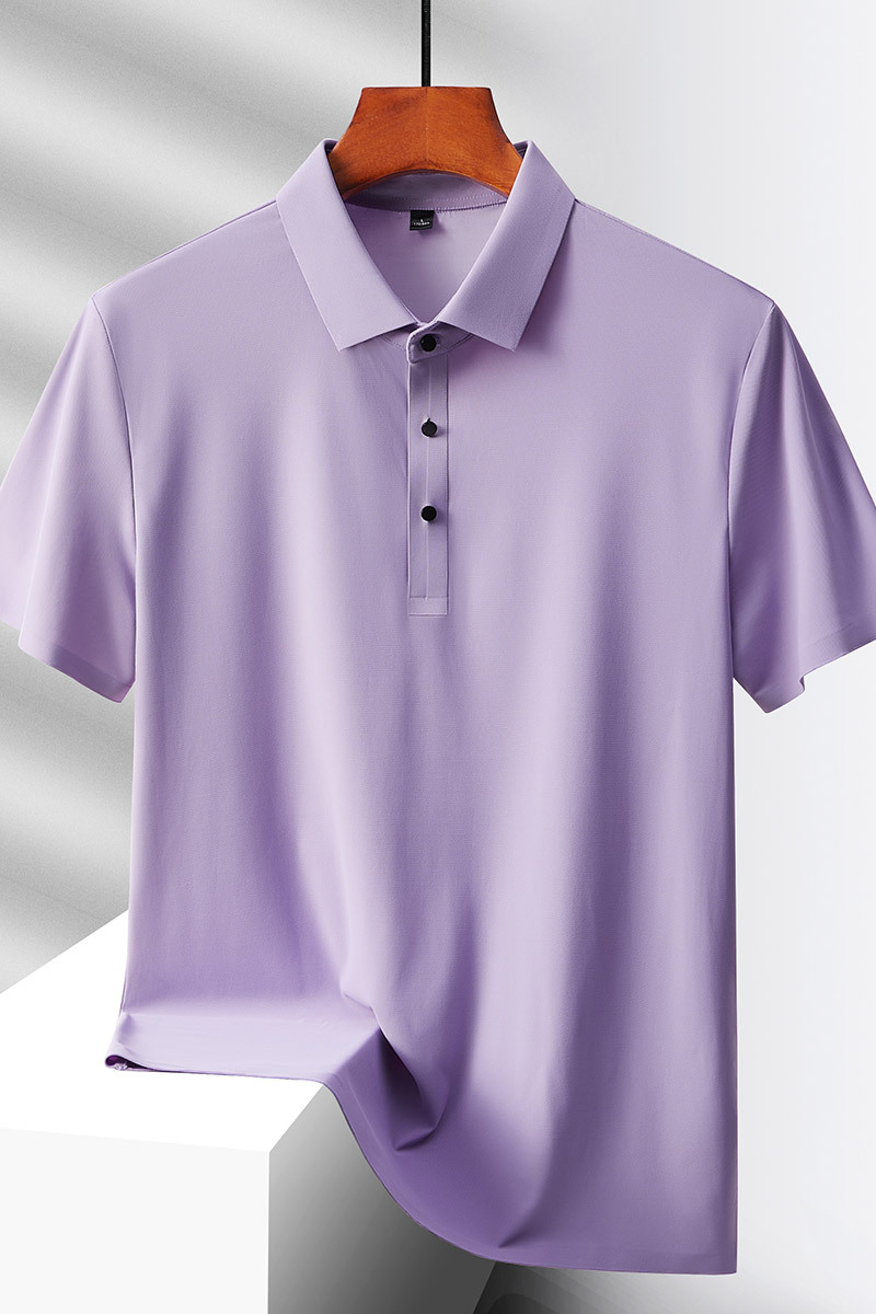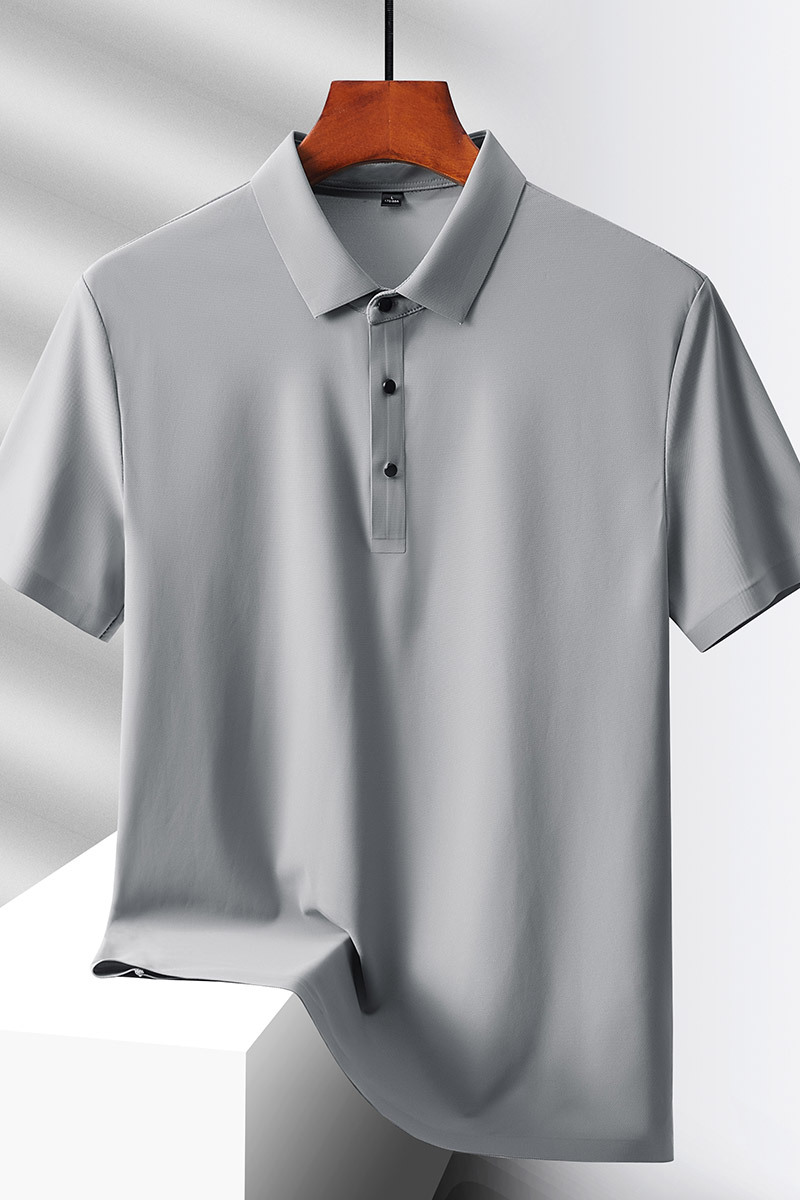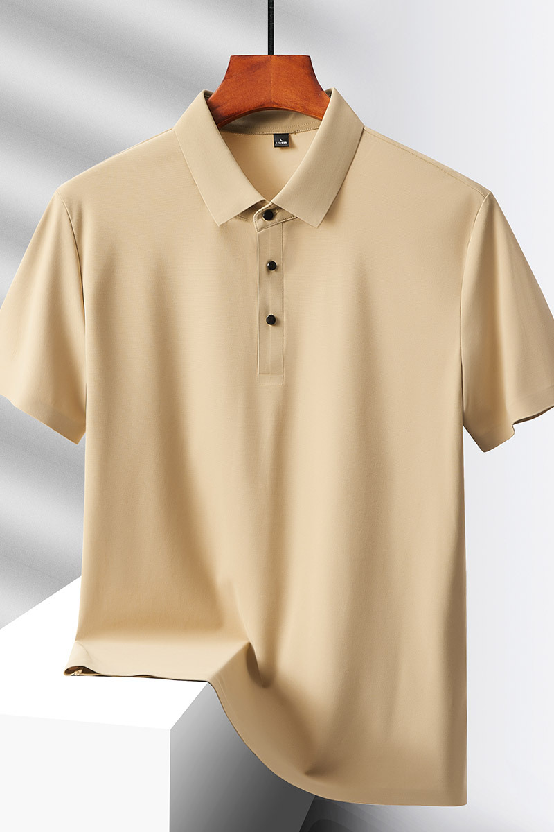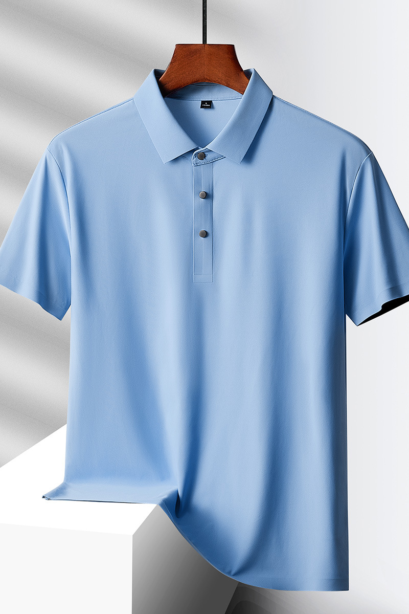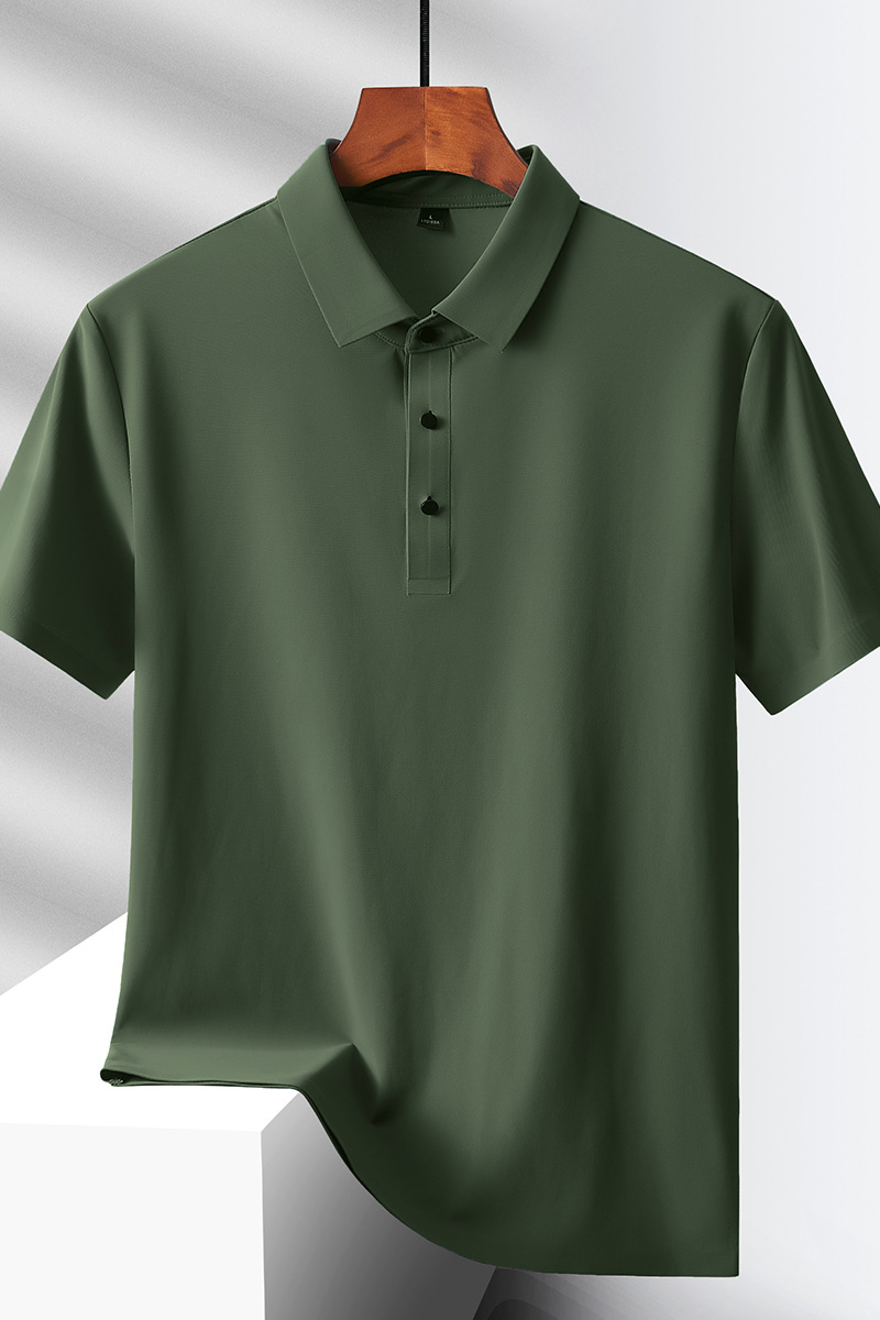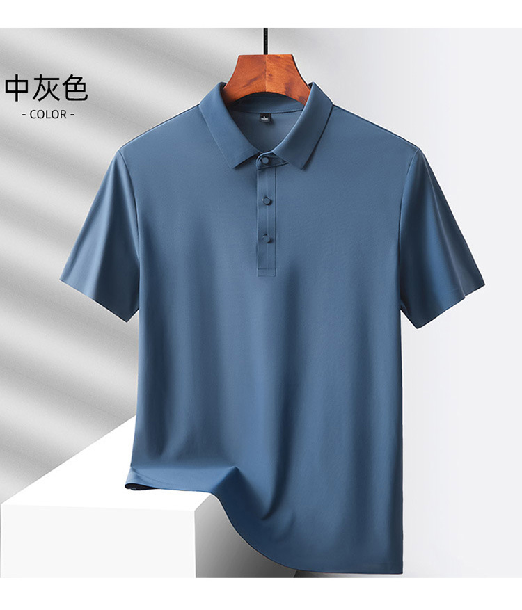 여름 비즈니스 캐주얼 남성용 아이스 실크 원활한 폴로 셔츠 남성용 탄성 비 다림질 얇은 옷깃 짧은 소매 맞춤형 LO스토어 가기