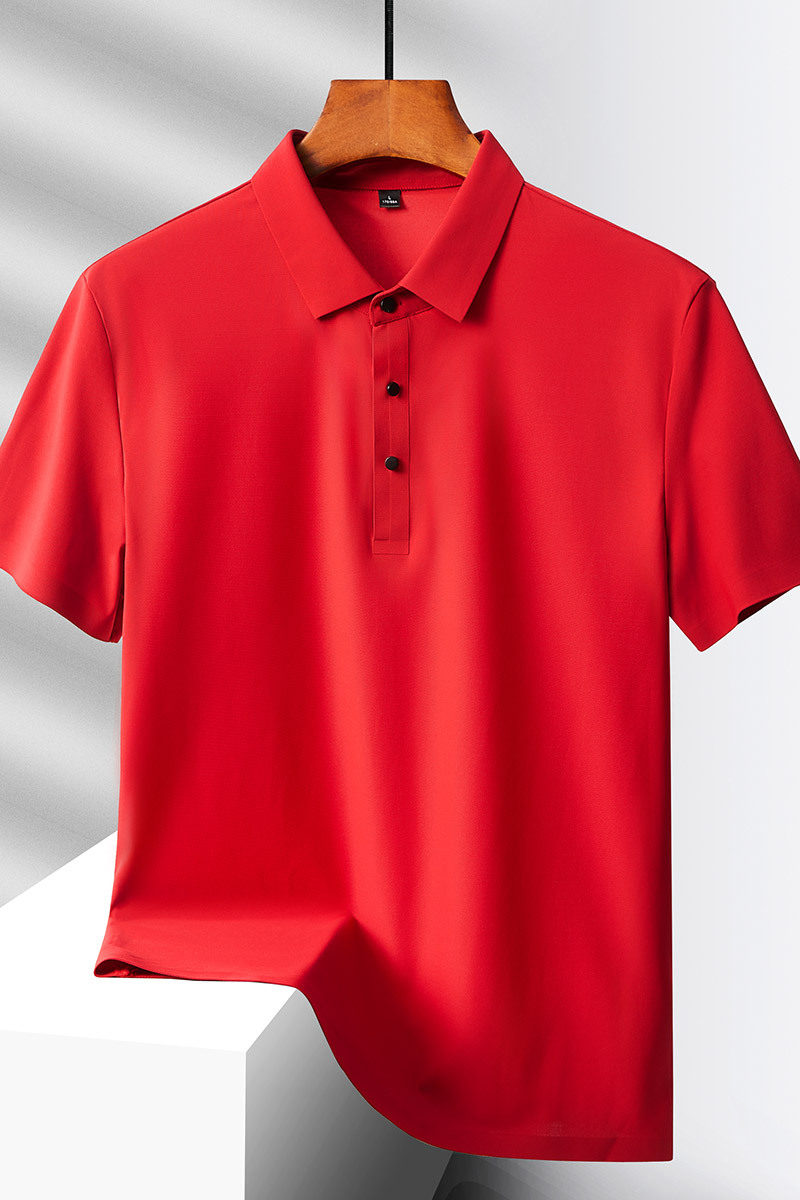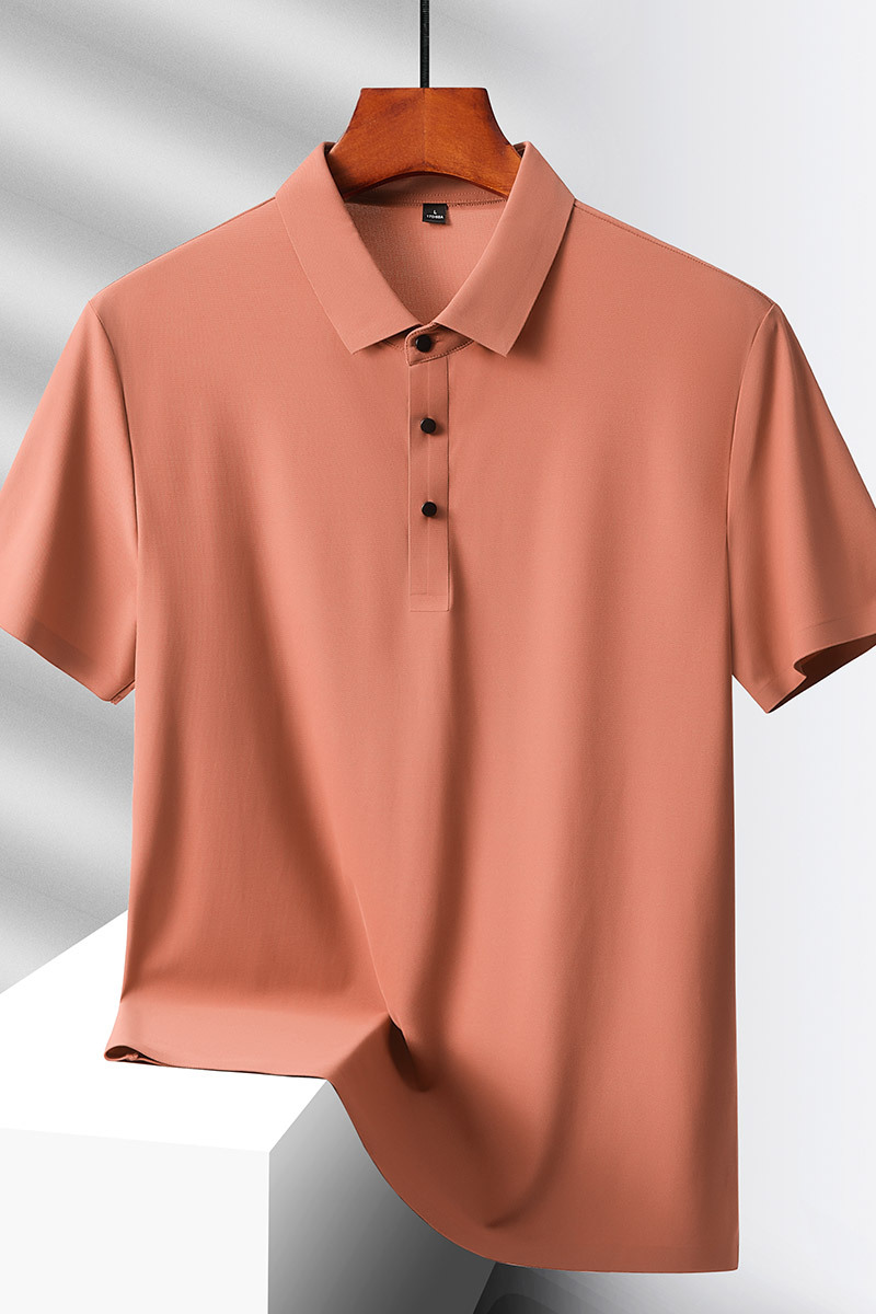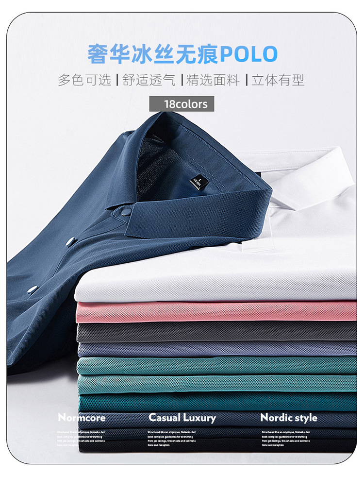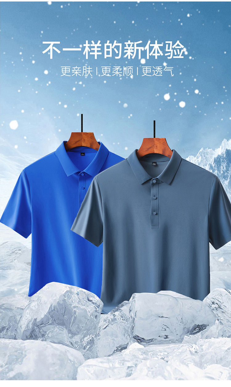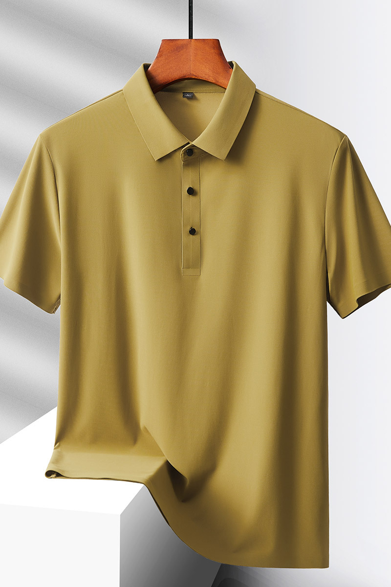 여름 비즈니스 캐주얼 남성용 아이스 실크 원활한 폴로 셔츠 남성용 탄성 비 다림질 얇은 옷깃 짧은 소매 맞춤형 LO스토어 가기