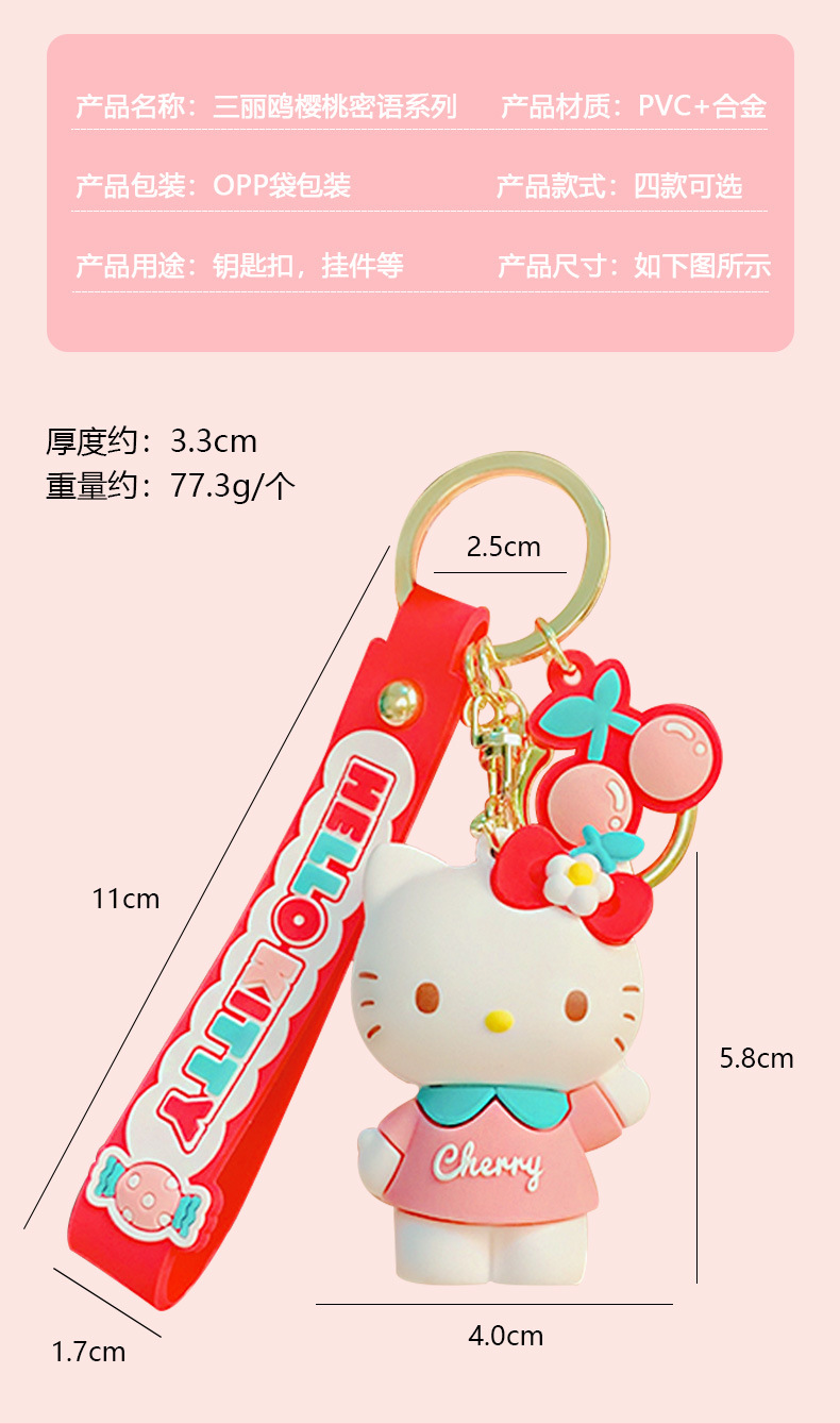 정품 만화 산리오 체리 비밀 열쇠 고리 귀여운 KT 고양이 자동차 열쇠 고리 책가방 작은 액세서리 도매