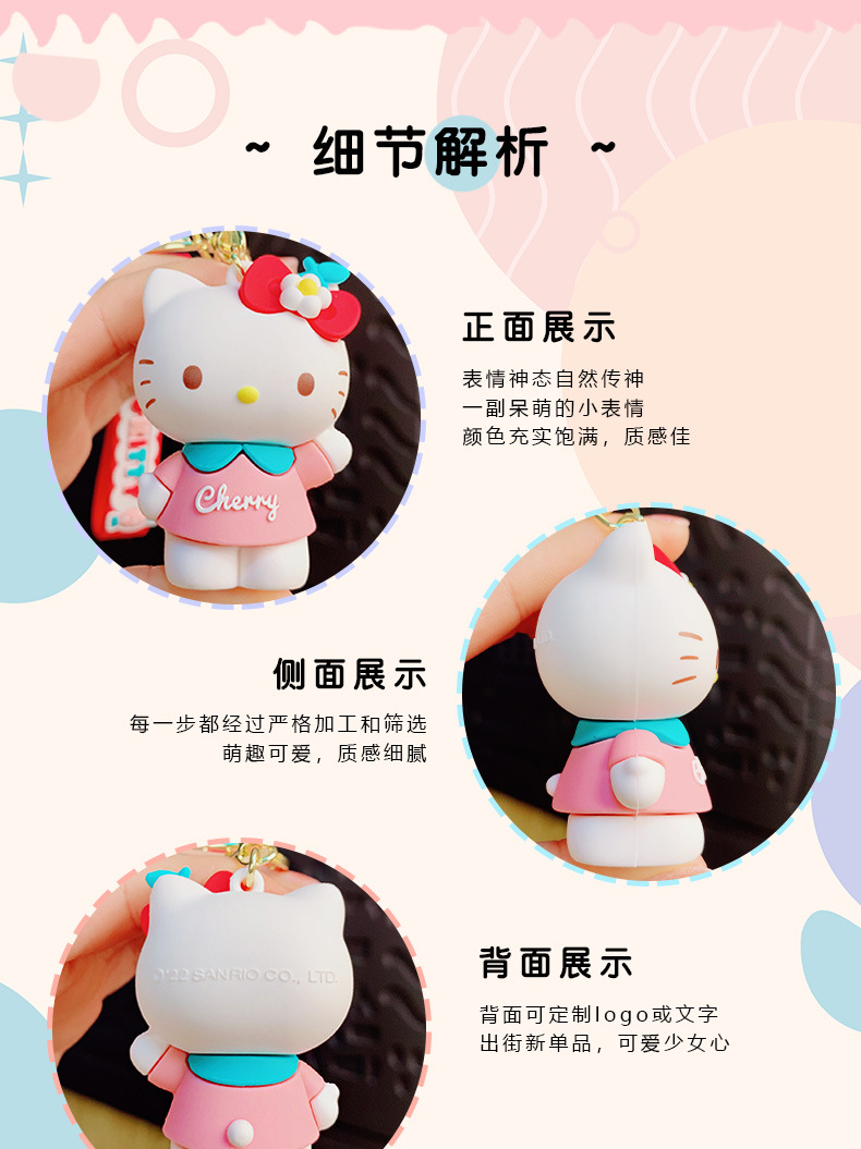 정품 만화 산리오 체리 비밀 열쇠 고리 귀여운 KT 고양이 자동차 열쇠 고리 책가방 작은 액세서리 도매스토어 가기