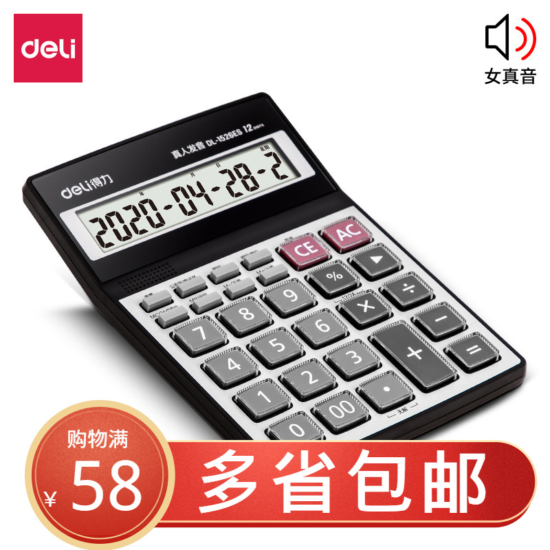 델리 1526ES 음성 계산기 대형 스크린 크리스탈 버튼 컴퓨터 실제 사람 발음 계산기 큰 버튼
