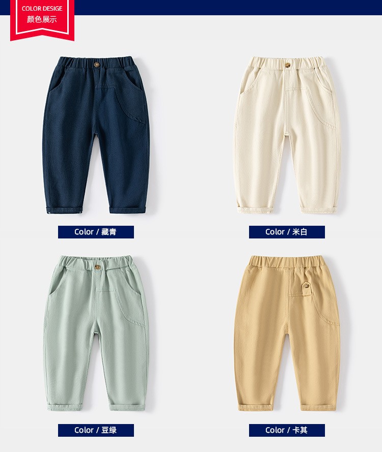 멀티 컬러 봄 새 소년 캐주얼 바지 중간 허리 무선 고무 힘줄 캐주얼 바지 부드러운 면 캐주얼 바지스토어 가기