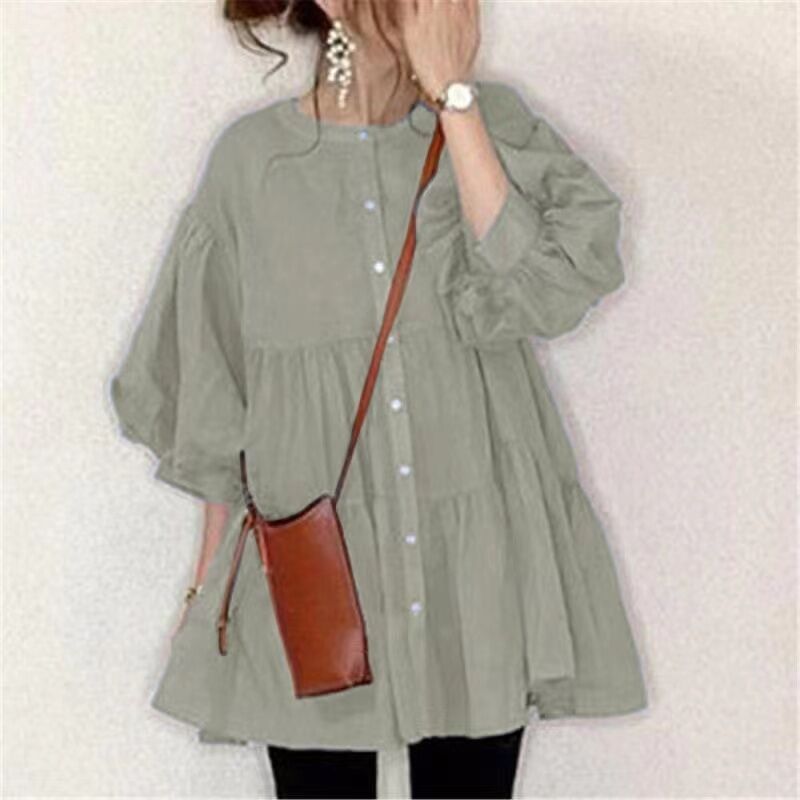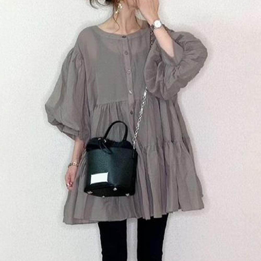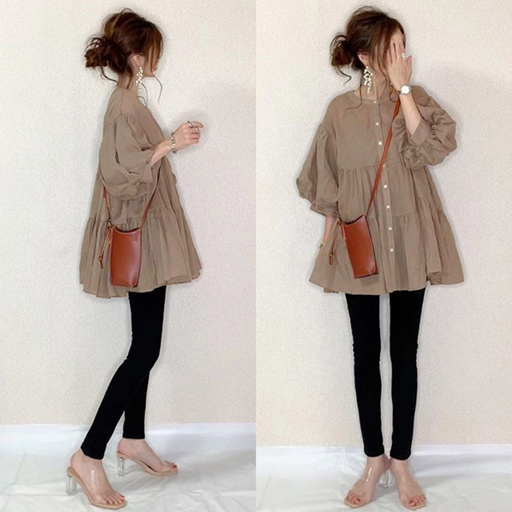 9 색 재고 일본어 2021 새로운 느슨한 슬림 배꼽 커버 짧은 소매 중간 길이 슬림 단색 셔츠 탑