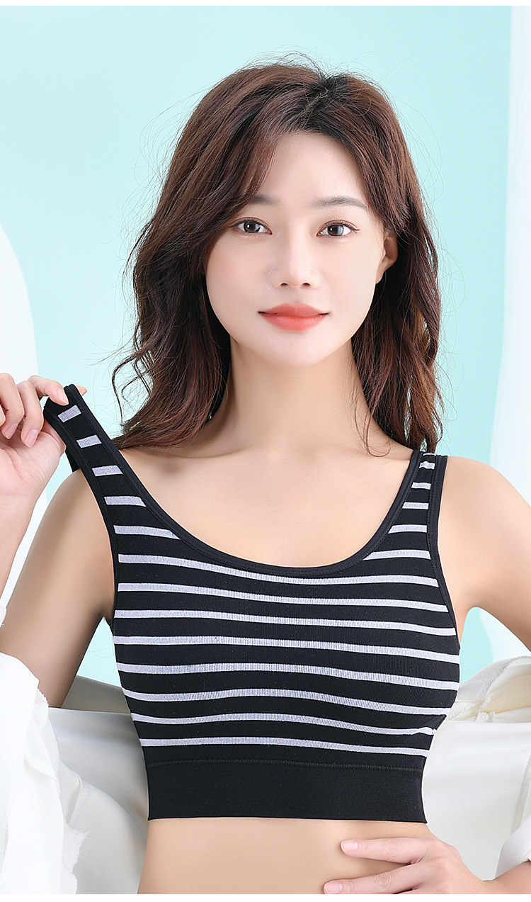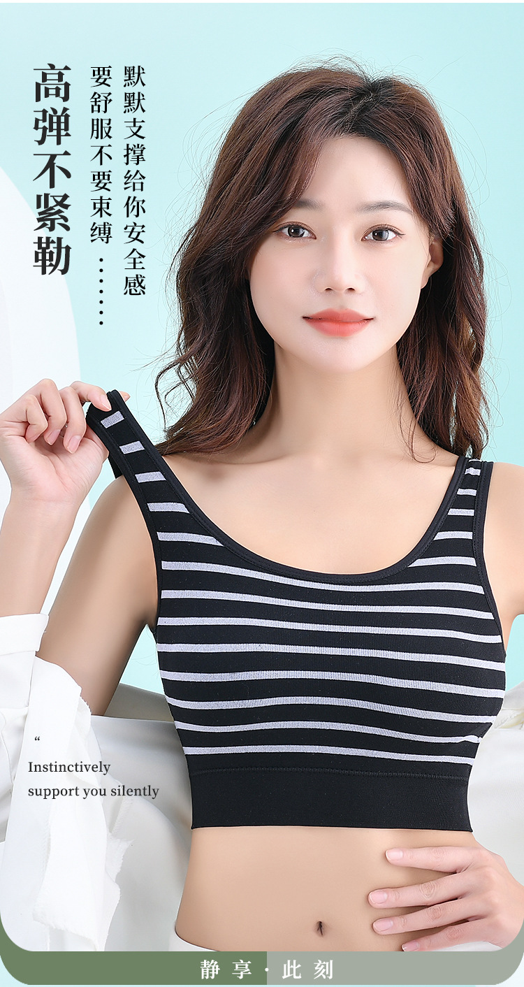 새로운 스트라이프 스트랩리스 조끼 원피스 안티 라이트 아우터 베이스 랩 탑 여성용 이너웨어 스포츠 속옷