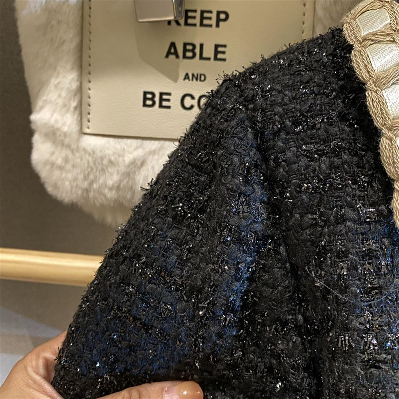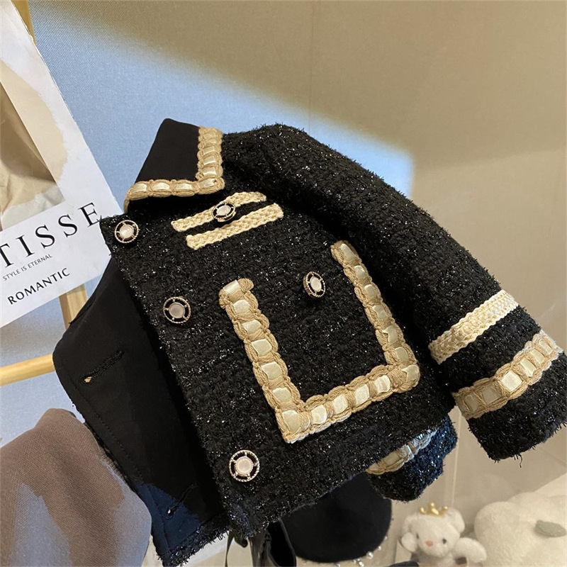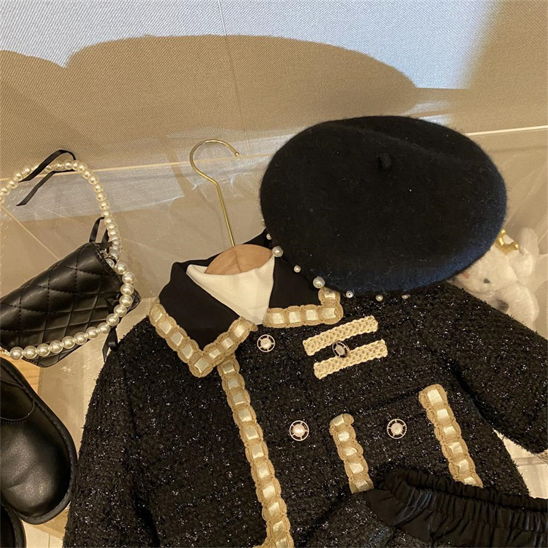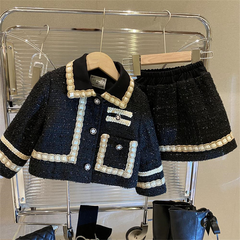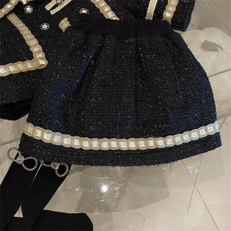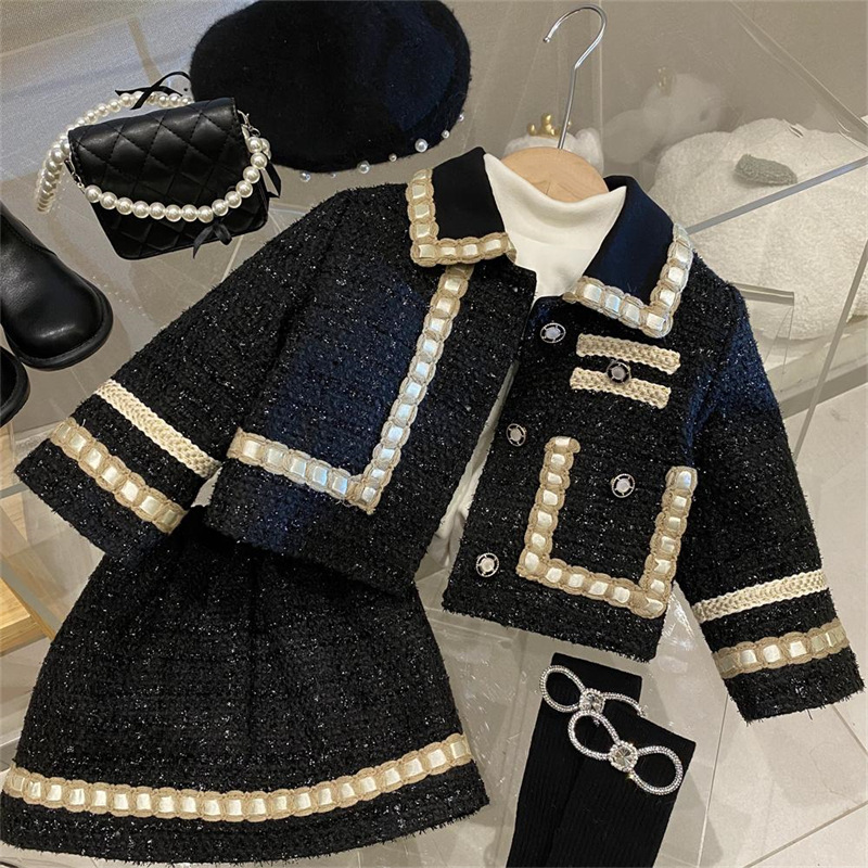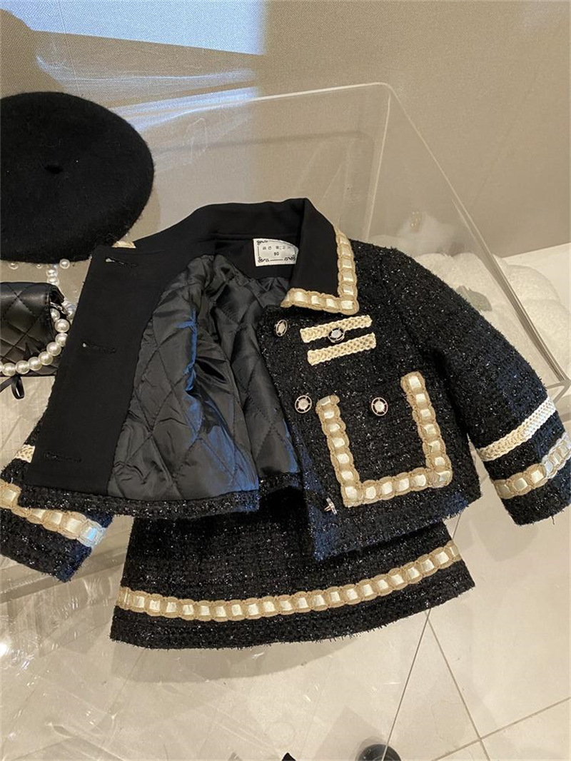 여자 2022 가을과 겨울 샤넬 스타일 코트 스커트 두꺼운 세트 우아한 세련된 어린이 스커트 투피스 세트