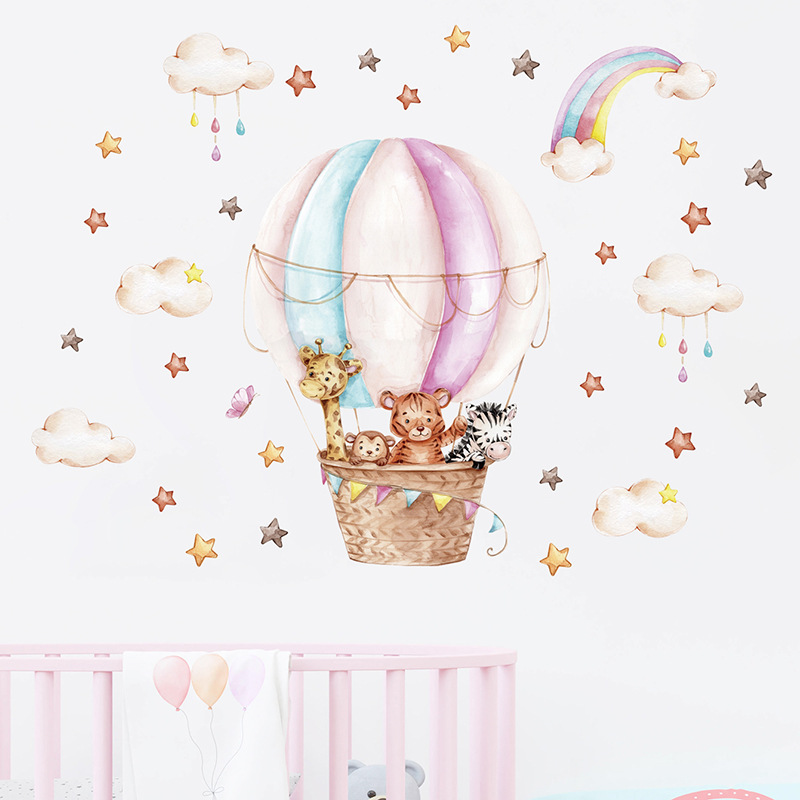 만화 동물 기린 호랑이 원숭이 뜨거운 공기 풍선 벽 스티커 어린이 방 장식 국경 간 폭발 BR8441스토어 가기