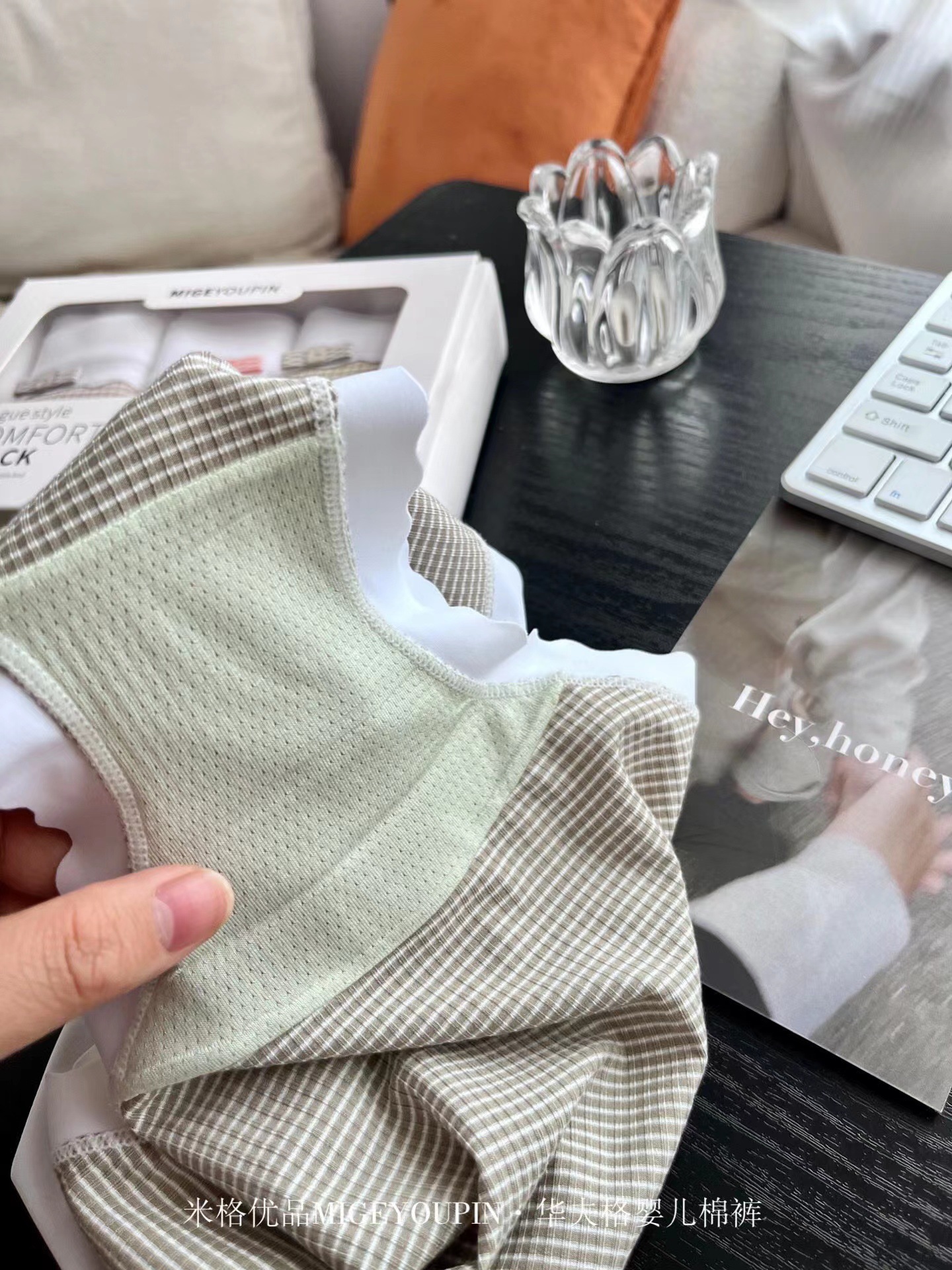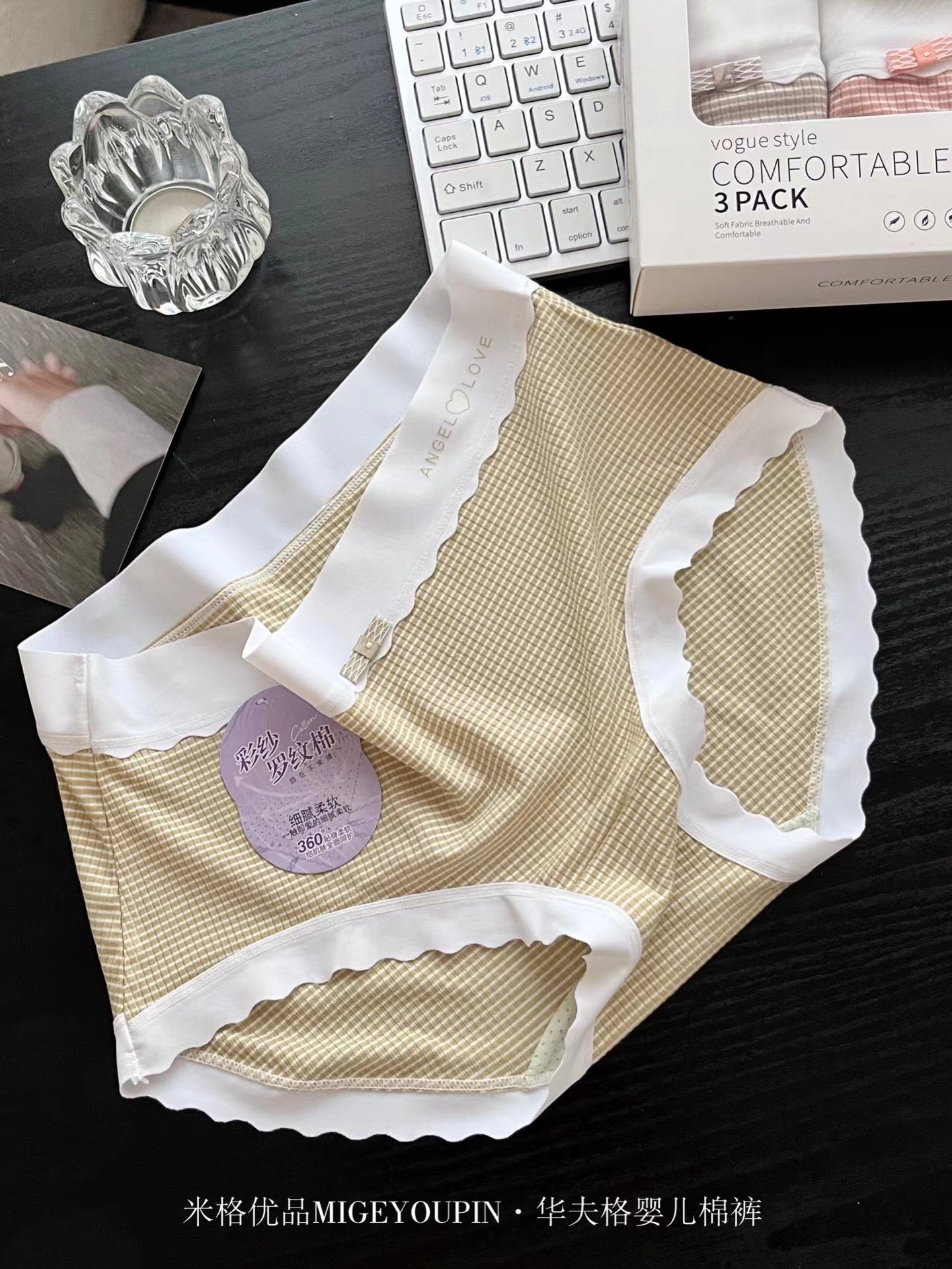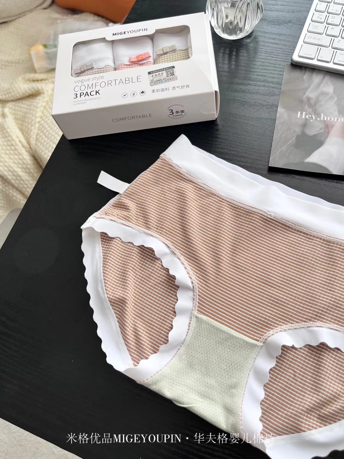 여성용 하이 웨이스트 브리프 3 개의 MiG Youpin 와플 고탄력 소프트 통기성 정균 박스스토어 가기
