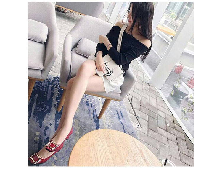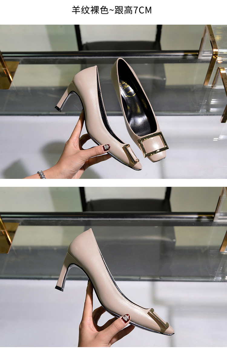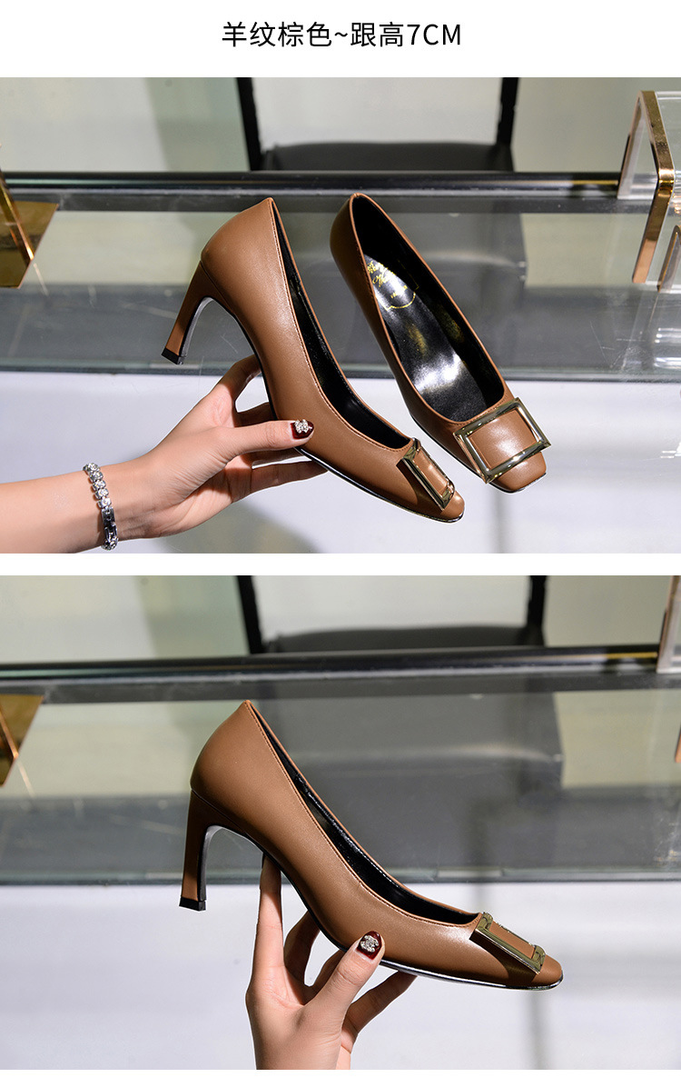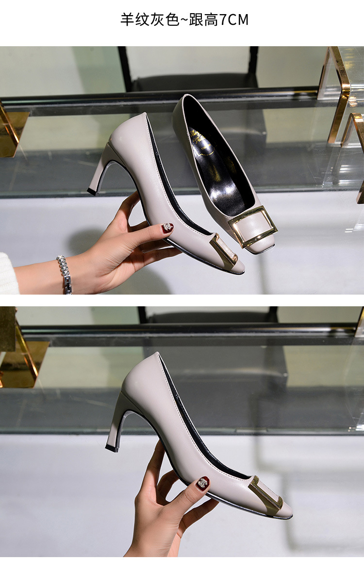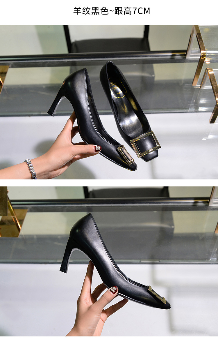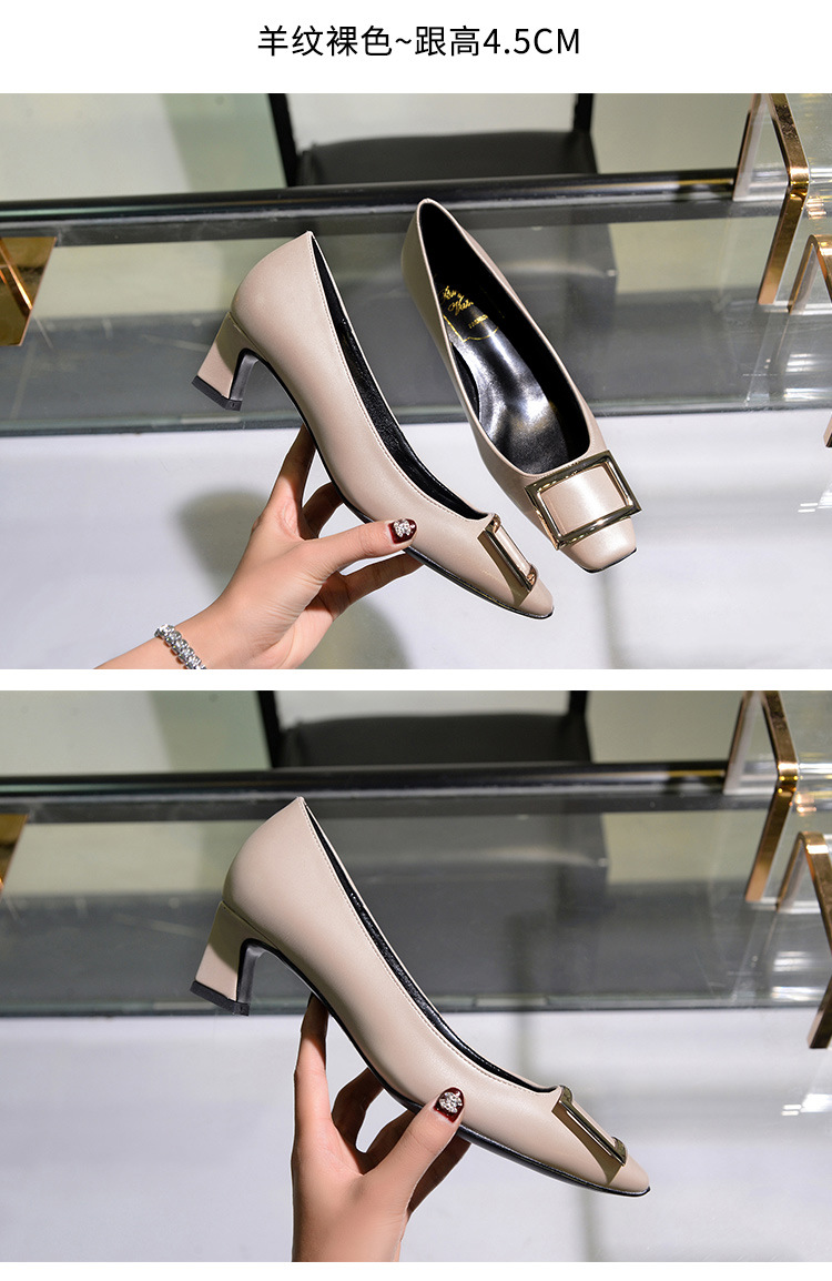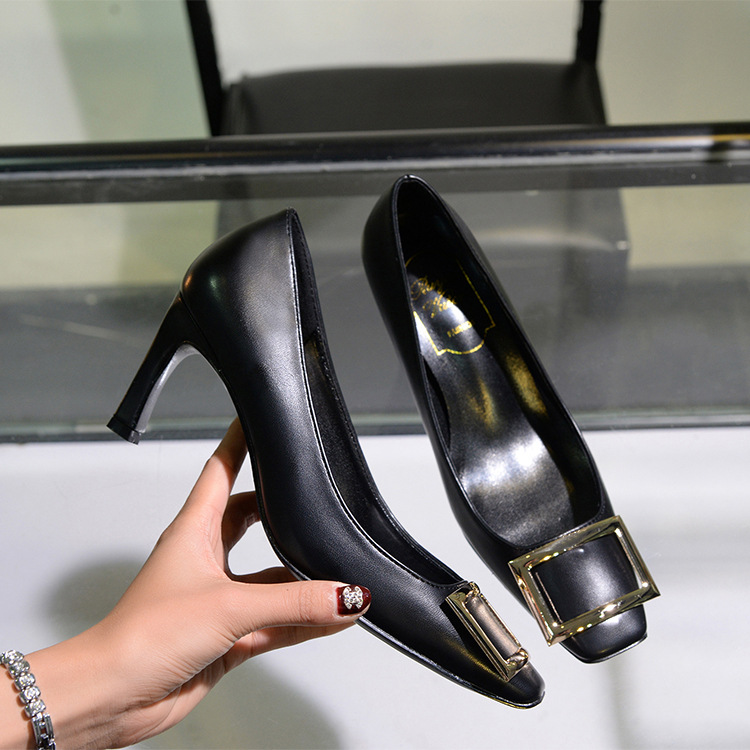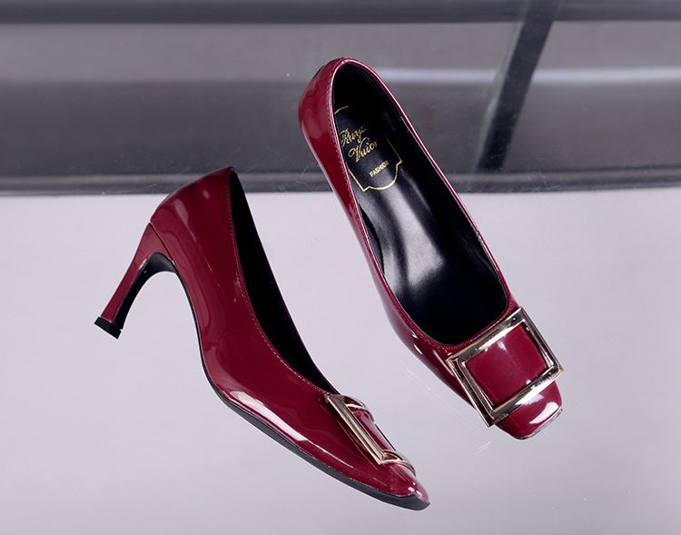 【재고 있음】도매 직배송 사각코 얕은 굽 여성용 스퀘어 버클 두꺼운 굽 페이턴트 가죽 하이힐 OL 워크 슈즈스토어 가기