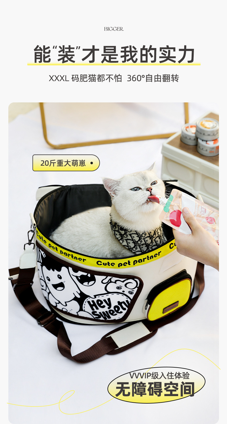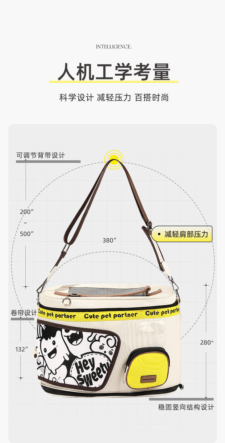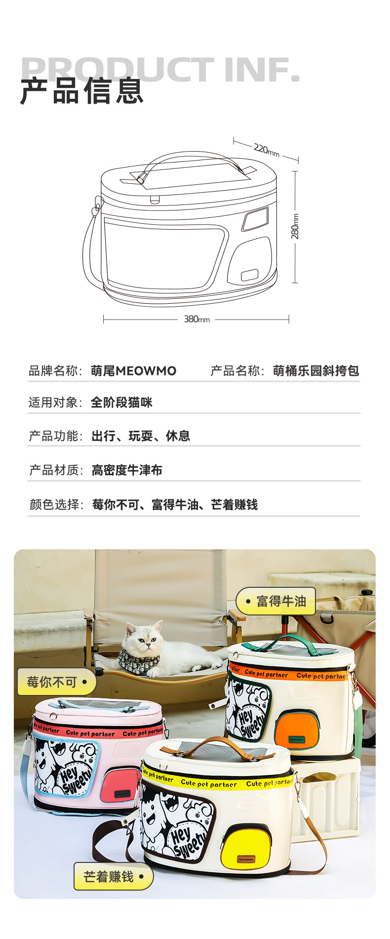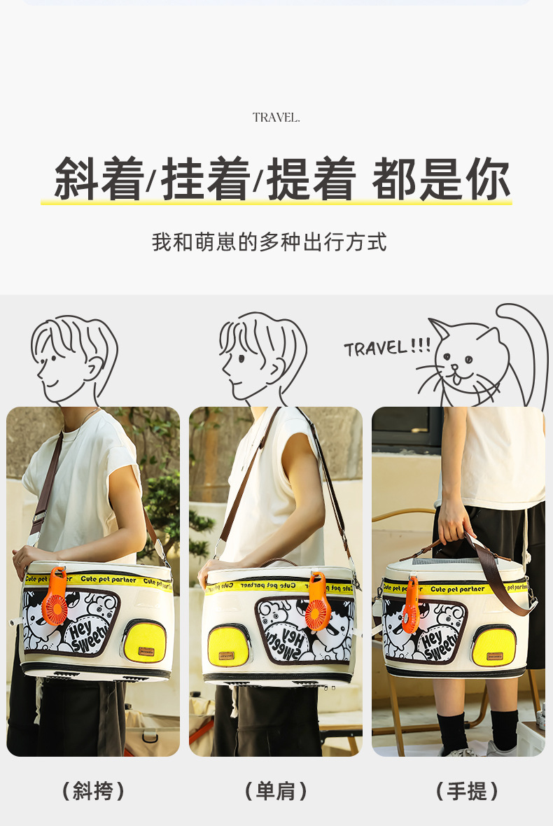 귀여운 꼬리 모양 접이식 휴대용 애완동물 가방, 프린트된 옥스포드 천, 통기성 크로스백 고양이 가방, 통기성 접이식스토어 가기