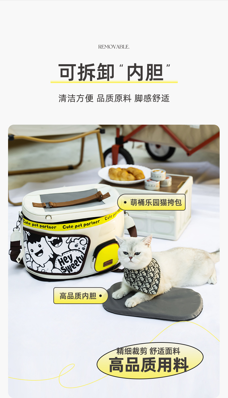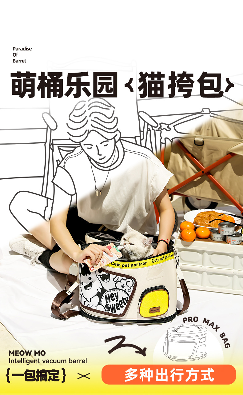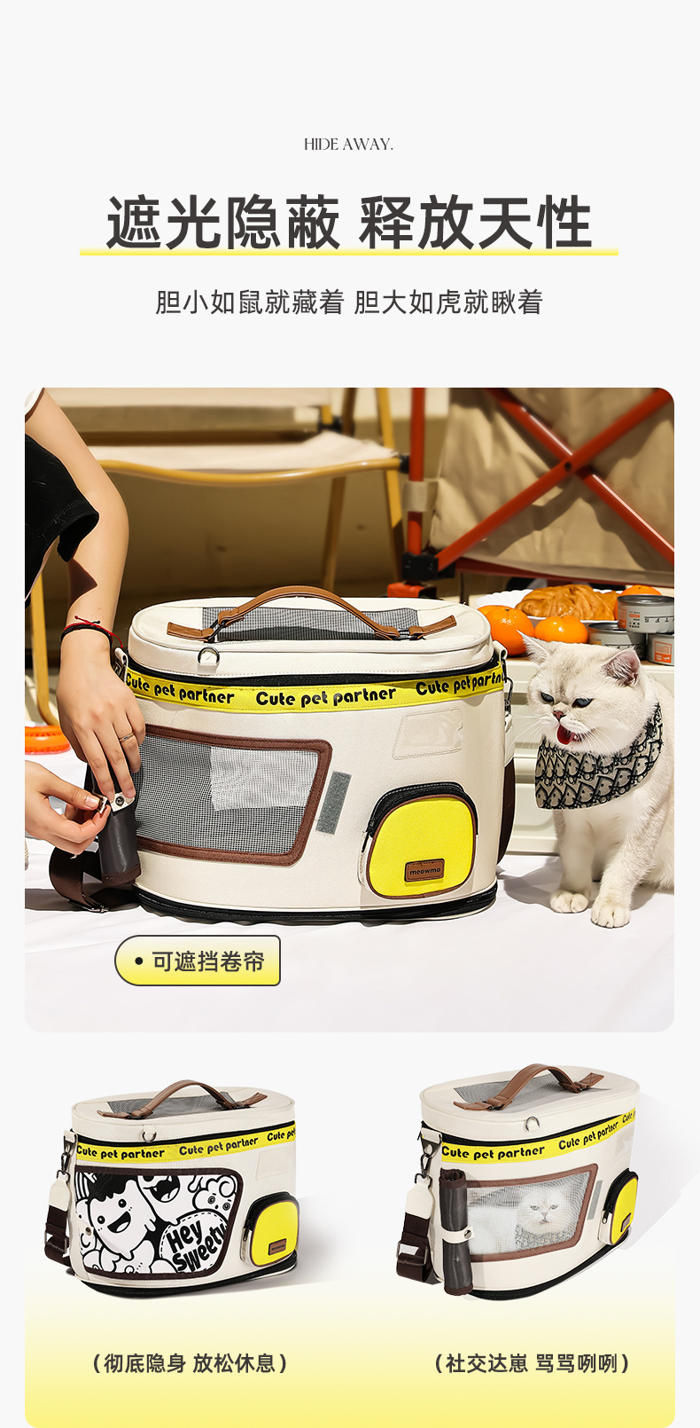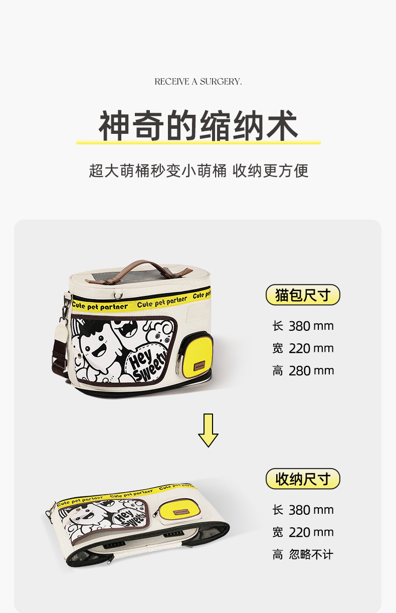 귀여운 꼬리 모양 접이식 휴대용 애완동물 가방, 프린트된 옥스포드 천, 통기성 크로스백 고양이 가방, 통기성 접이식스토어 가기