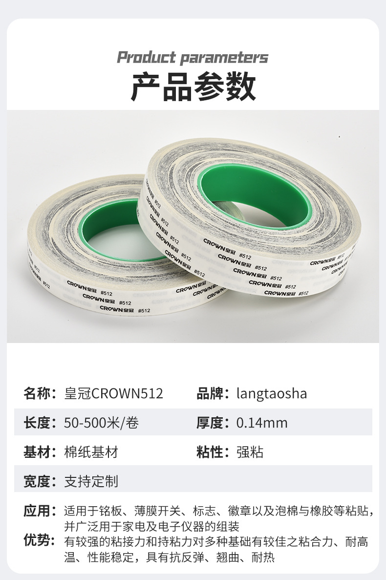크라운 512 양면 테이프, 초박형, 강력, 고온 내성, 양면 테이프, 부직포, 금속 및 플라스틱 부품, 자동차 테이프