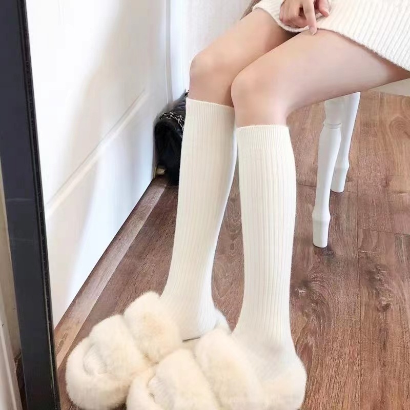 가을 겨울용 흰색 따뜻한 롱삭스, 컬리지 스타일 슬림핏 단색 스타킹, 단색 양말, 롱부츠 양말스토어 가기