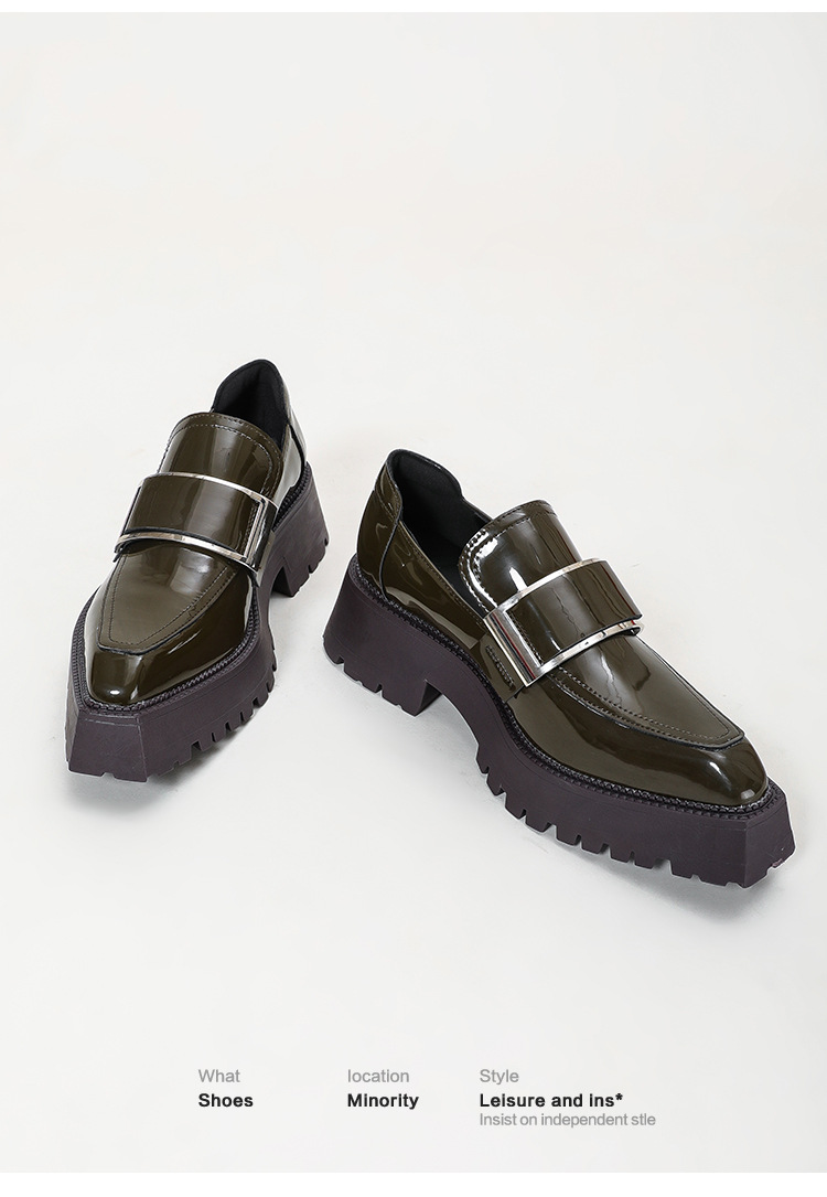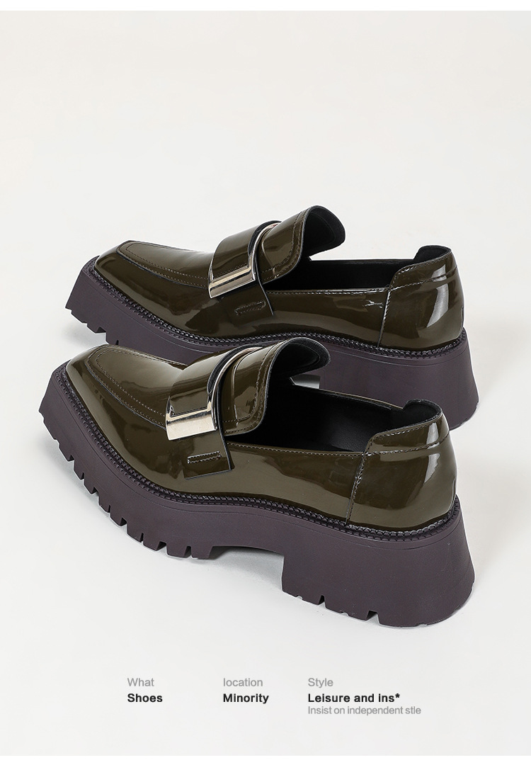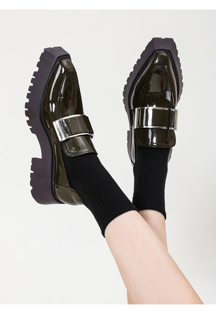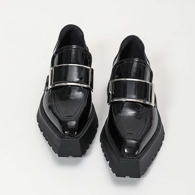 여성용 뾰족한 가죽 신발, 영국 스타일 복고풍 메탈 슈즈, 2025 신상 천연 가죽 두꺼운 밑창 두꺼운 굽 캣워크 로퍼스토어 가기