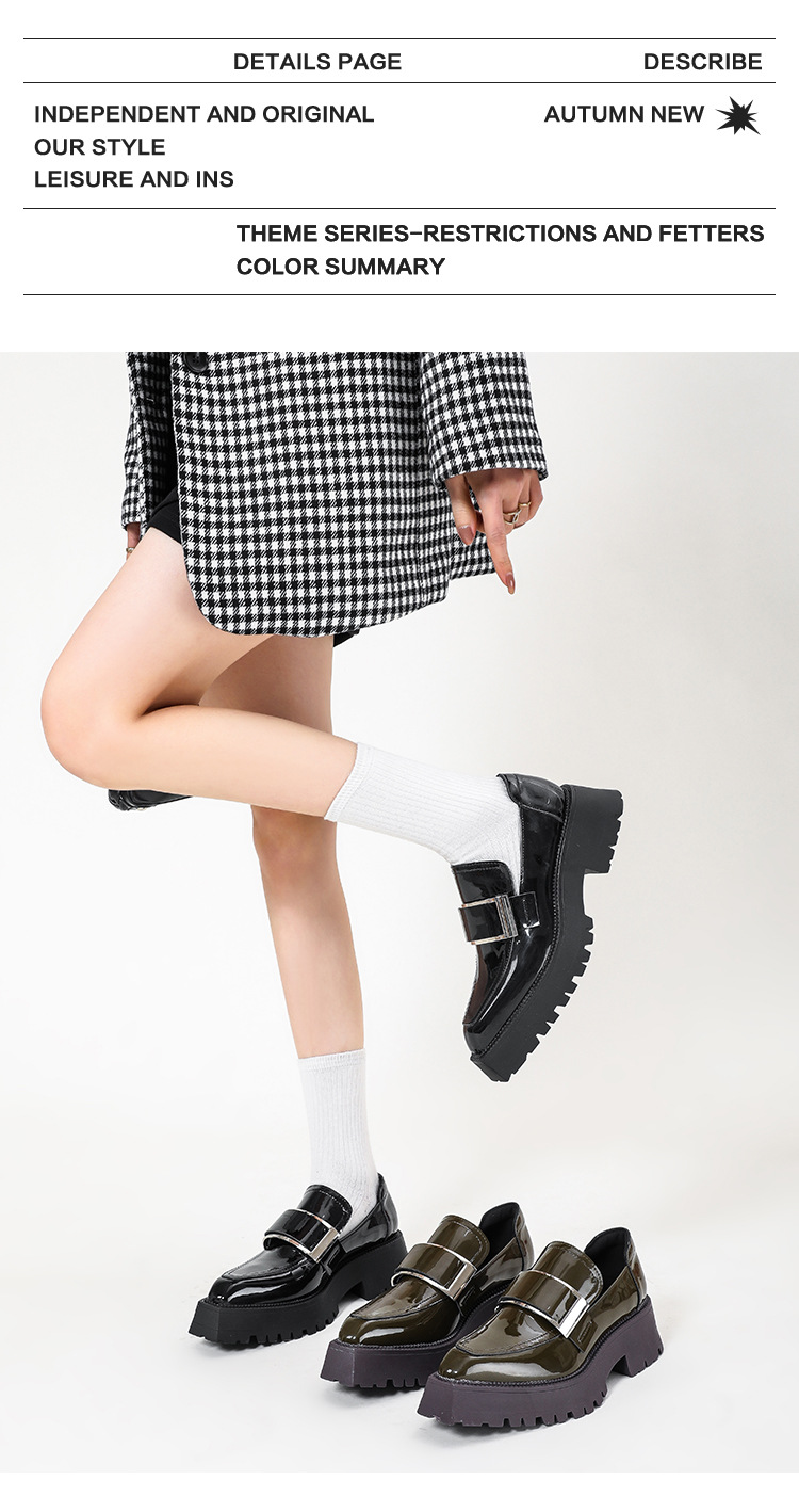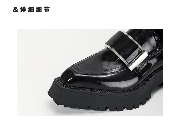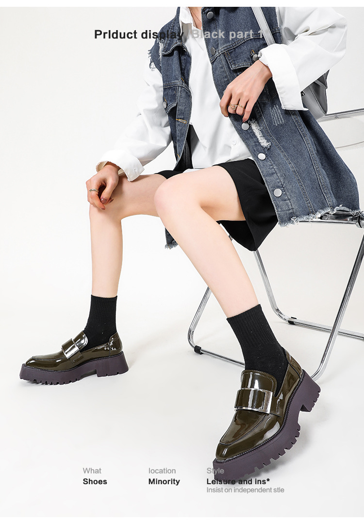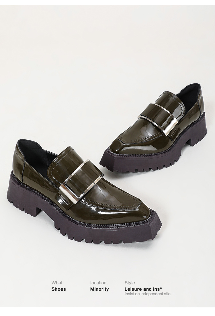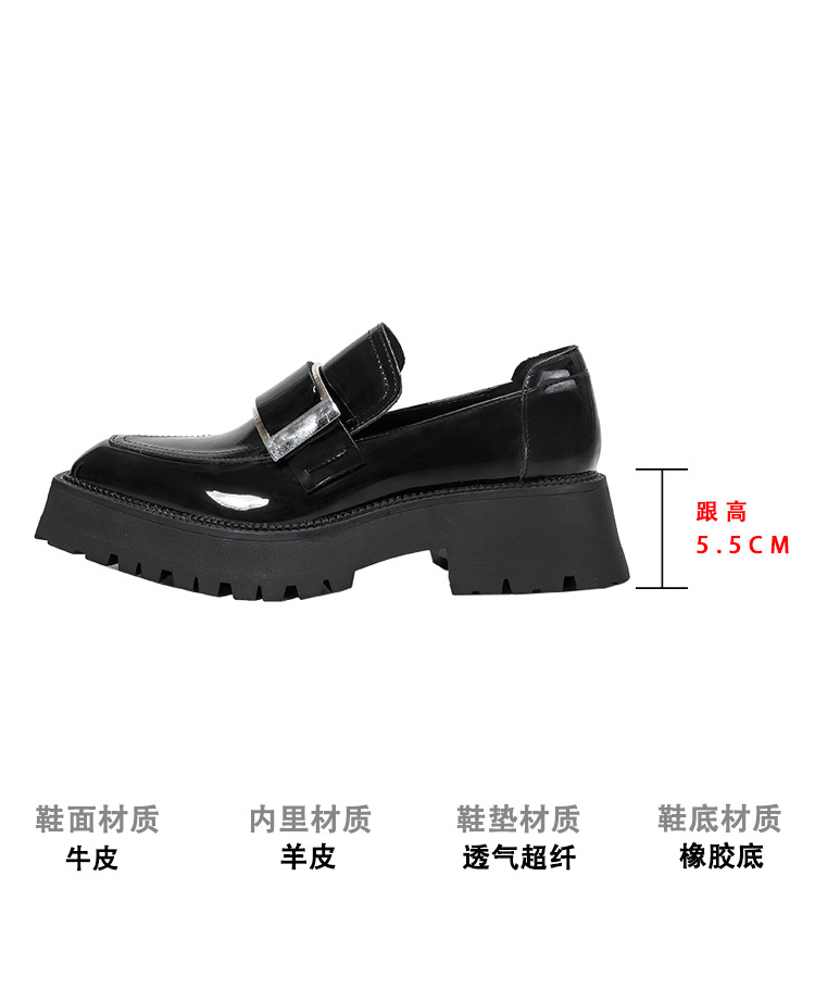 여성용 뾰족한 가죽 신발, 영국 스타일 복고풍 메탈 슈즈, 2025 신상 천연 가죽 두꺼운 밑창 두꺼운 굽 캣워크 로퍼스토어 가기