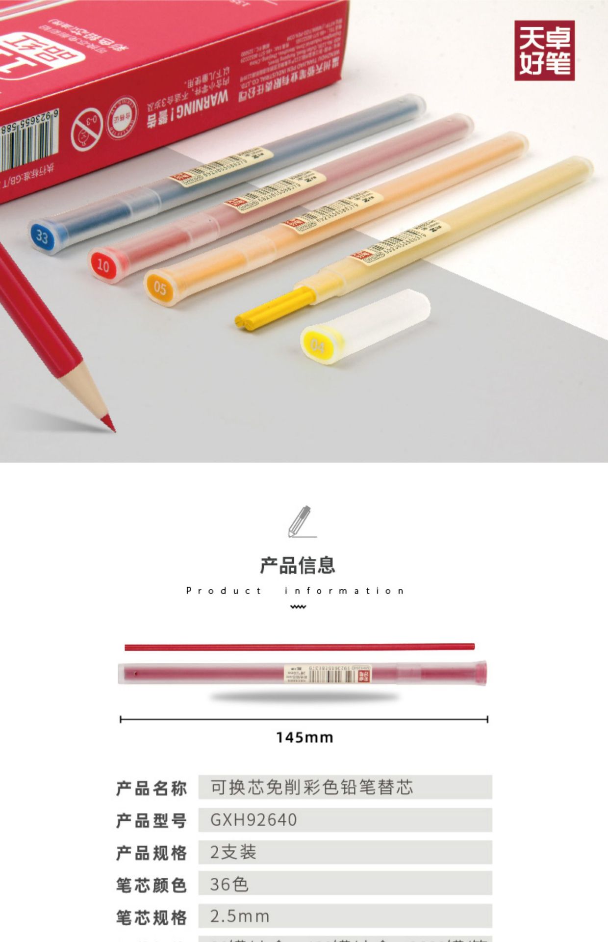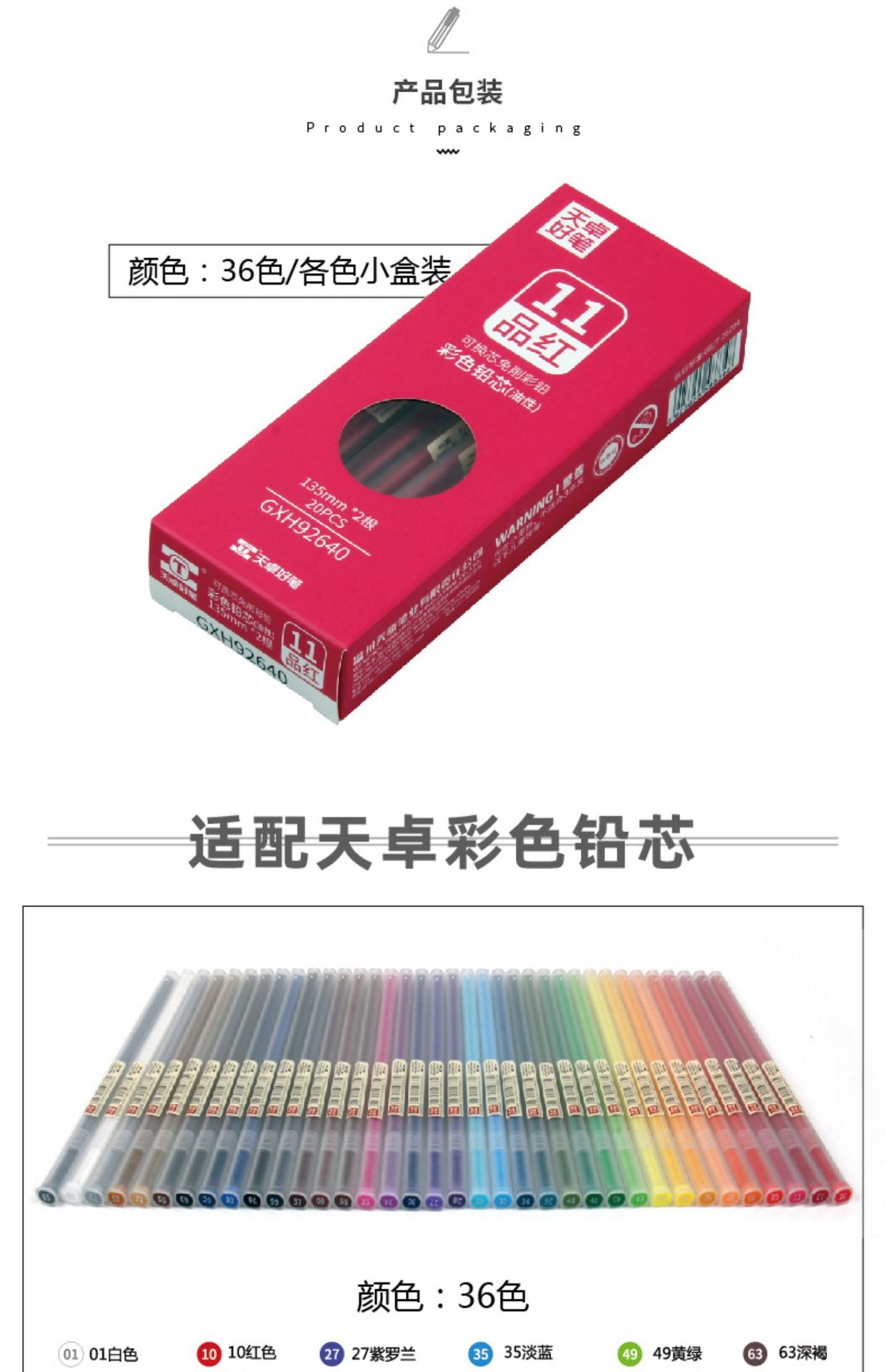 Tianzhuo TM02630 코어 프리 컬러 연필 유성 육각형 막대 두꺼운 코어 36 색 푸시 컬러 리드