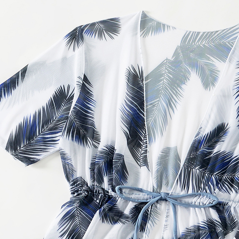 2024 새로운 3 피스 어린이 수영복 여성 아마존 잎 인쇄 소녀 분할 대형 어린이 비키니