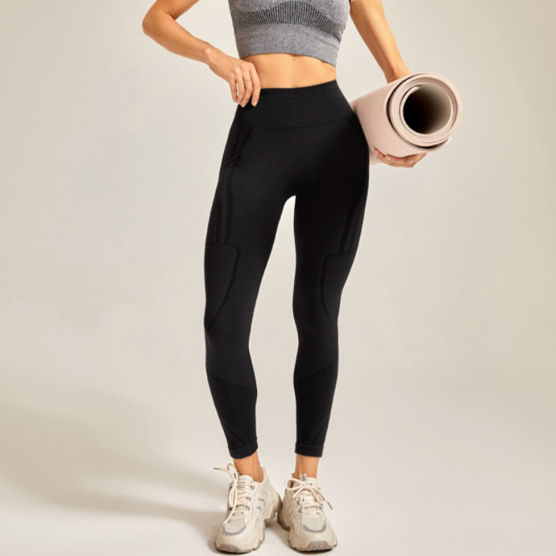 유럽과 미국의 원활한 니트 요가 바지 수분 빠른 건조 통기성 하이 웨이스트 러닝 피트니스 요가 크롭 팬츠